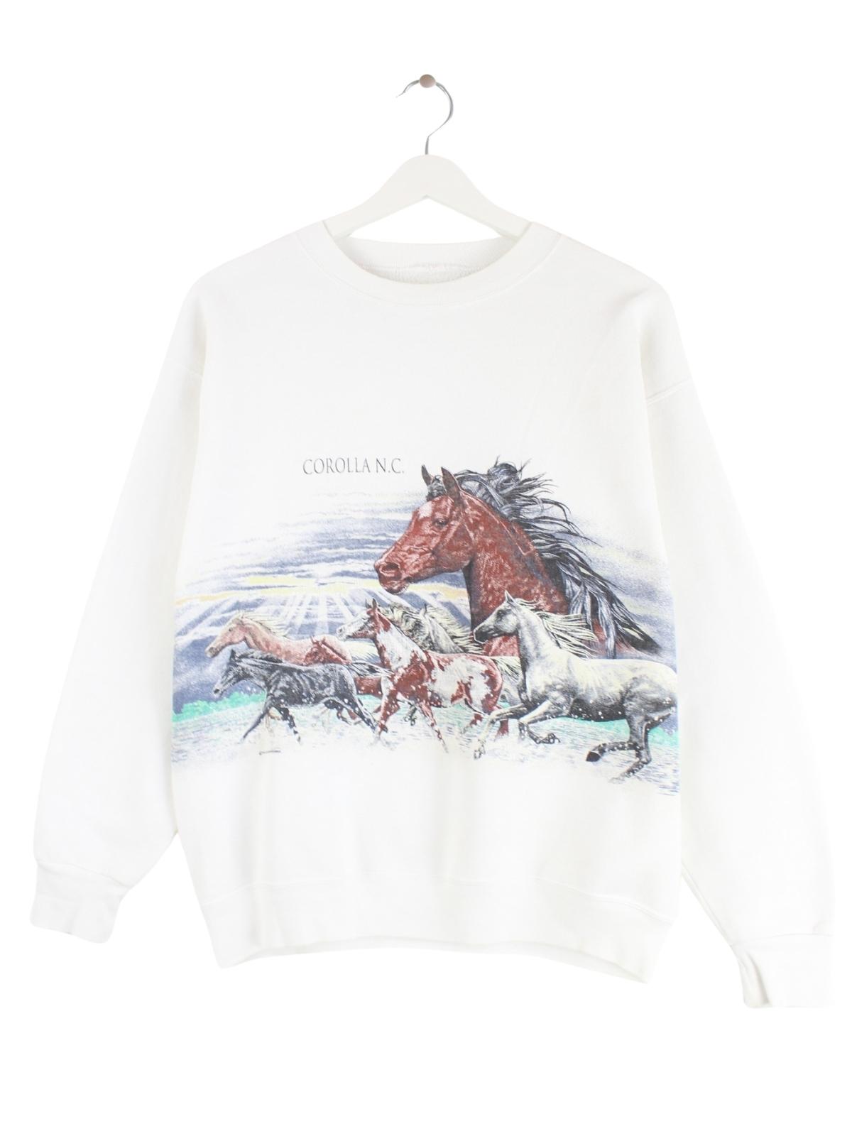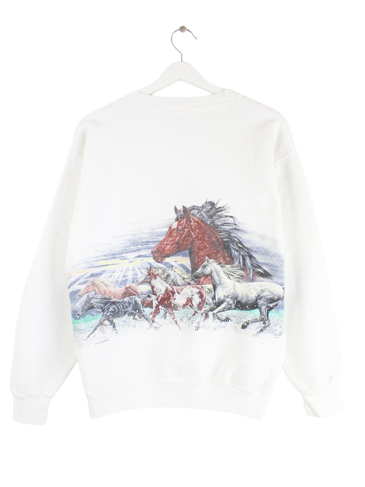 Vintage 90s Horse Print Sweater Weiß S