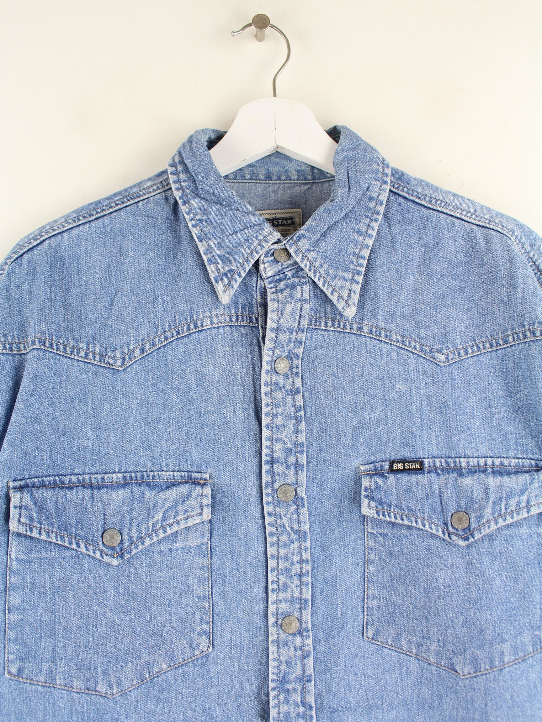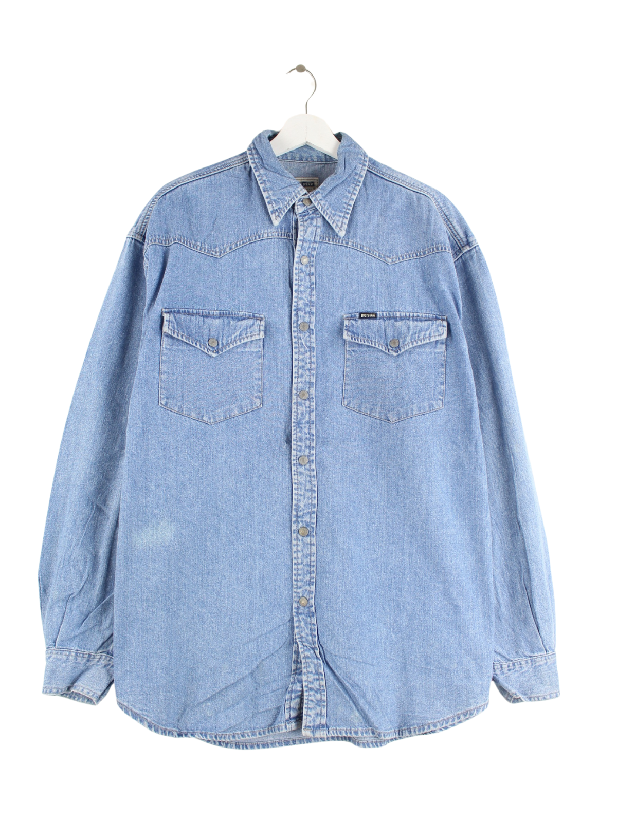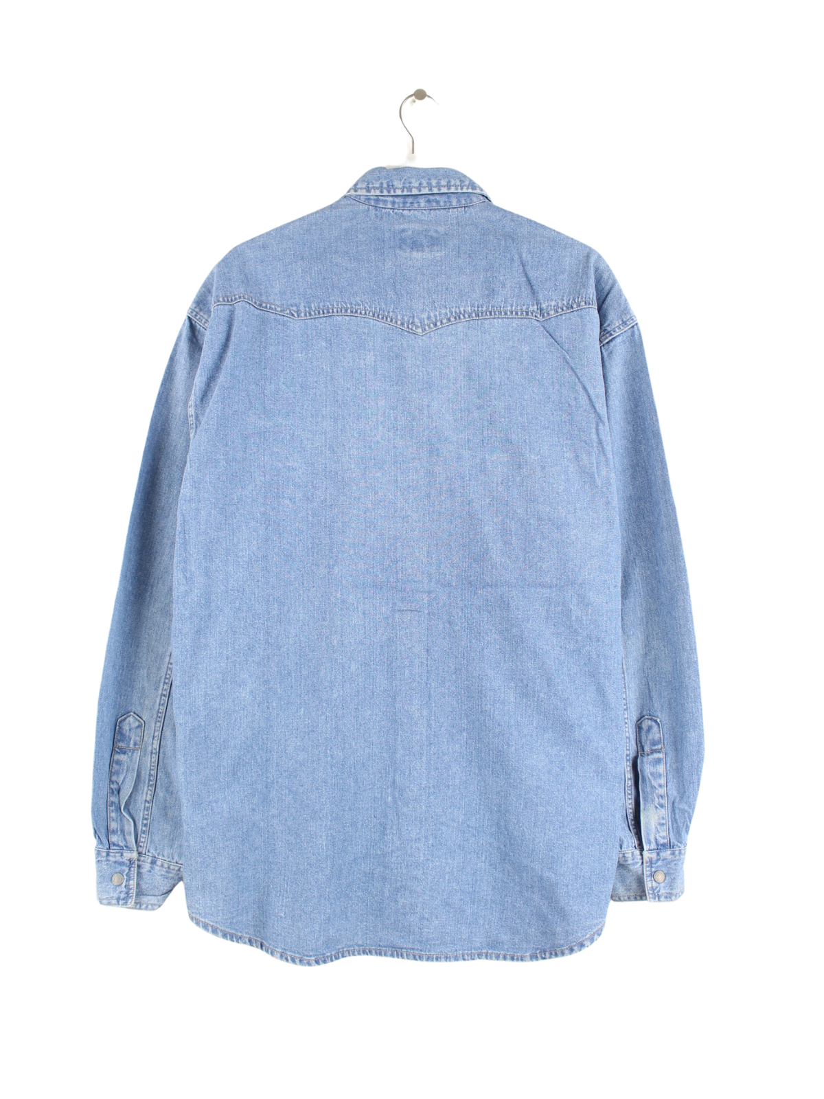 Blue vintage casual shirt from the 90's in size L. It is made of cotton and is available from us in good condition.