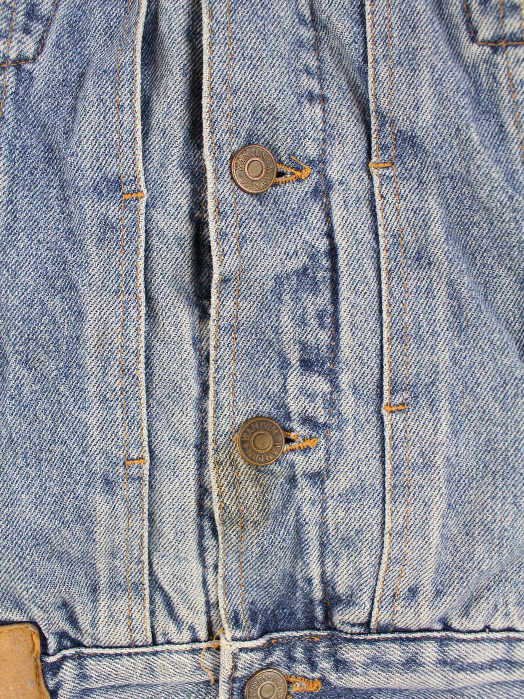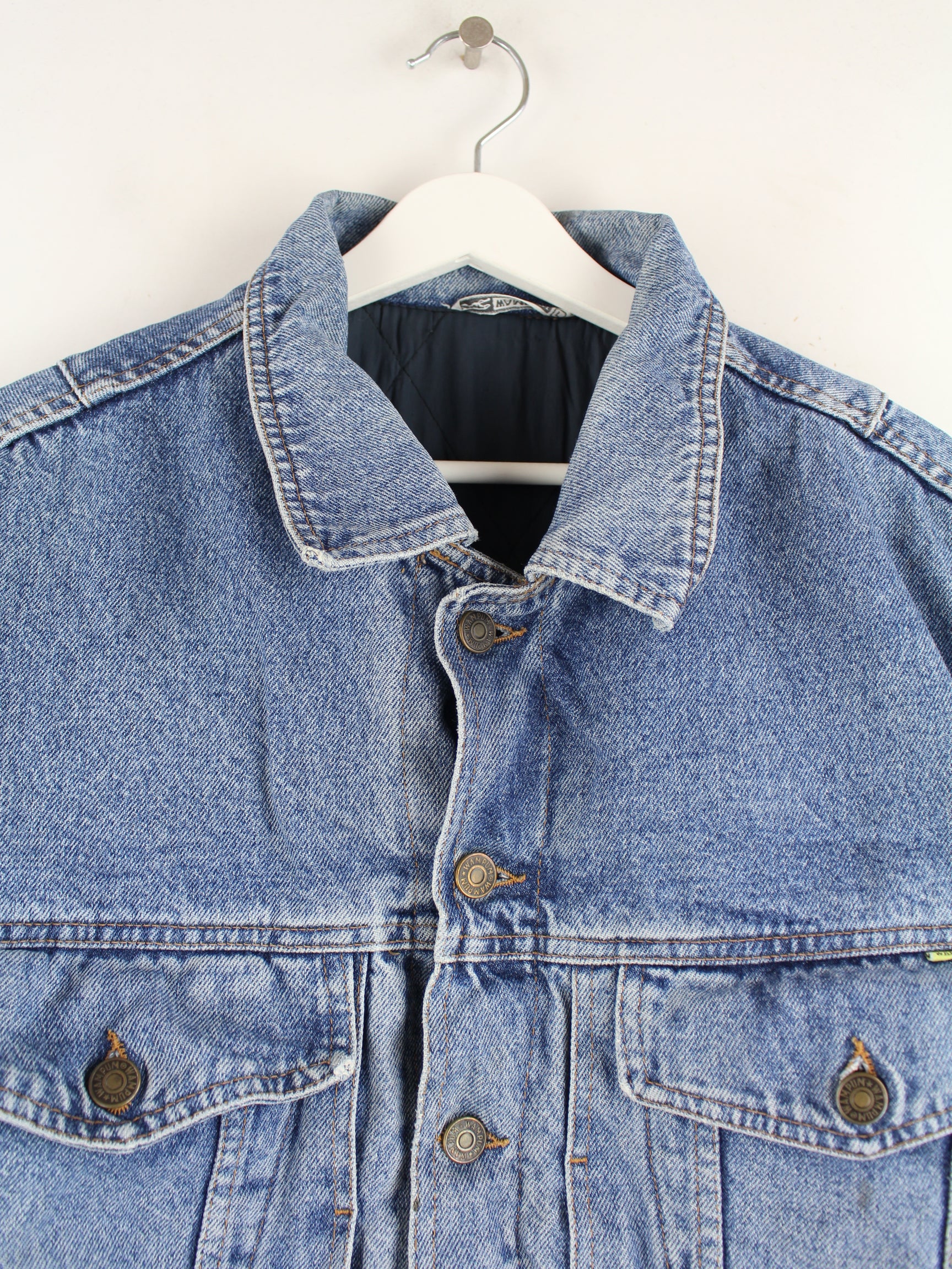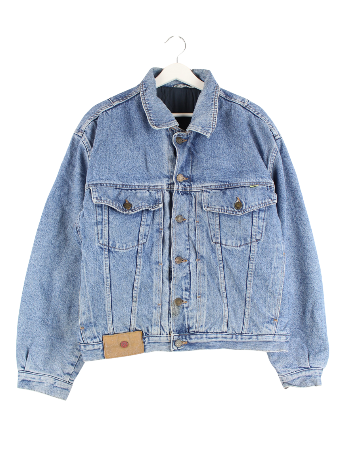 Blue vintage jacket from the 90's in size L. It is made of cotton and is in good condition.