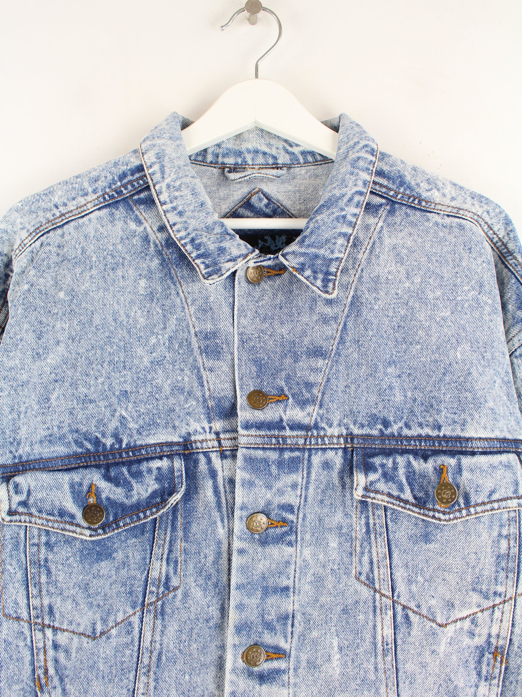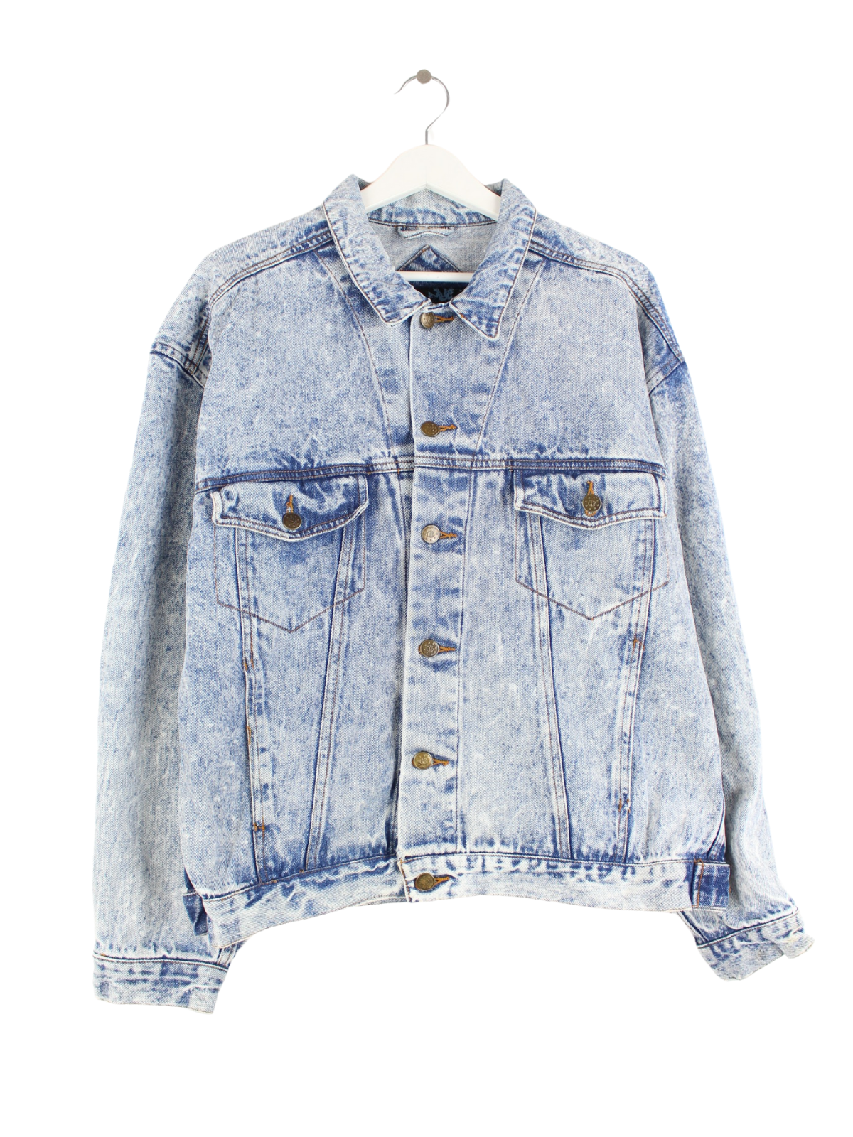 Vintage light jacket in size S from the 90's. It is made of cotton and available in blue.