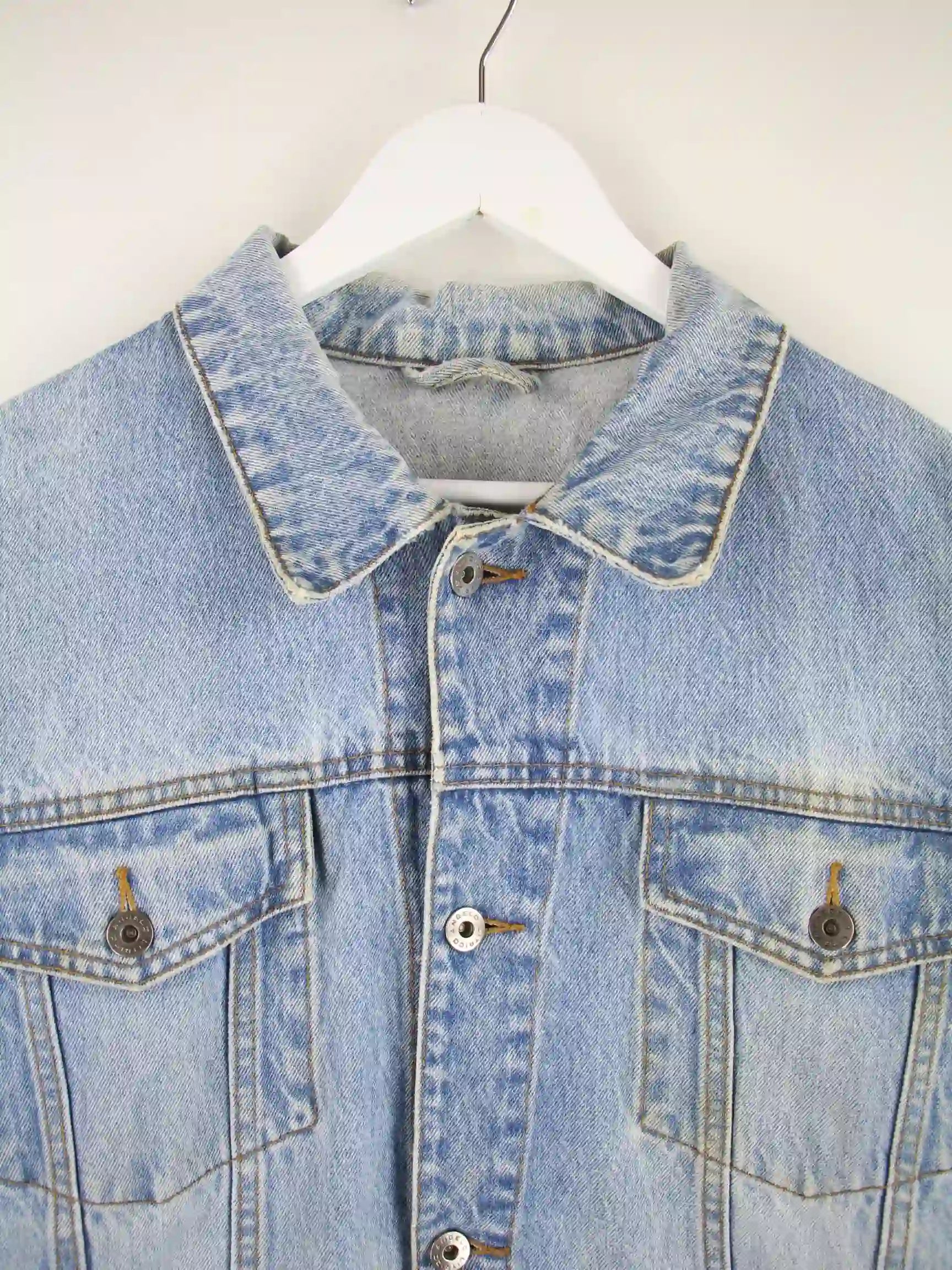 Blaue Vintage Jacke aus den 90'ern in Größe XL. Sie ist aus Baumwolle angefertigt und in gutem Zustand in Stock.