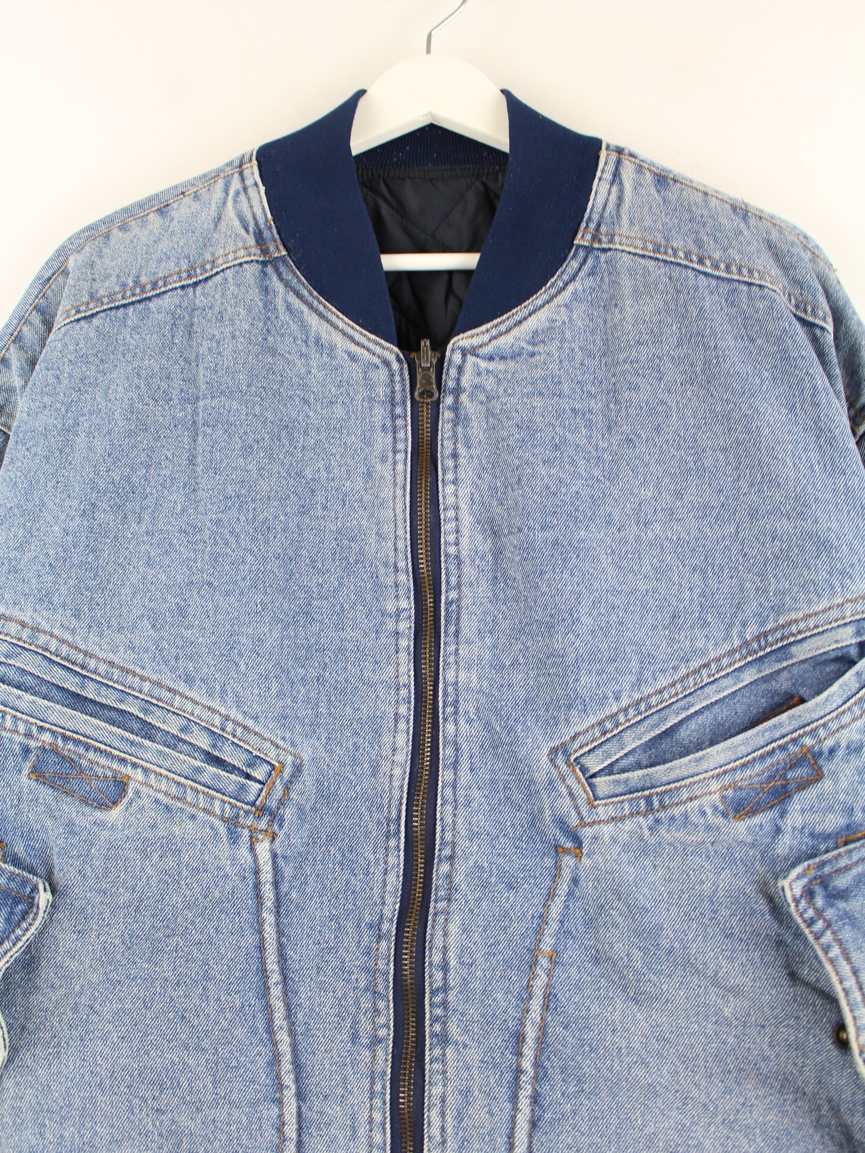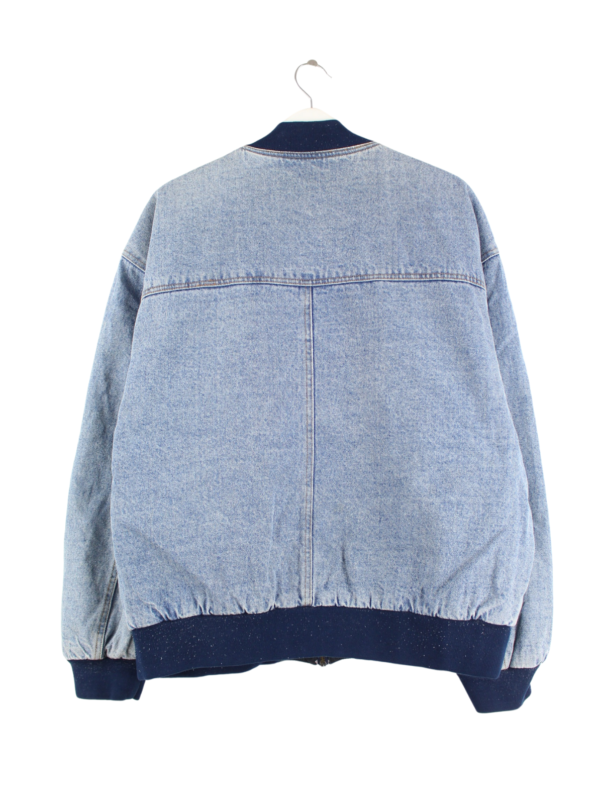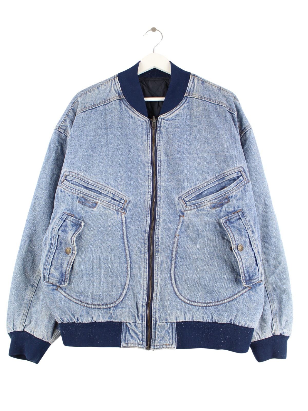 Vintage jacket in size L from the 90's. It is made of a cotton blend and is in stock in blue.