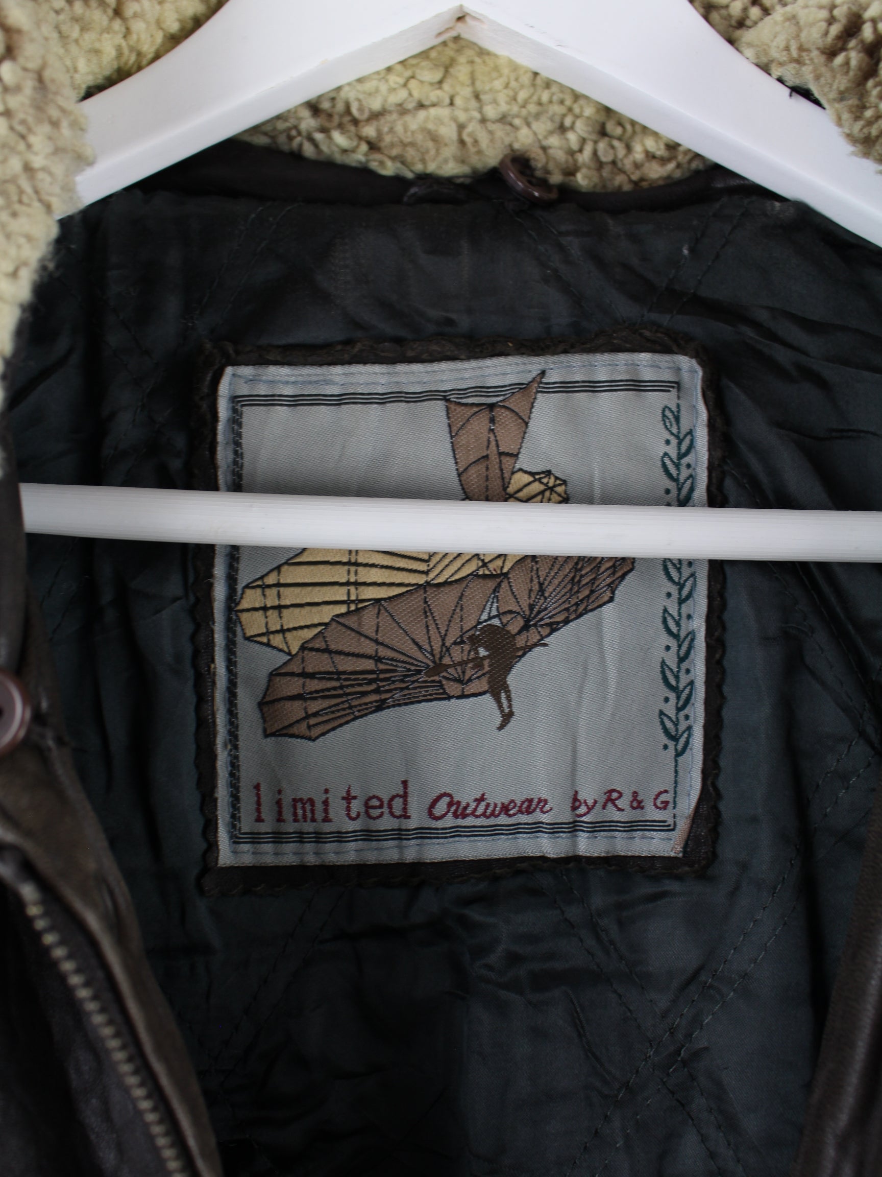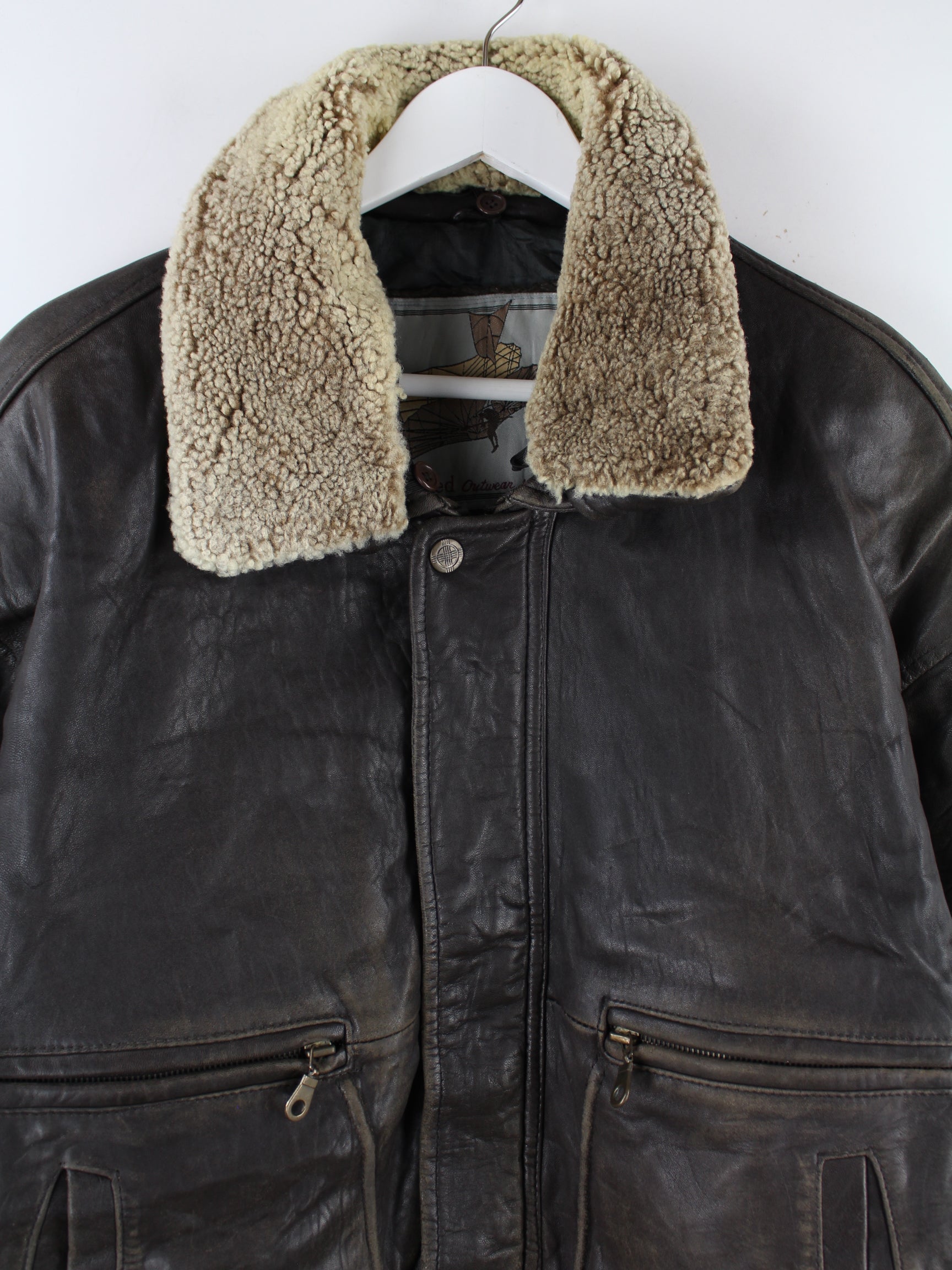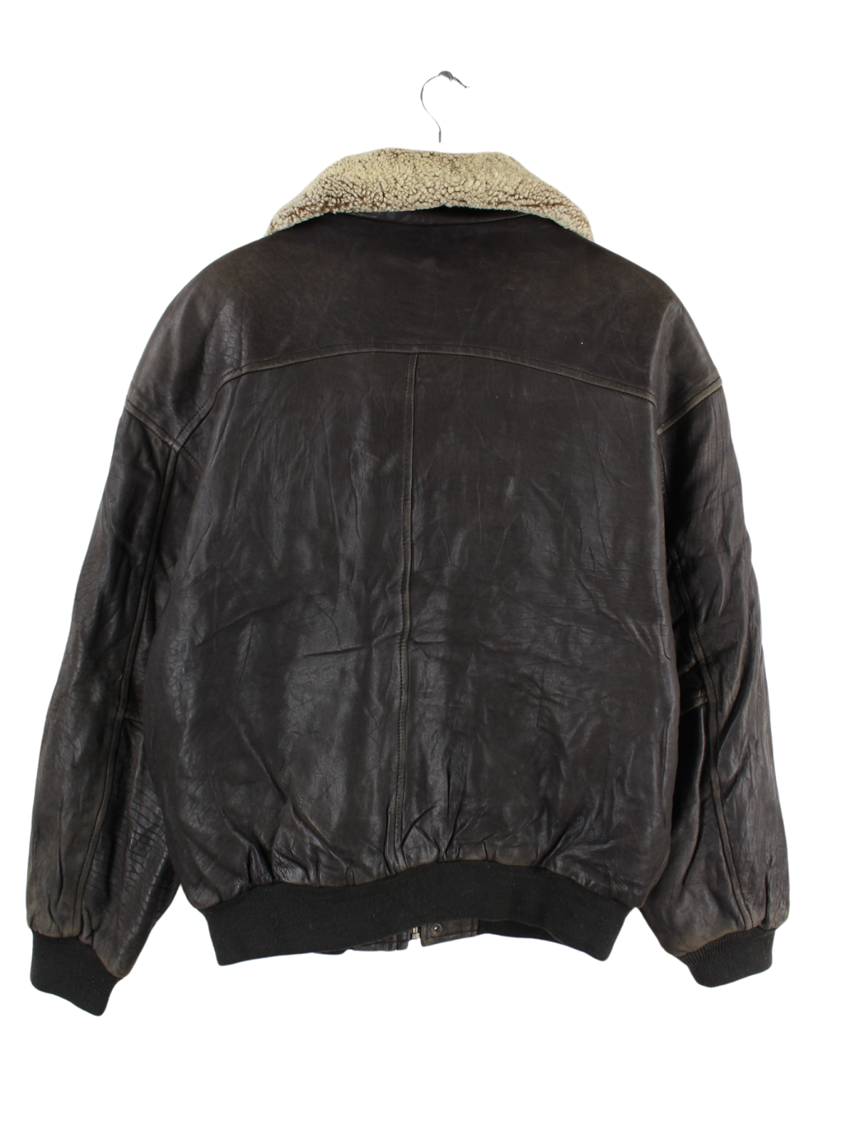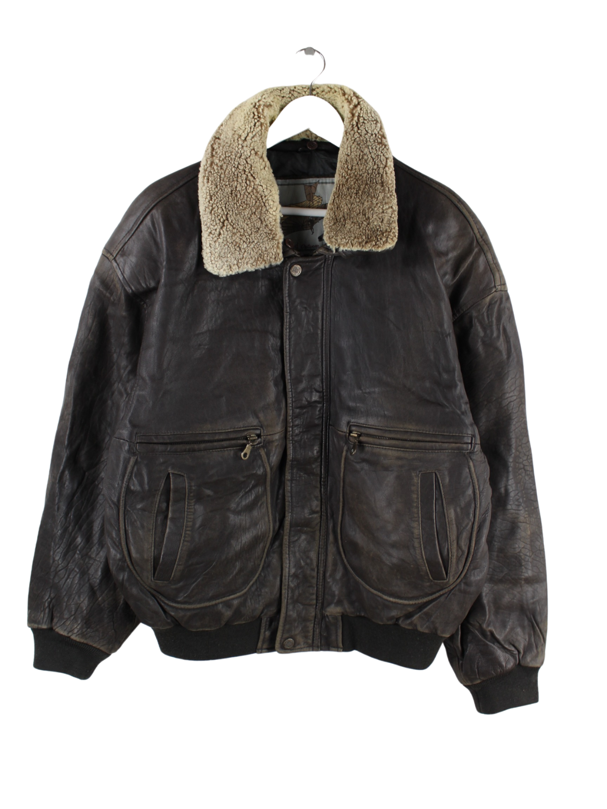 Vintage Jacke in Größe L aus den 90'ern. Sie ist aus Leder gemacht und in Braun vorrätig.