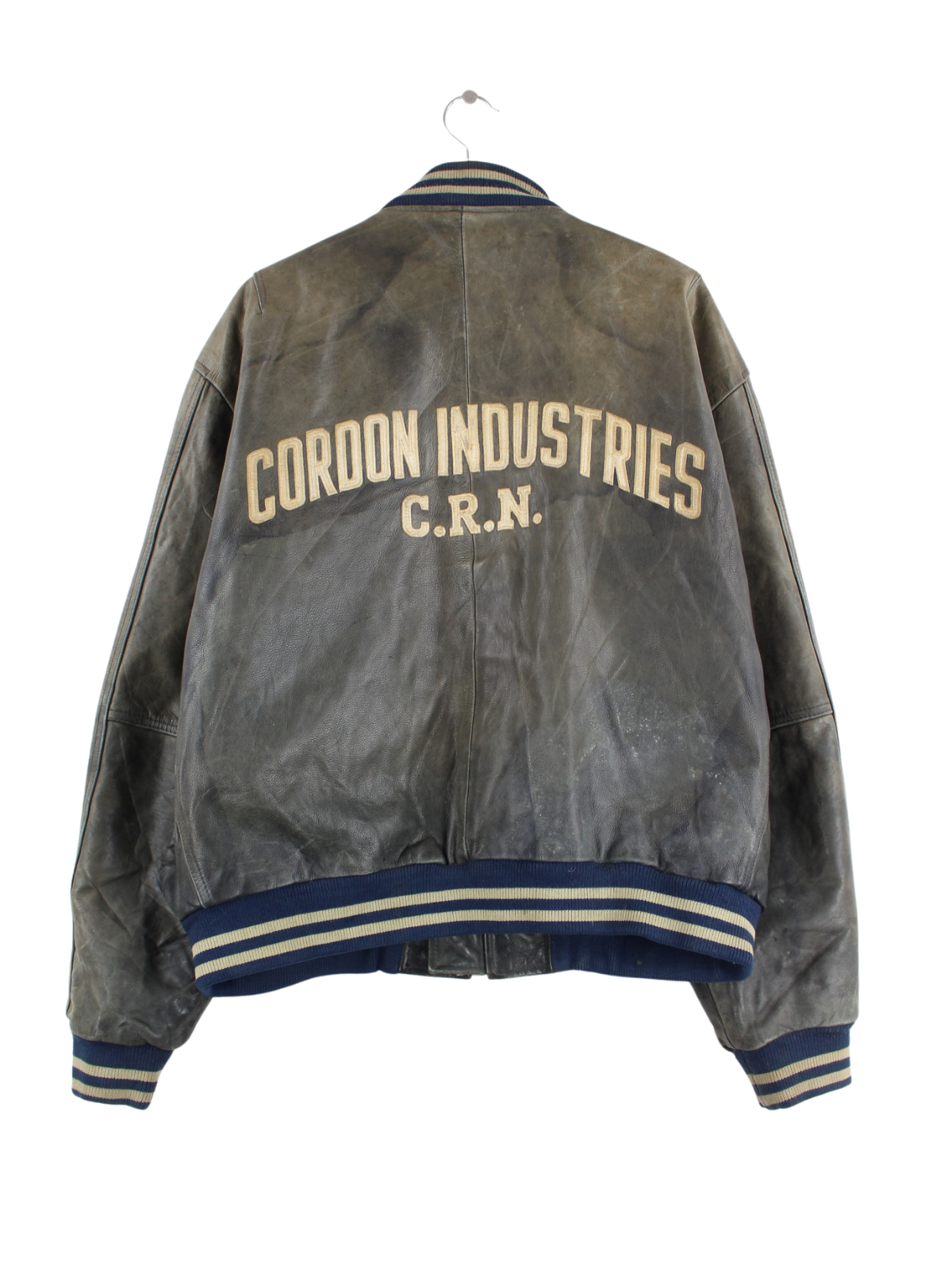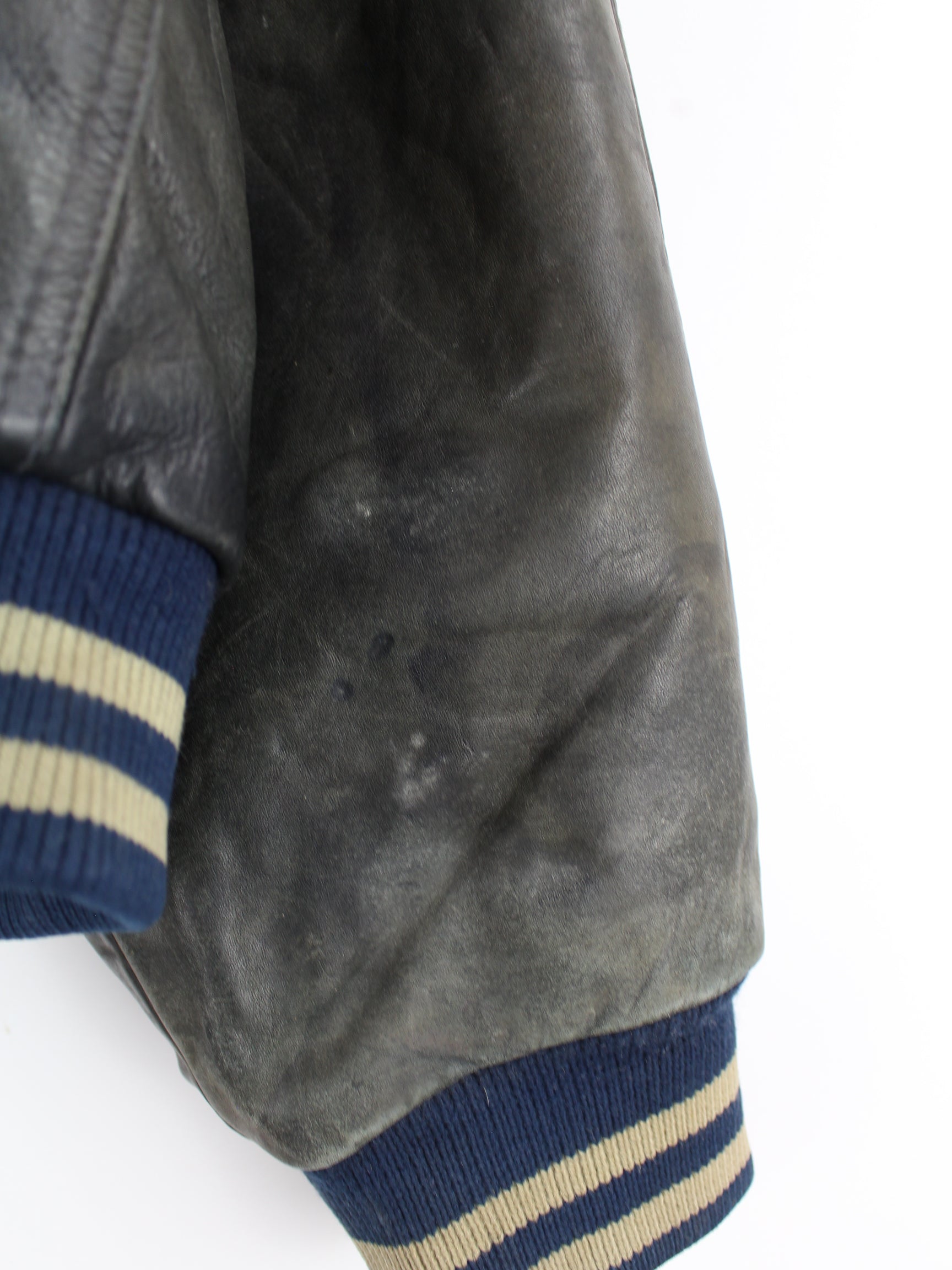 Vintage 90s Leather College Jacket Grey XL