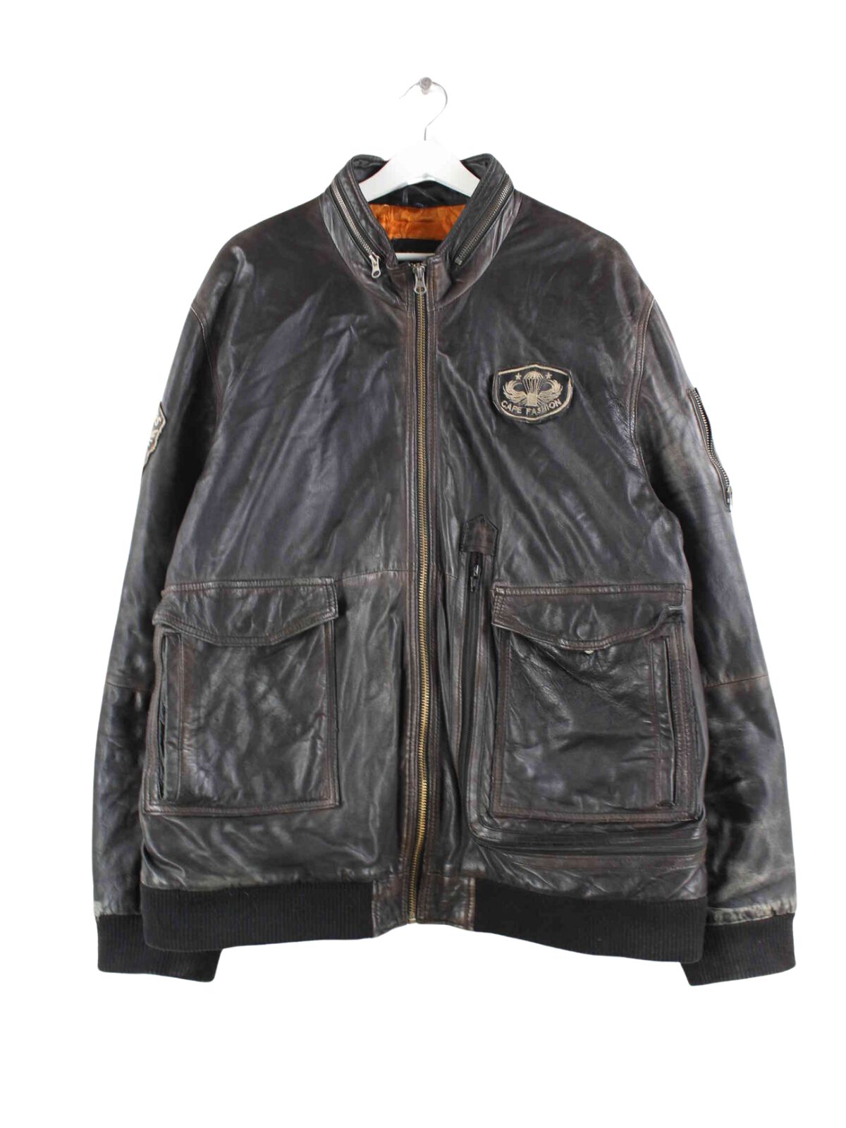 Brown vintage jacket from the 90's in size 3XL. It is made of leather and is in good condition.