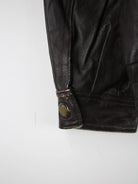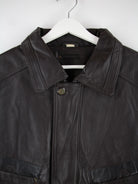 Vintage Jacke in Größe XL aus den 90'ern. Sie ist aus Leder hergestellt und in Braun zu haben.