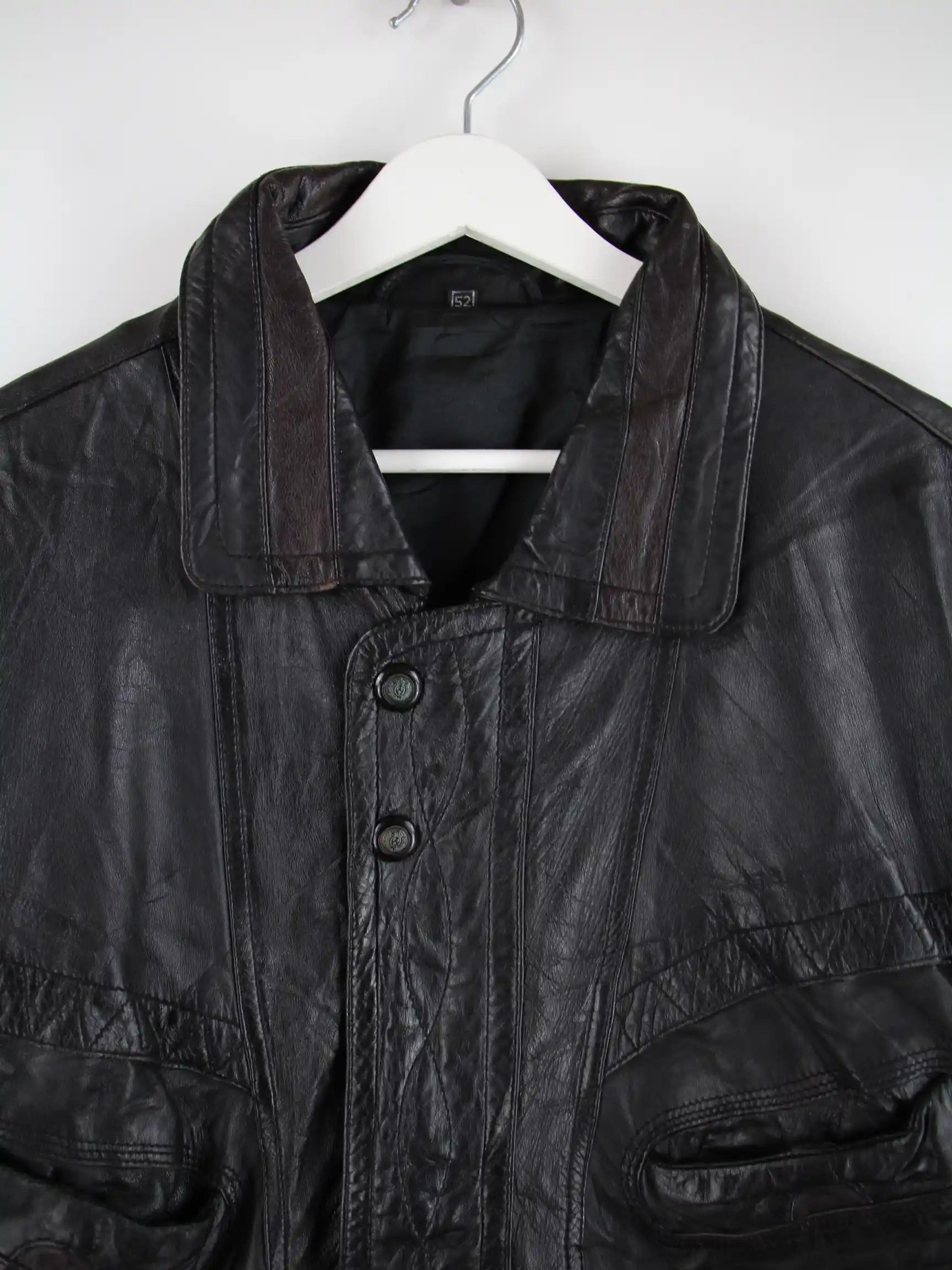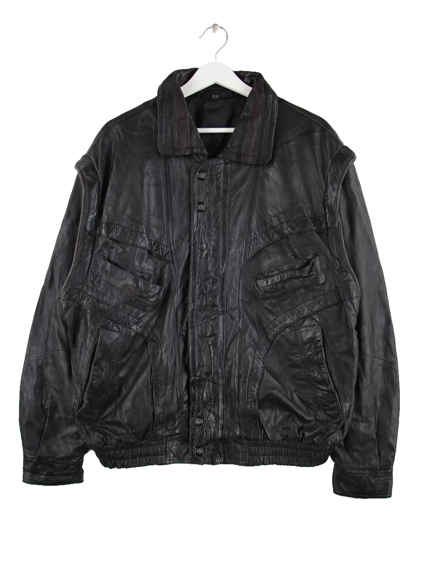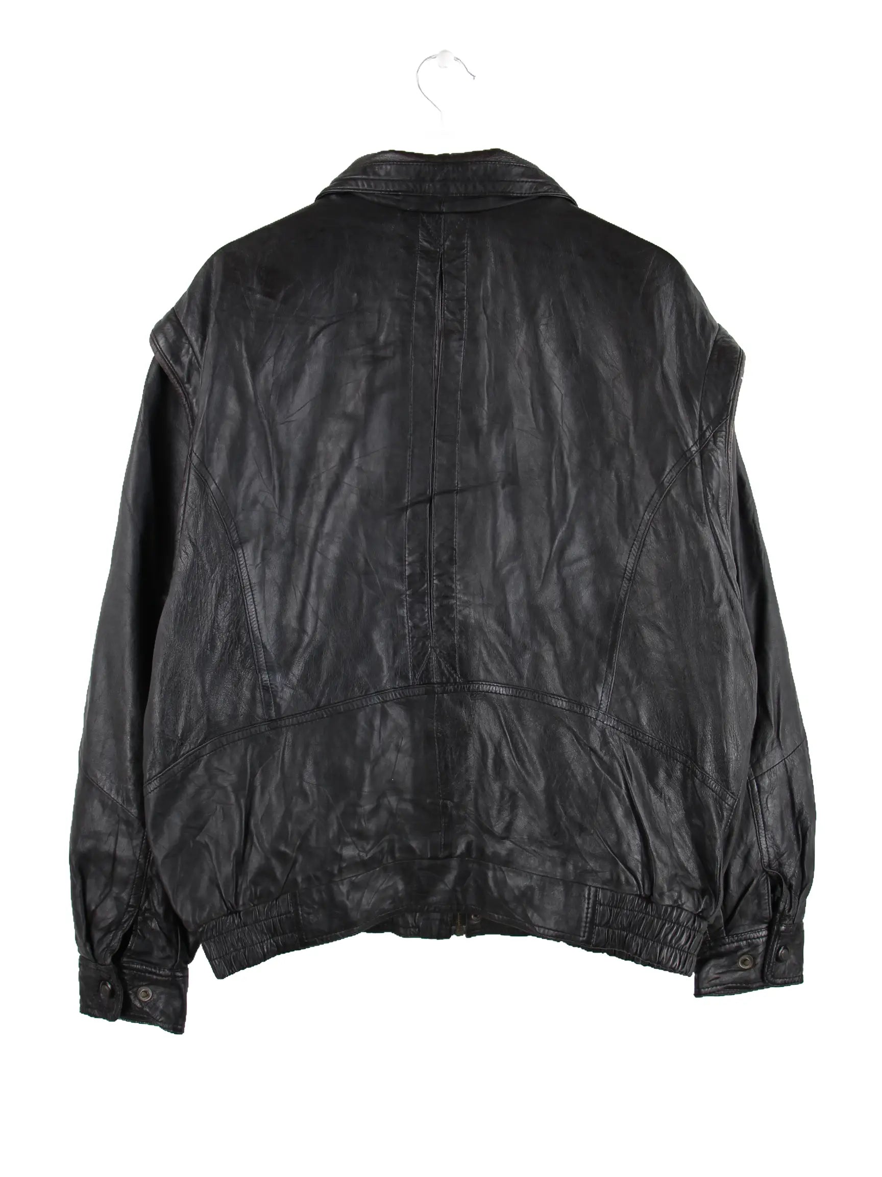 Schwarze Vintage Jacke aus den 90'ern in Größe L. Sie ist aus Leder gefertigt und in sehr gutem Zustand zu haben.