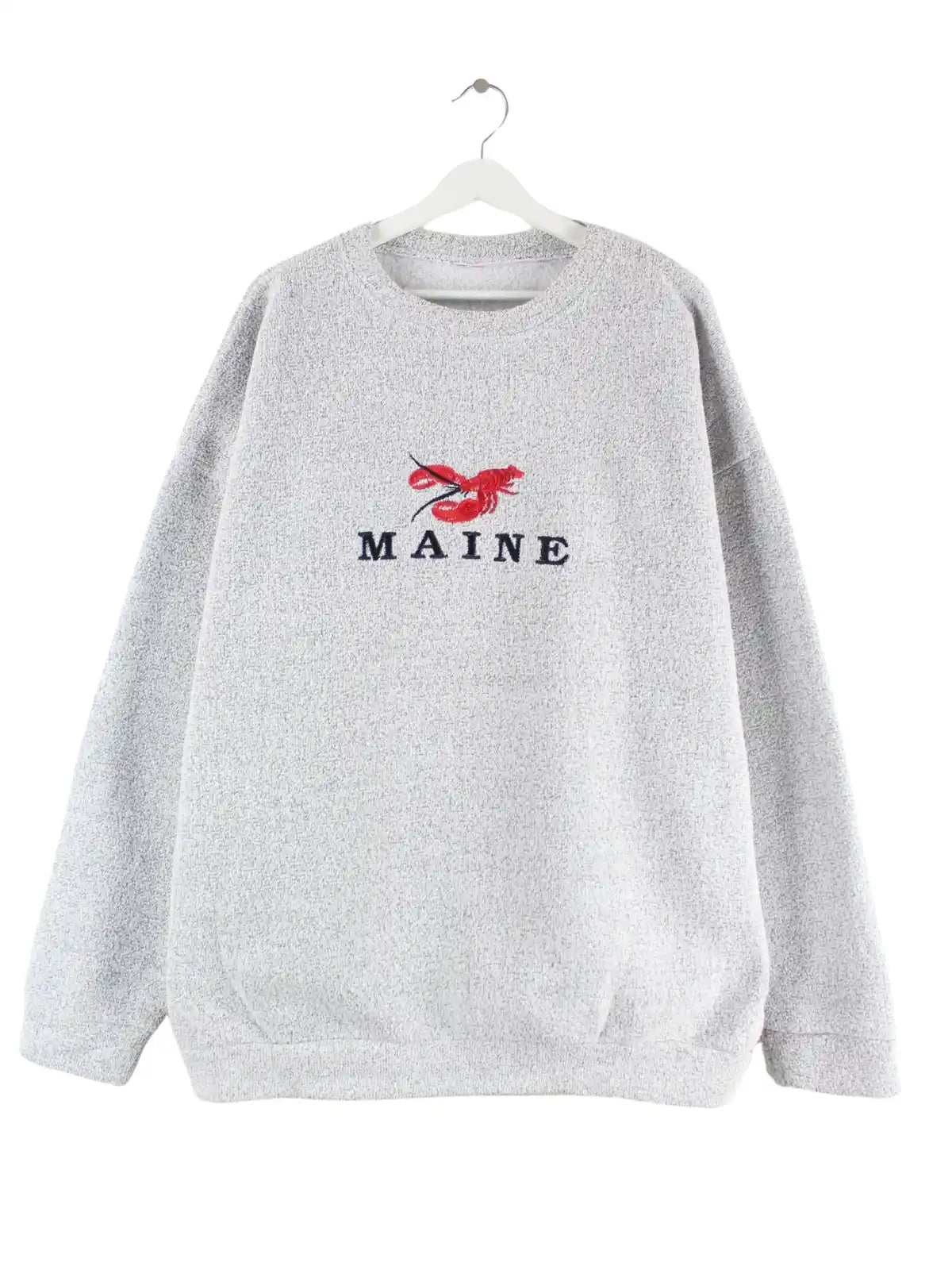 Vintage 90s Lobster Maine Embroidered Inside Out Sweater Grau 3XL
