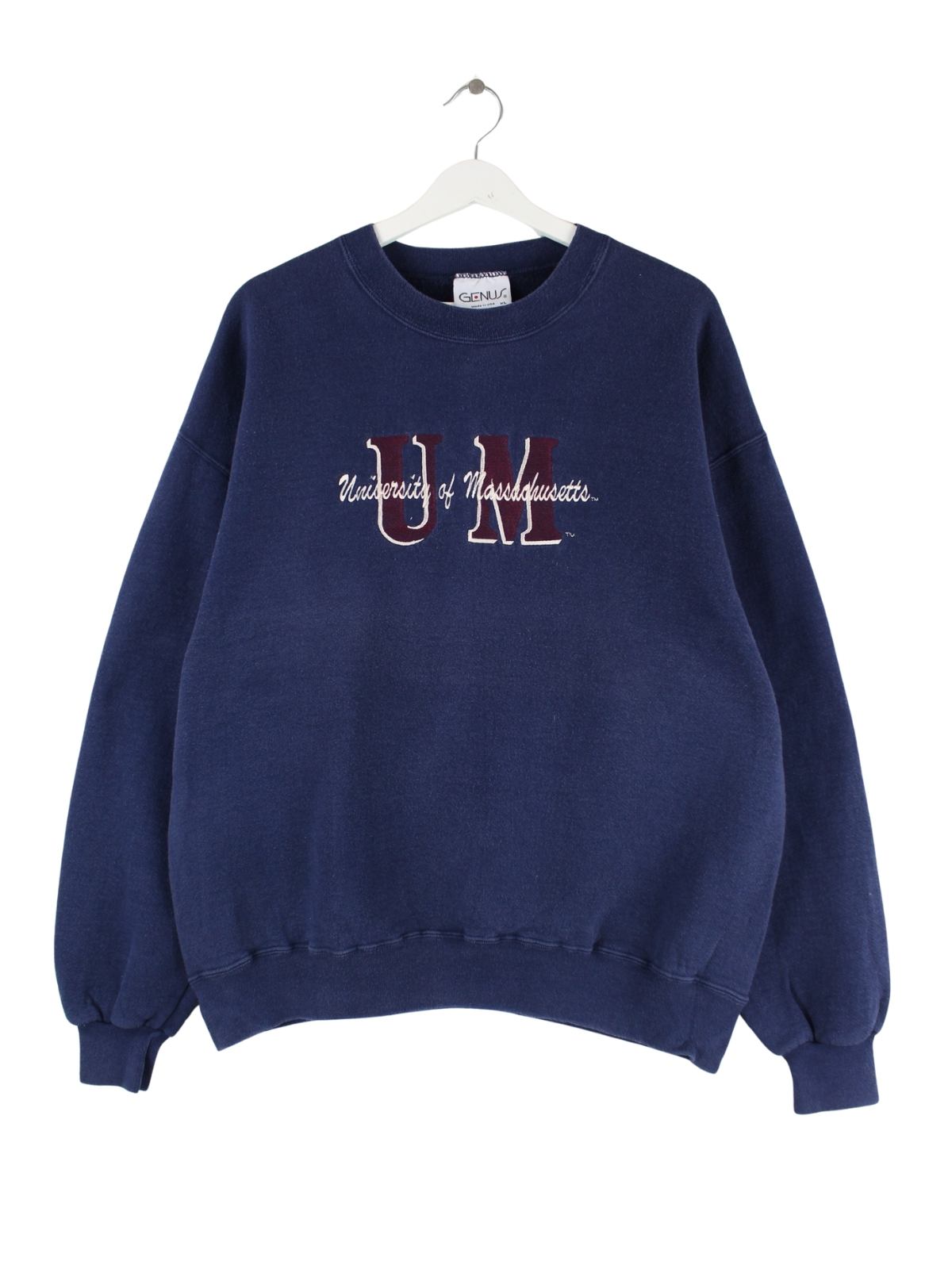 Vintage 90s Massachusetts Embroidered Sweater Blau XL