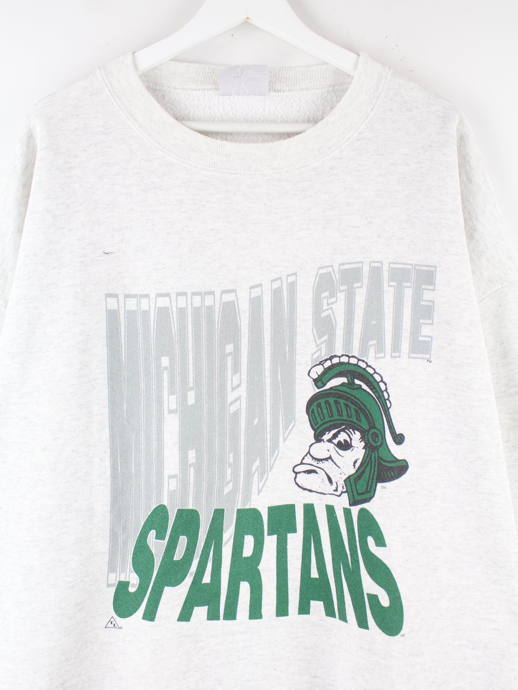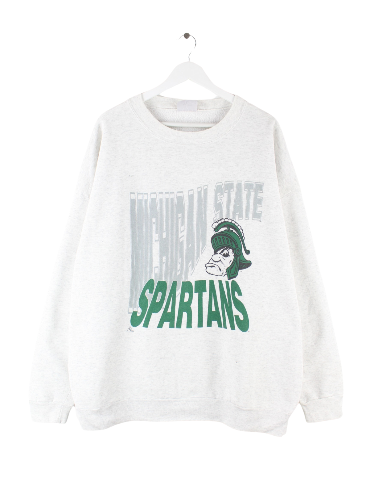 Vintage 90s Michigan Spartans Print Sweater Grau 3XL