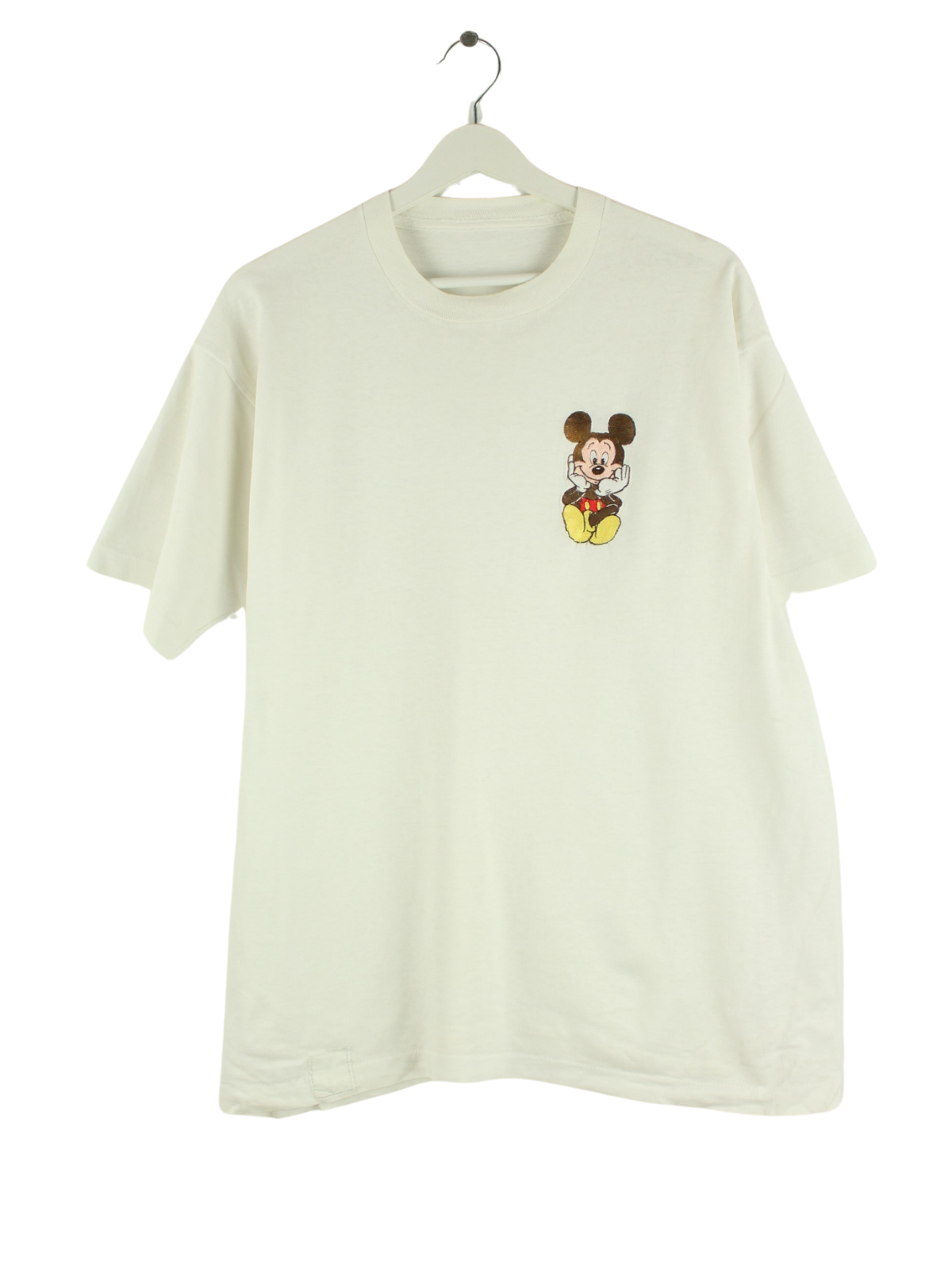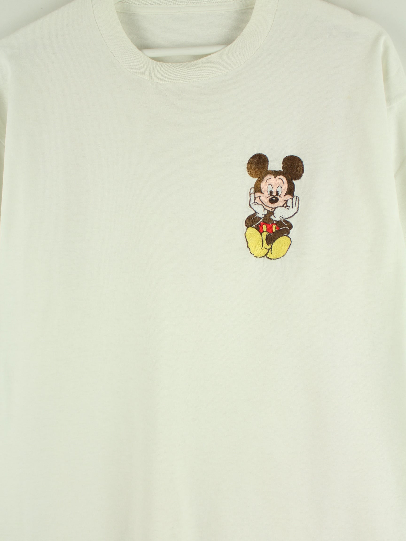 Vintage 90s Mickey Mouse Embroidered Single Stitch T-Shirt White L