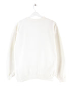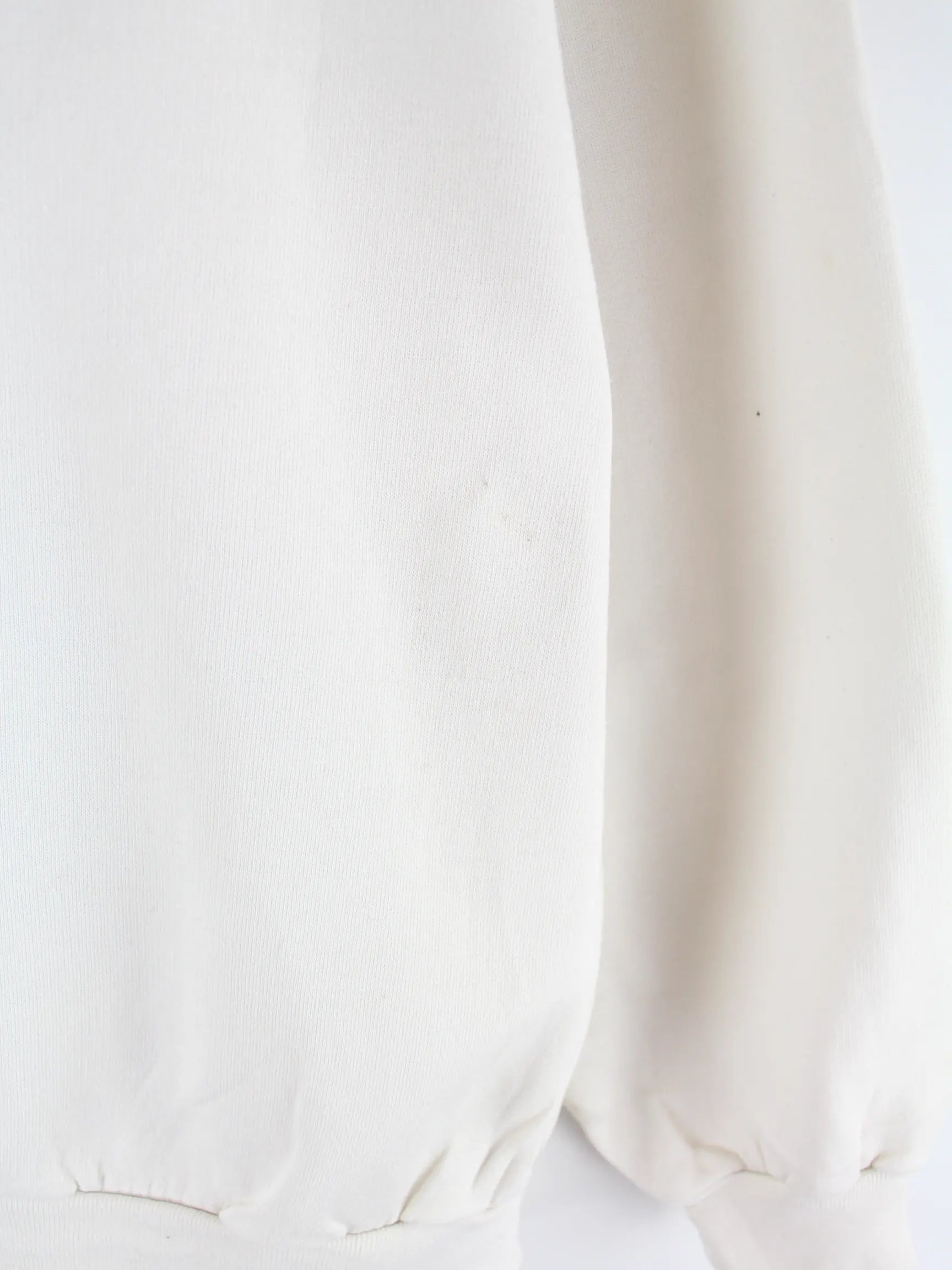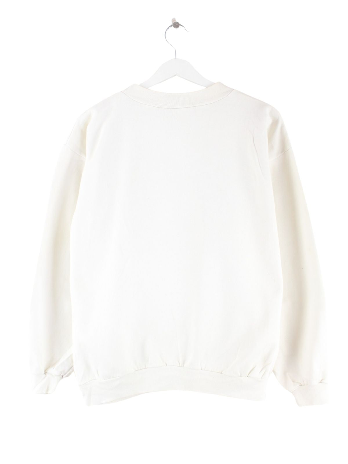 Weißer Vintage Sweater aus den 90'ern in Größe M. Er ist aus einer Baumwollmischung und in gutem Zustand auf Lager. Mit seltenem Hitchhike Print.