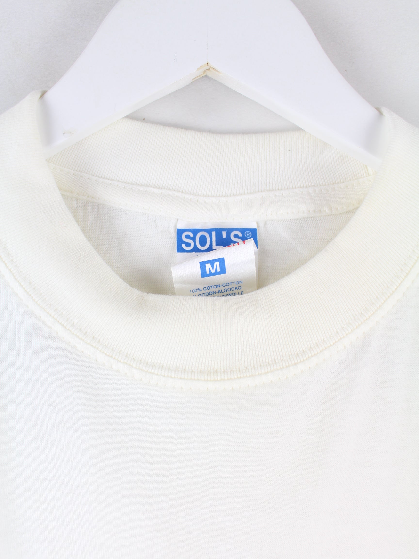 Vintage T-shirt in size M from the 90's. It is made of cotton and in stock in white. With rare Monet print.