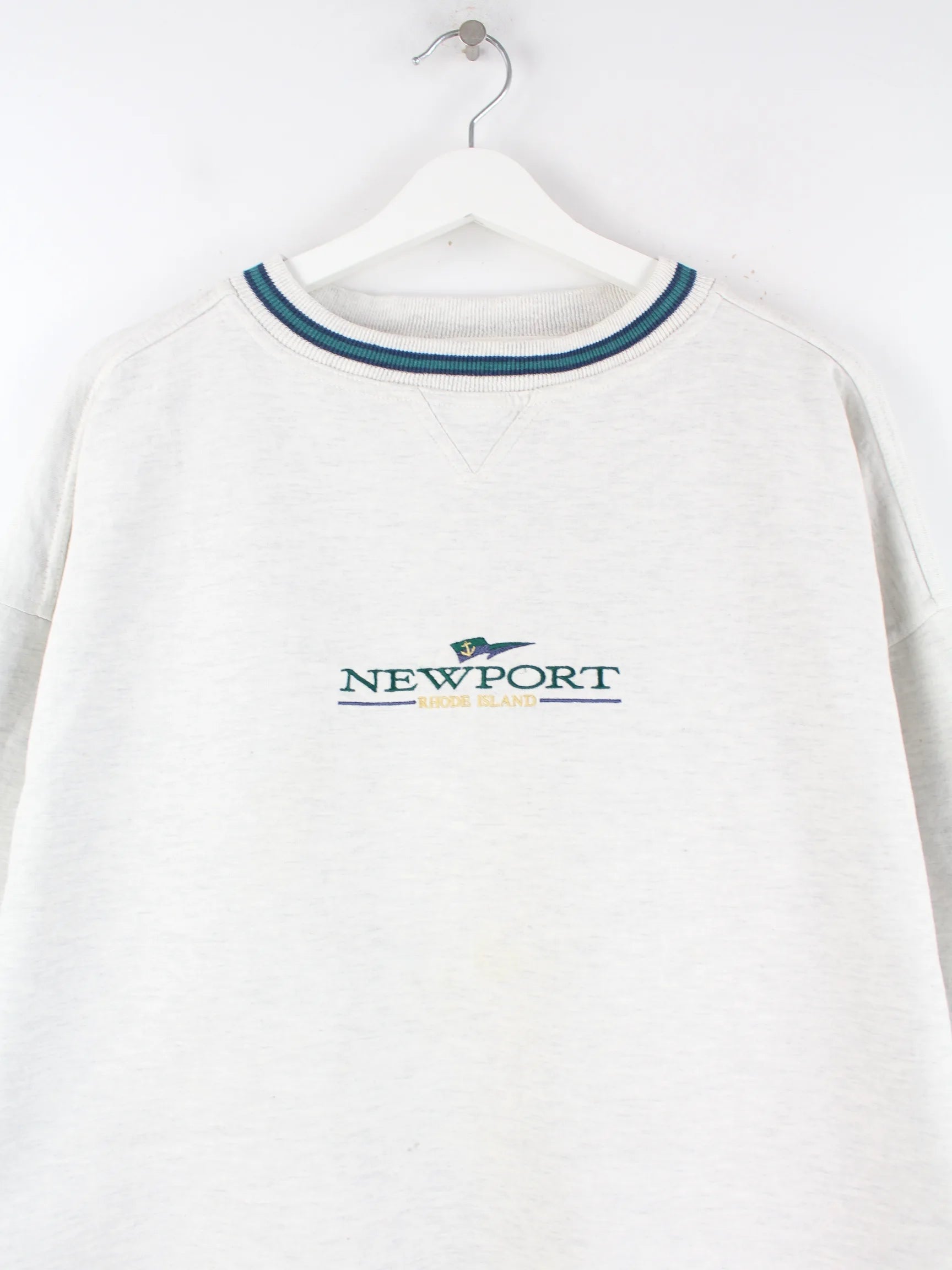 Vintage 90s New Port Embroidered Heavy Sweater Grau XL