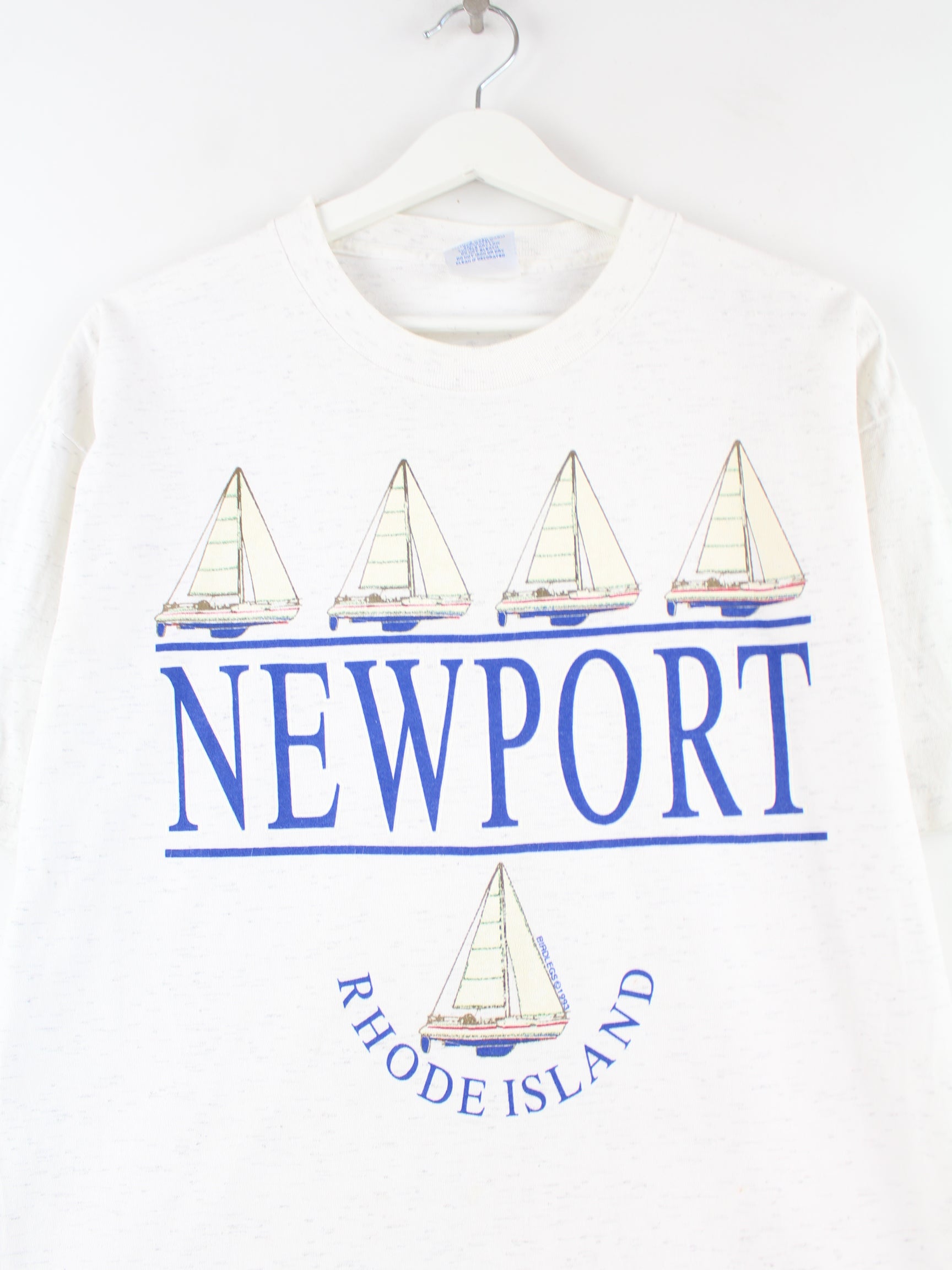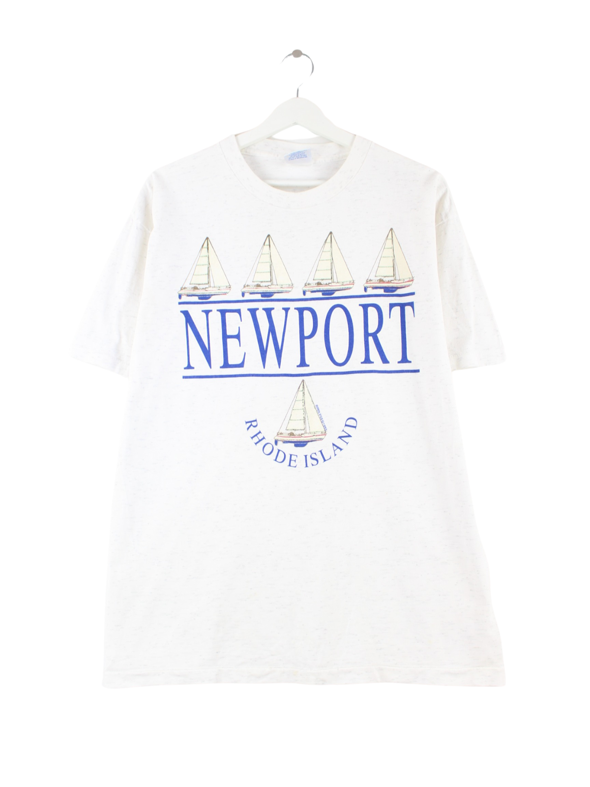 Vintage 90s New Port Print Single Stitch T-Shirt White L