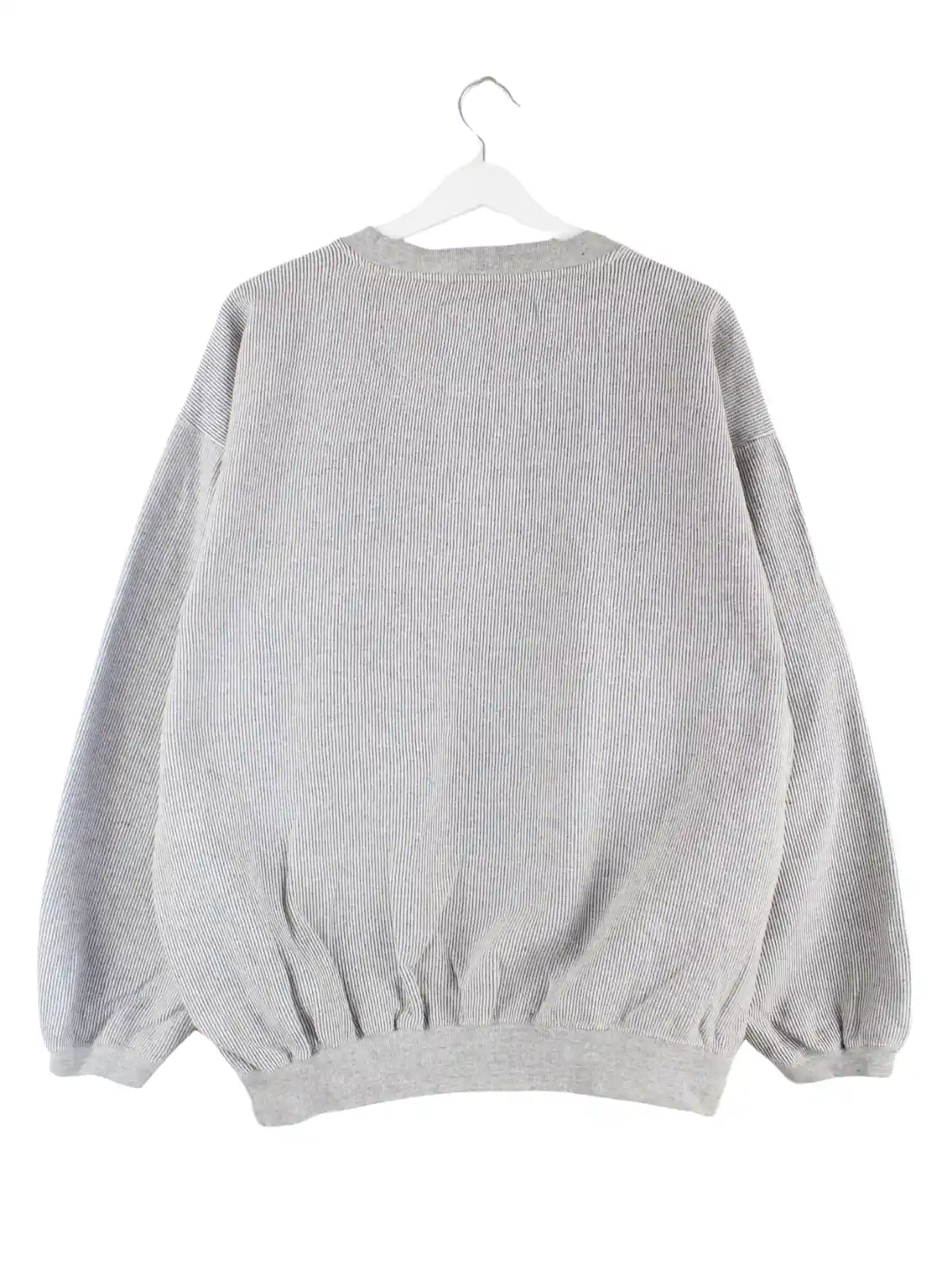 Grauer Vintage Sweater mit Stick aus den 90'ern in Größe L. Er ist aus einer Baumwollmischung gefertigt und in sehr gutem Zustand zu haben.