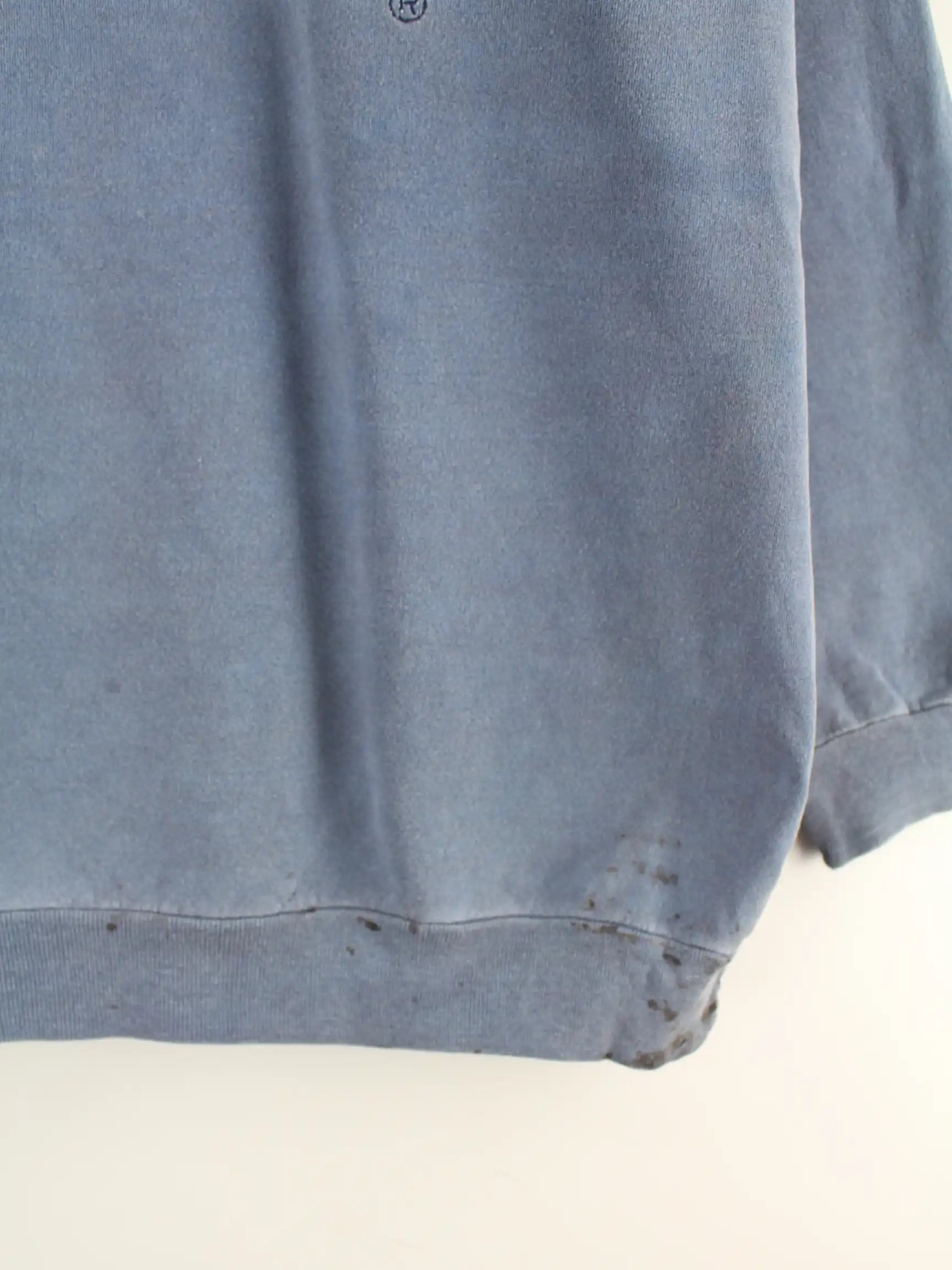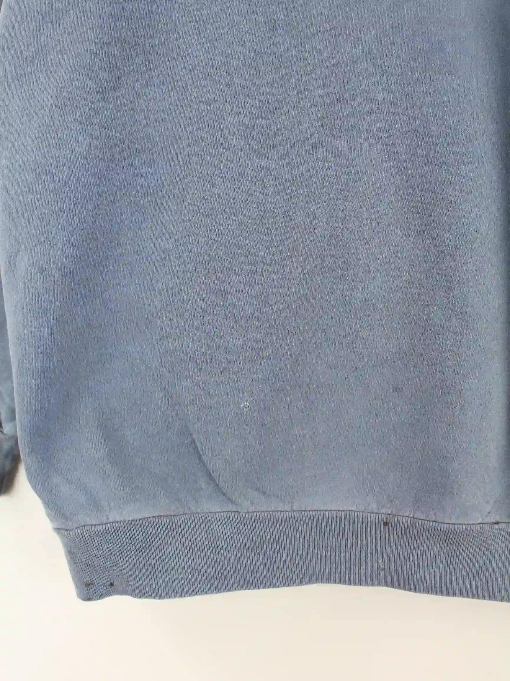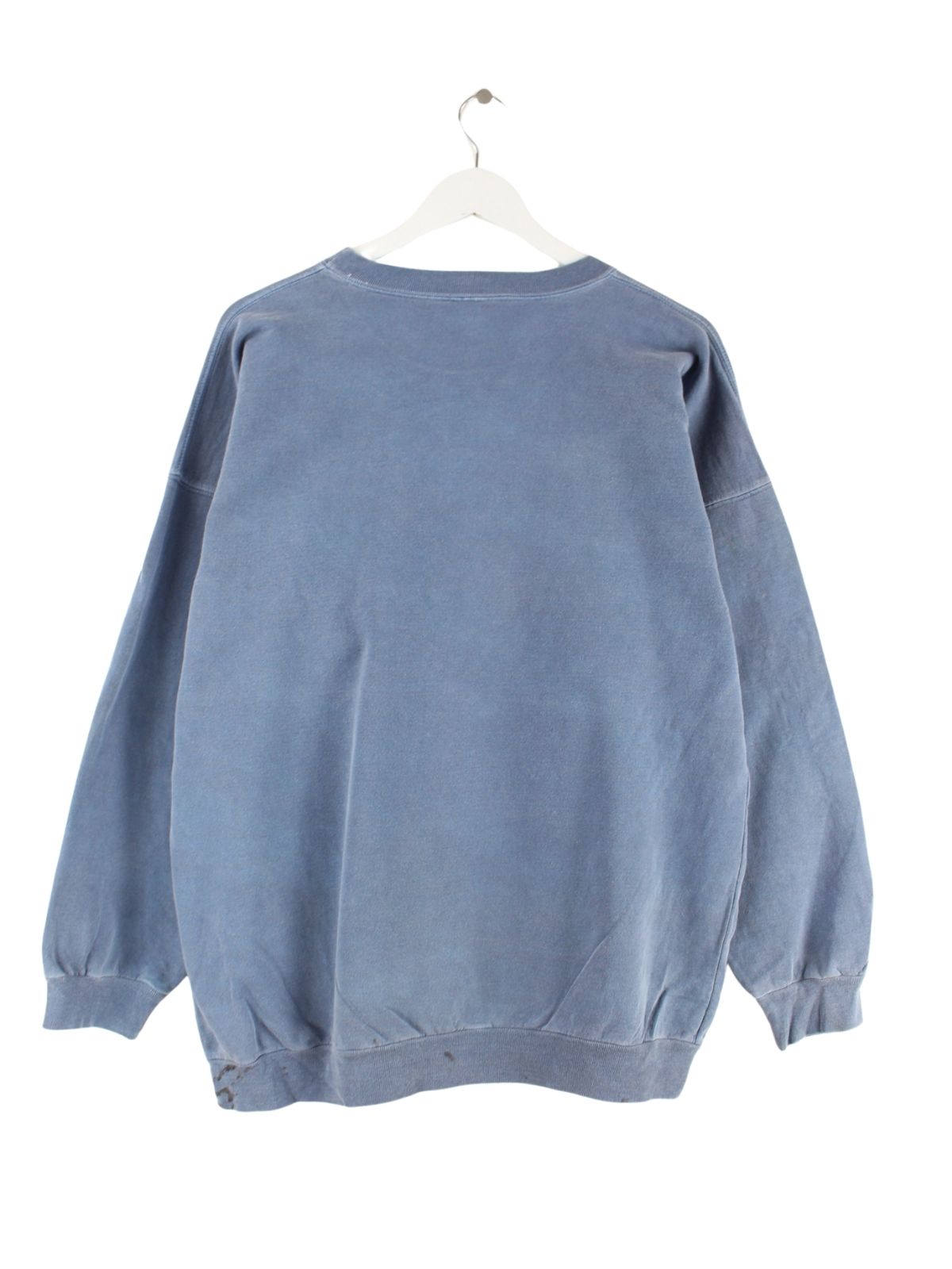 Vintage Sweater mit Stickereien in Größe XL aus den 90'ern. Er ist aus einer Baumwollmischung hergestellt und in Blau lieferbar.