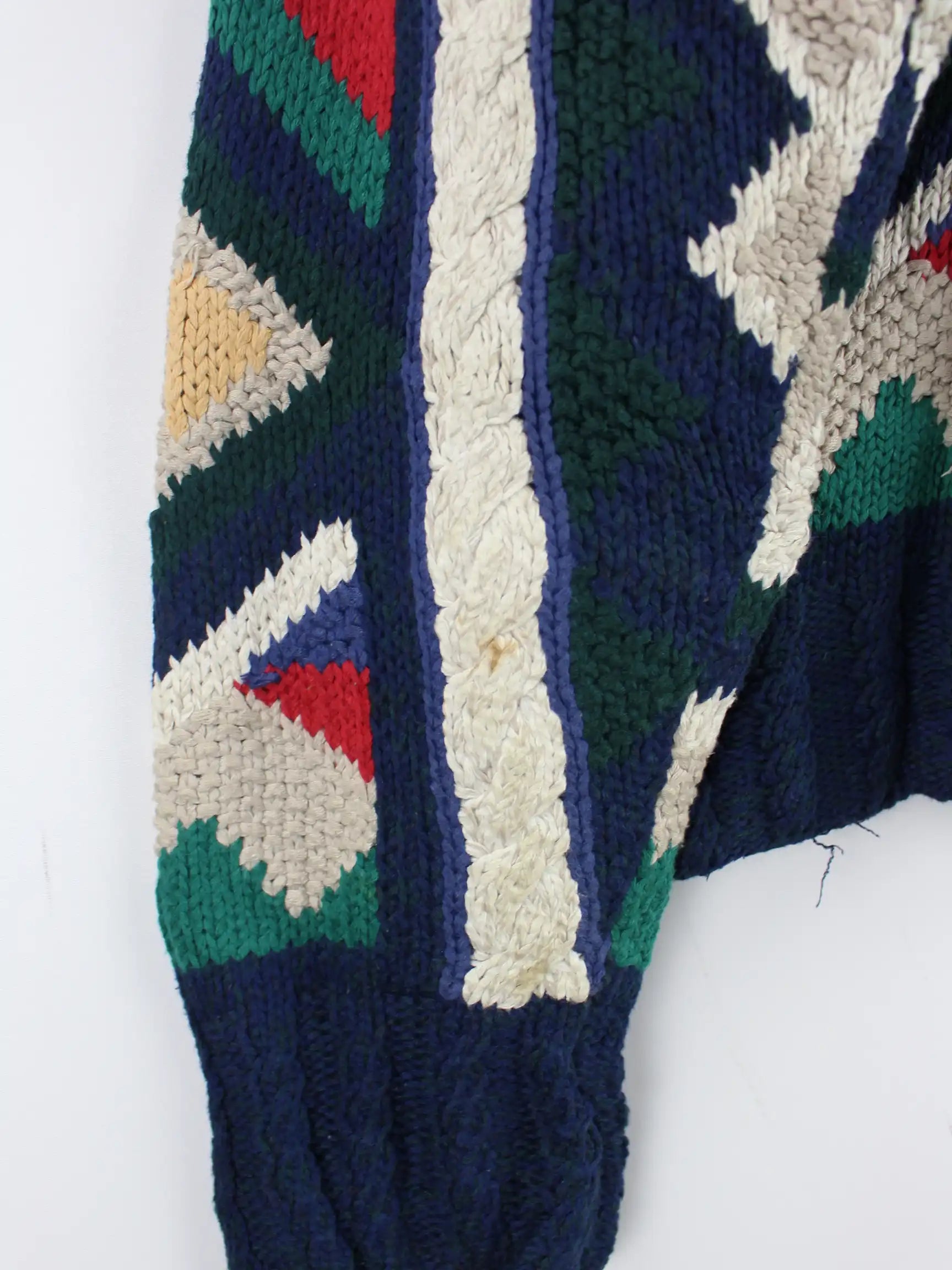 Mehrfarbiger Vintage Pullover aus den 90'ern in Größe L. Er ist aus Baumwolle angefertigt. Den Zustand würden wir als 'In Ordnung' bezeichnen (vergl. Bilder).