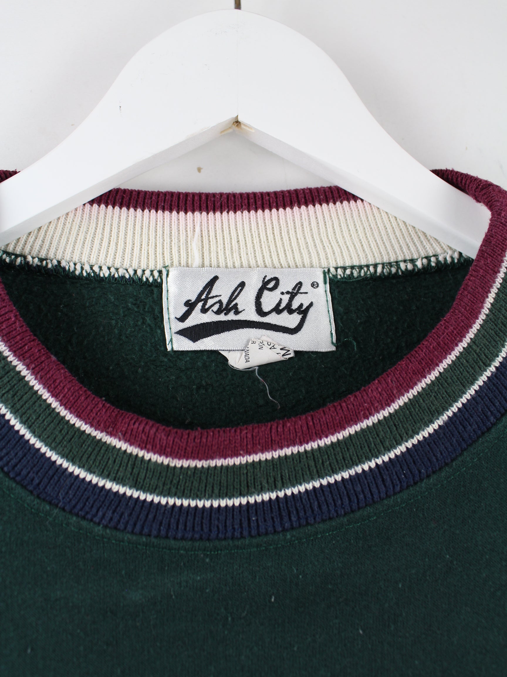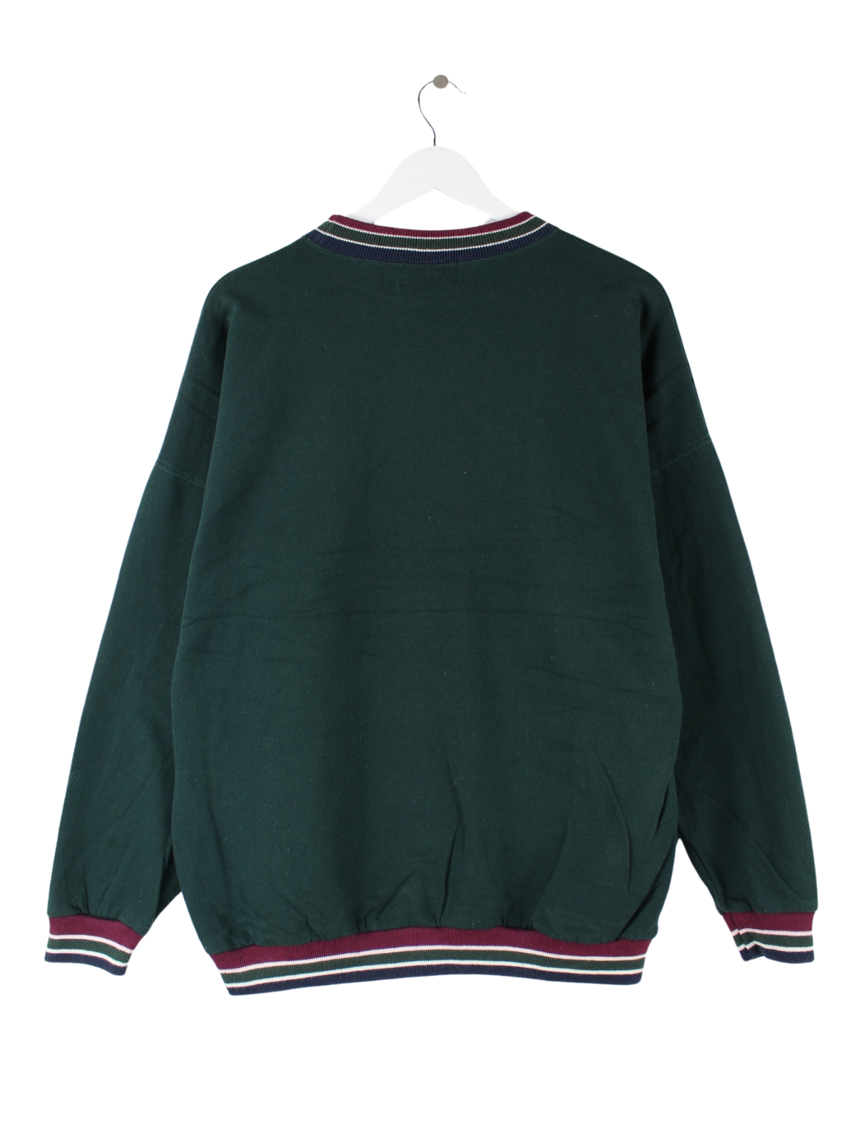 Vintage Sweater mit Stick in Größe M aus den 90'ern. Er ist aus einer Baumwollmischung hergestellt und in Grün bei uns zu bekommen.