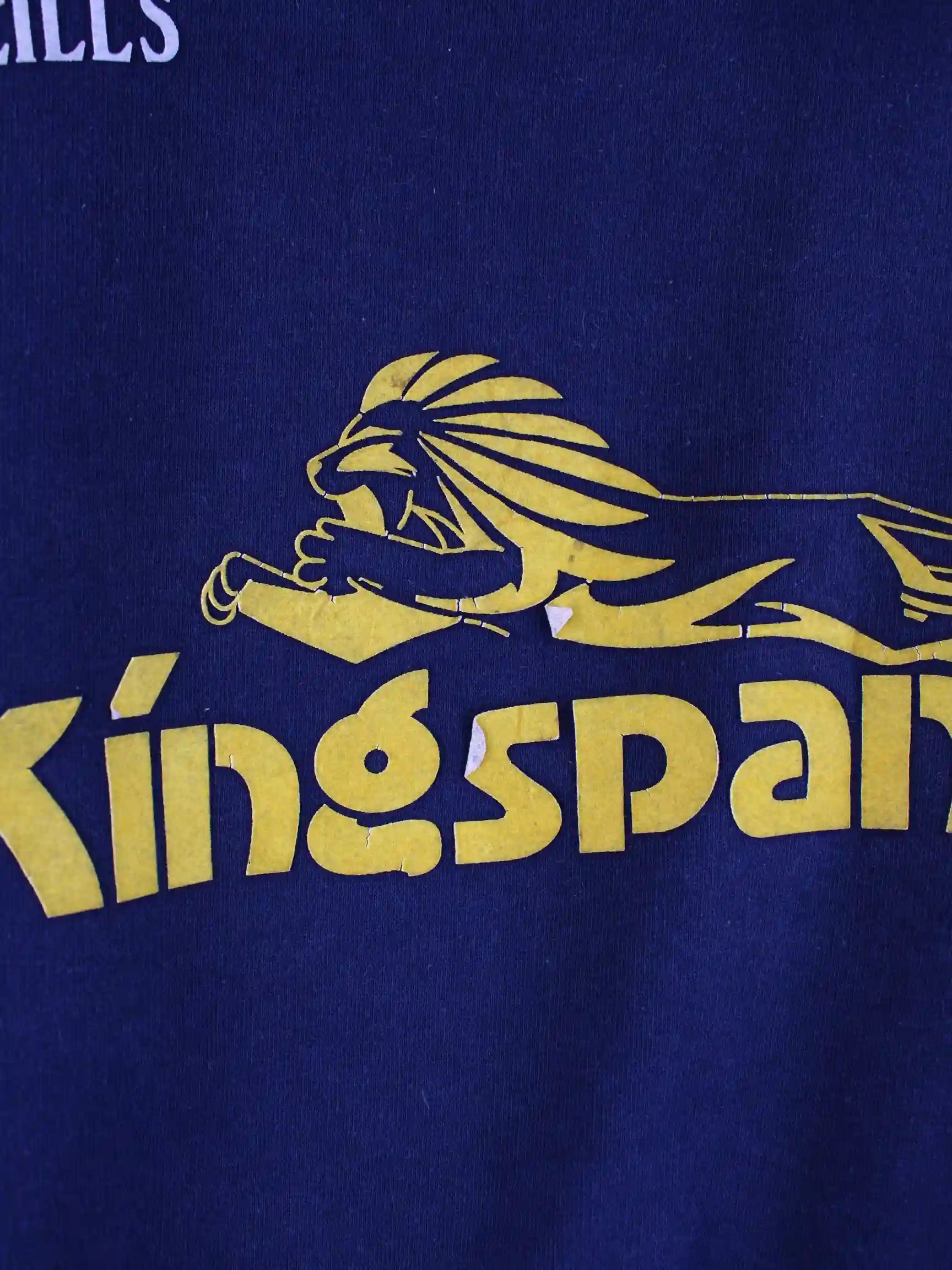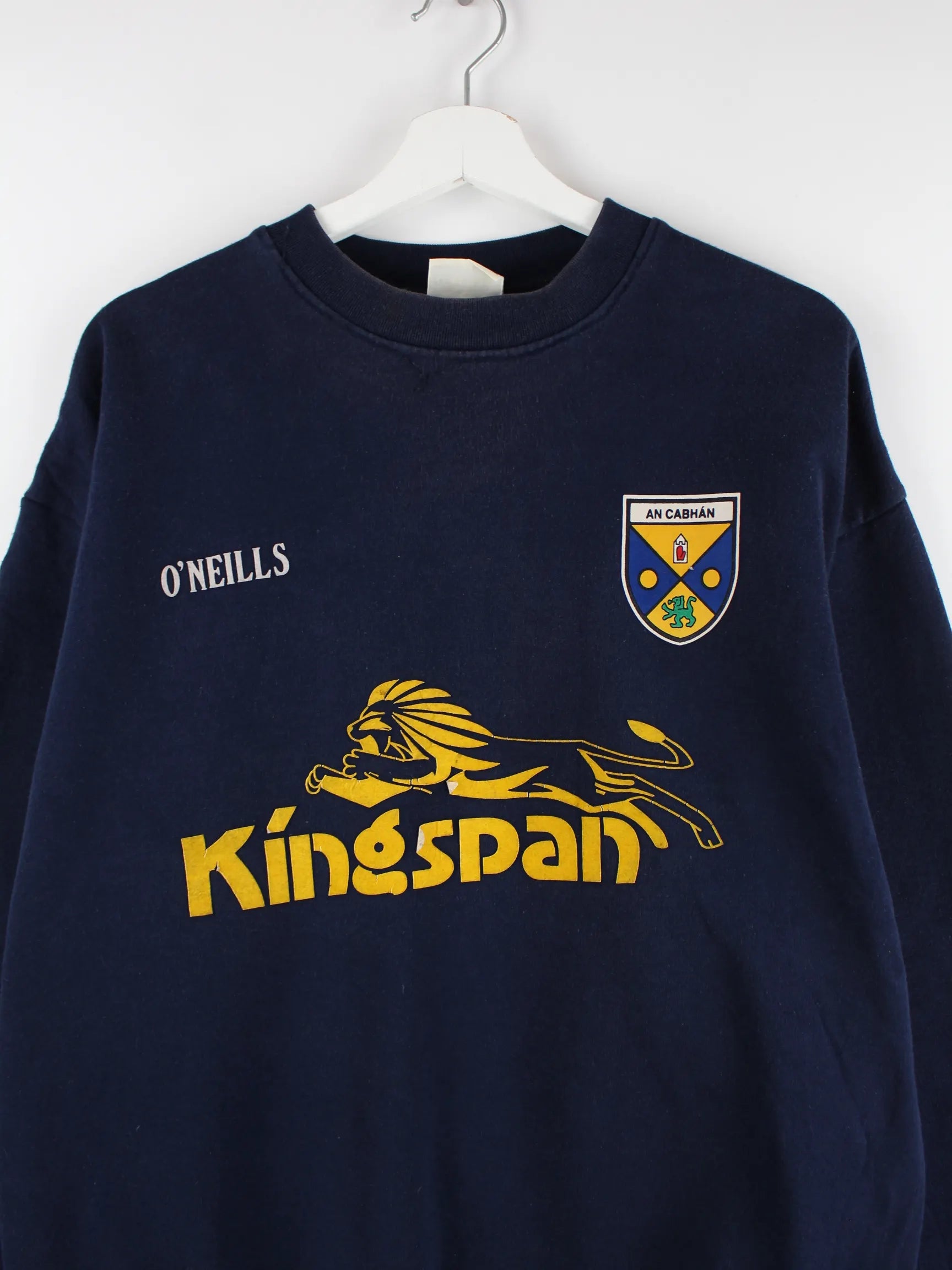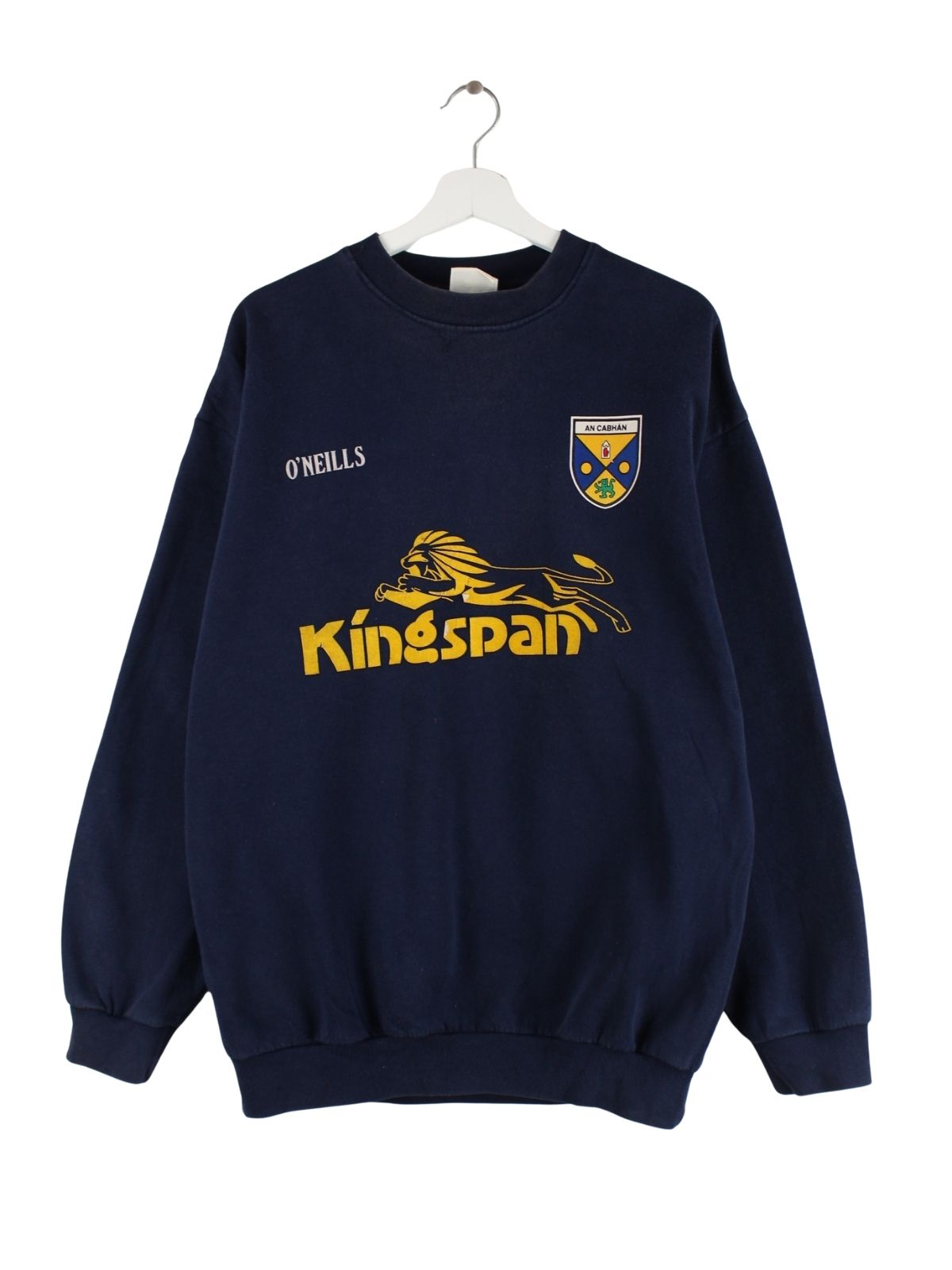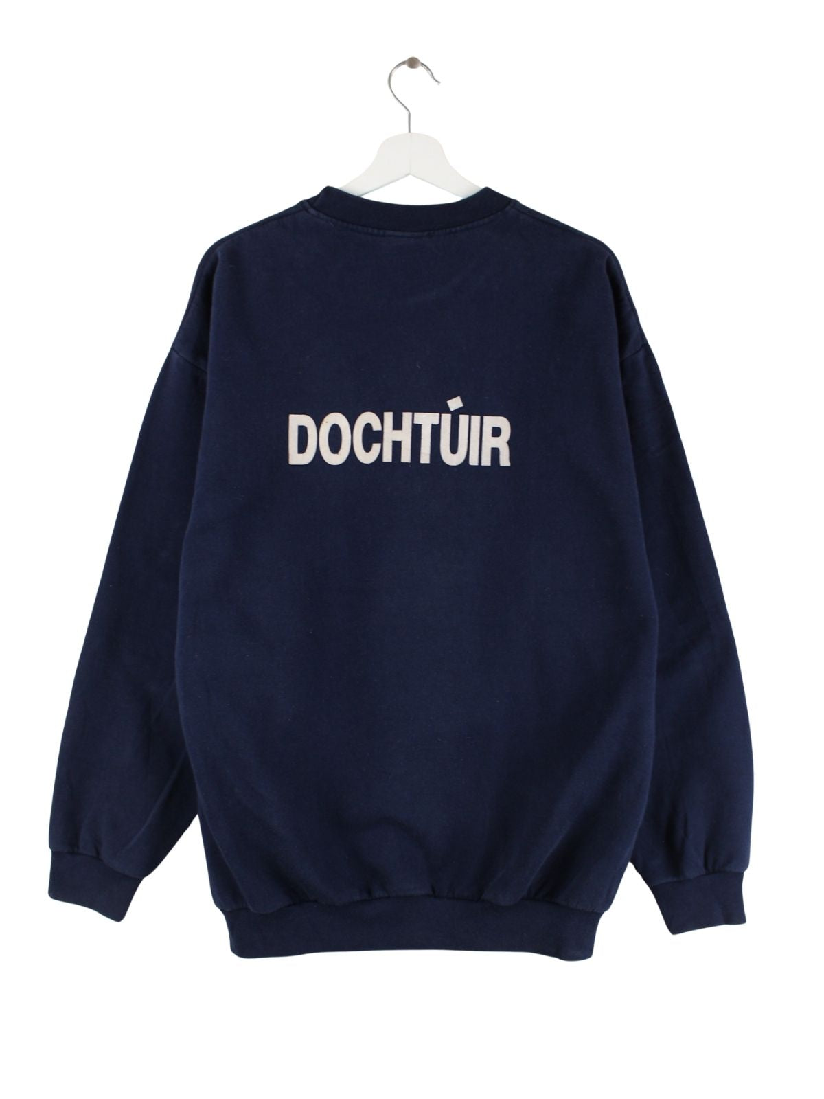 Blauer Vintage Sweater aus den 90'ern in Größe XL. Er ist aus einer Baumwollmischung gemacht und in gutem Zustand auf Lager. Mit schickem 90s Print.