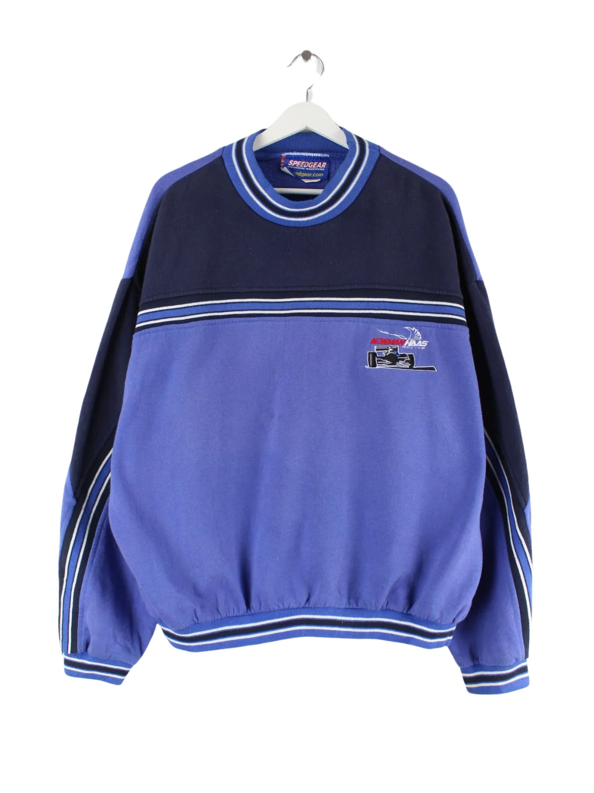 Vintage 90s Racing Embroidered Sweater Blau XXL