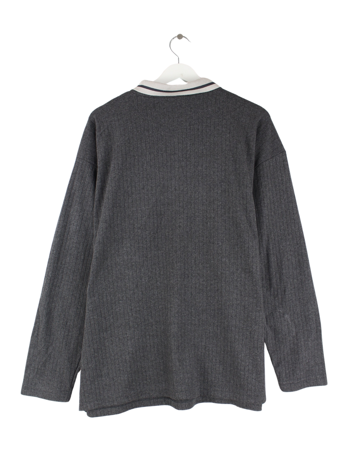 Vintage 90s Ribbed Polo Half Zip Sweater Grau L