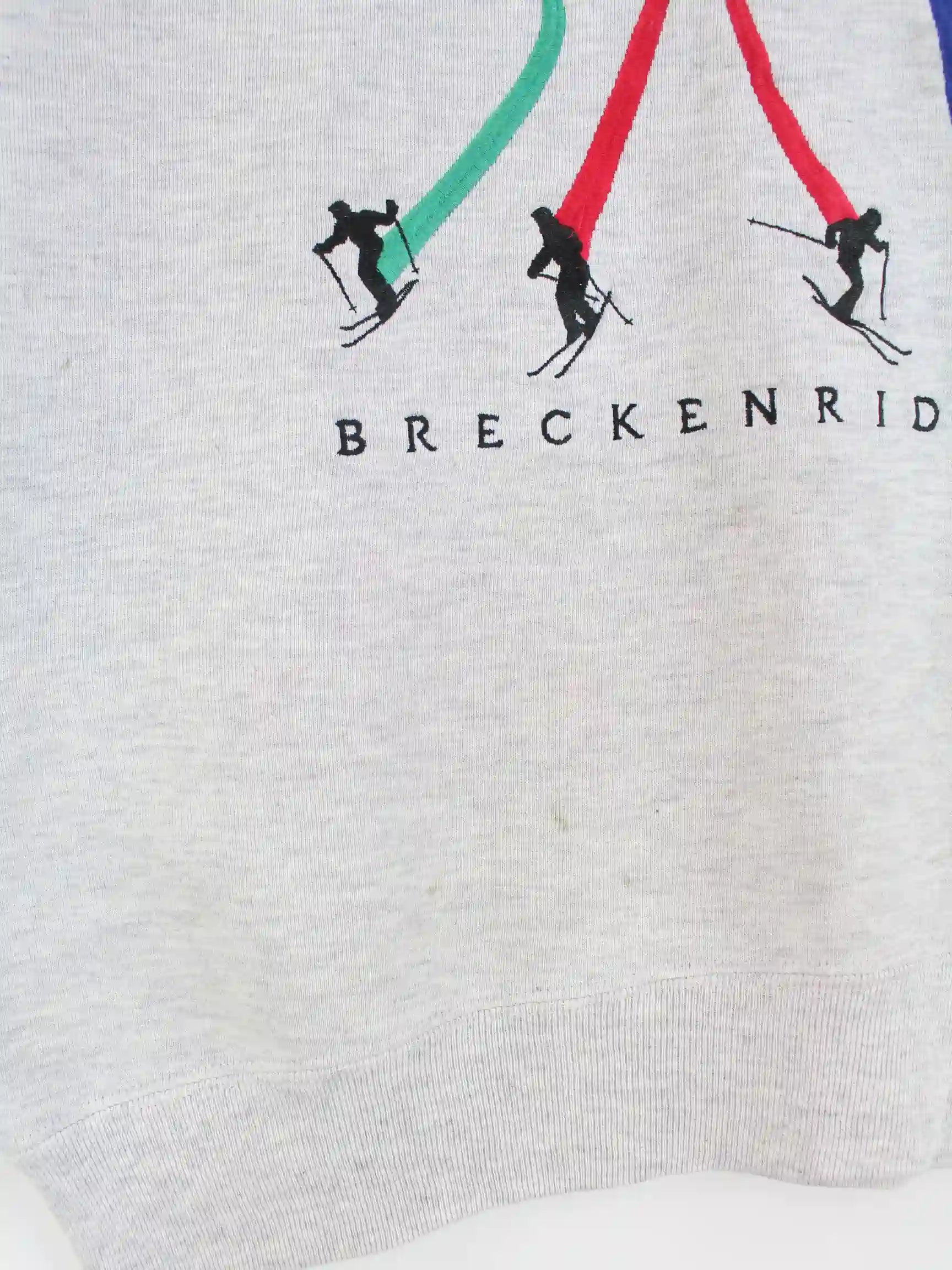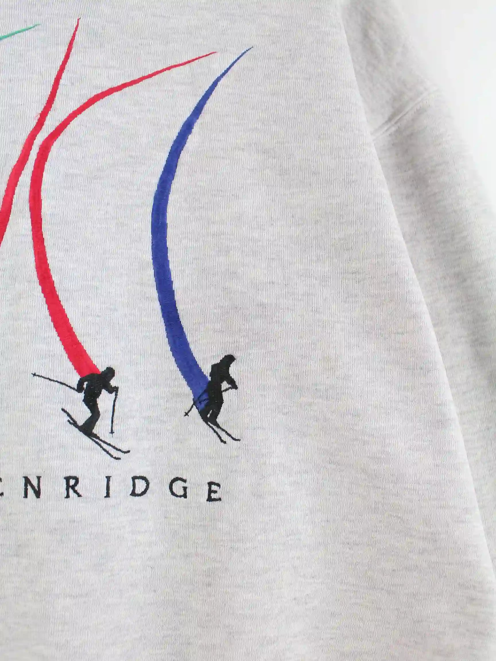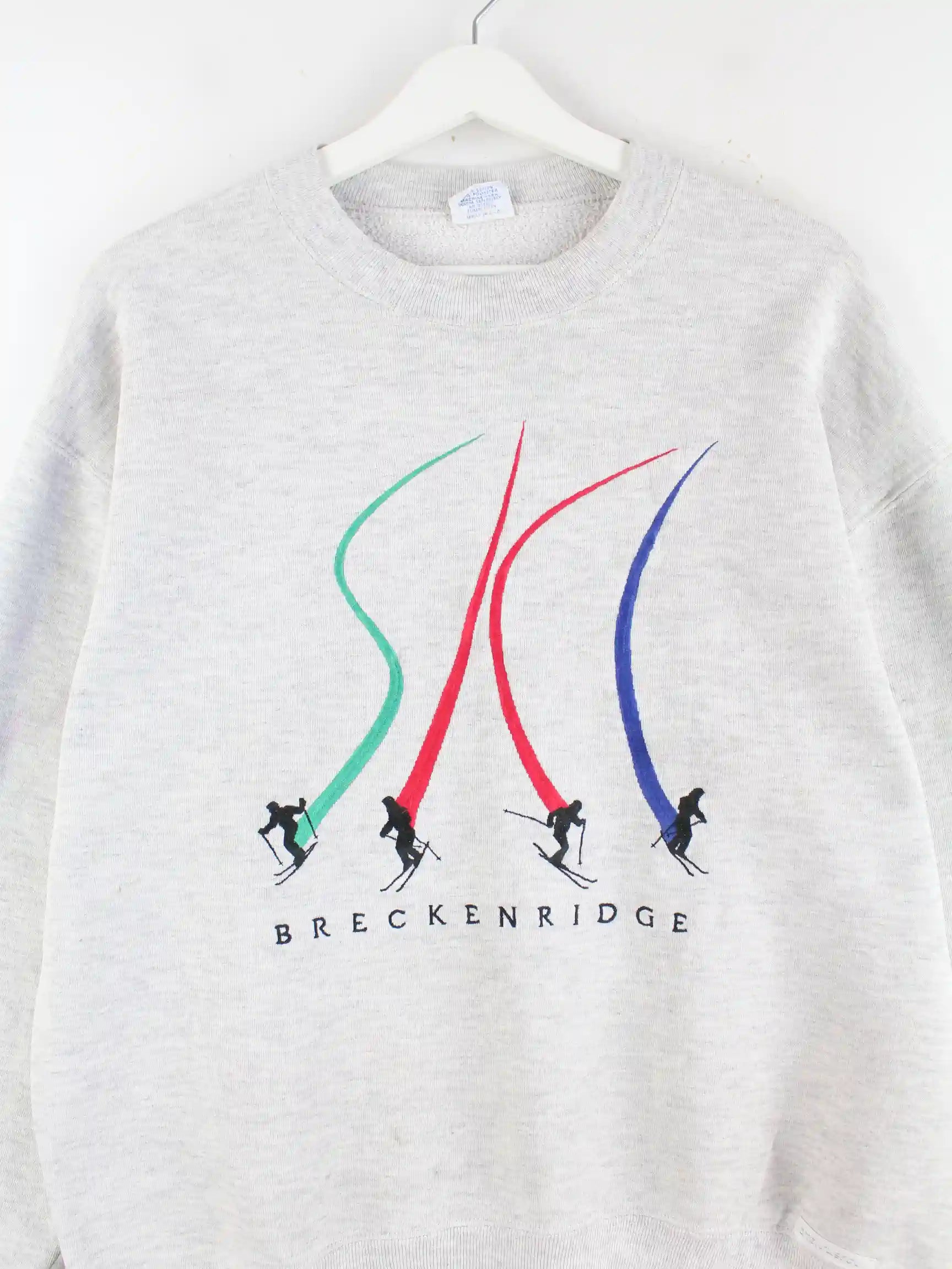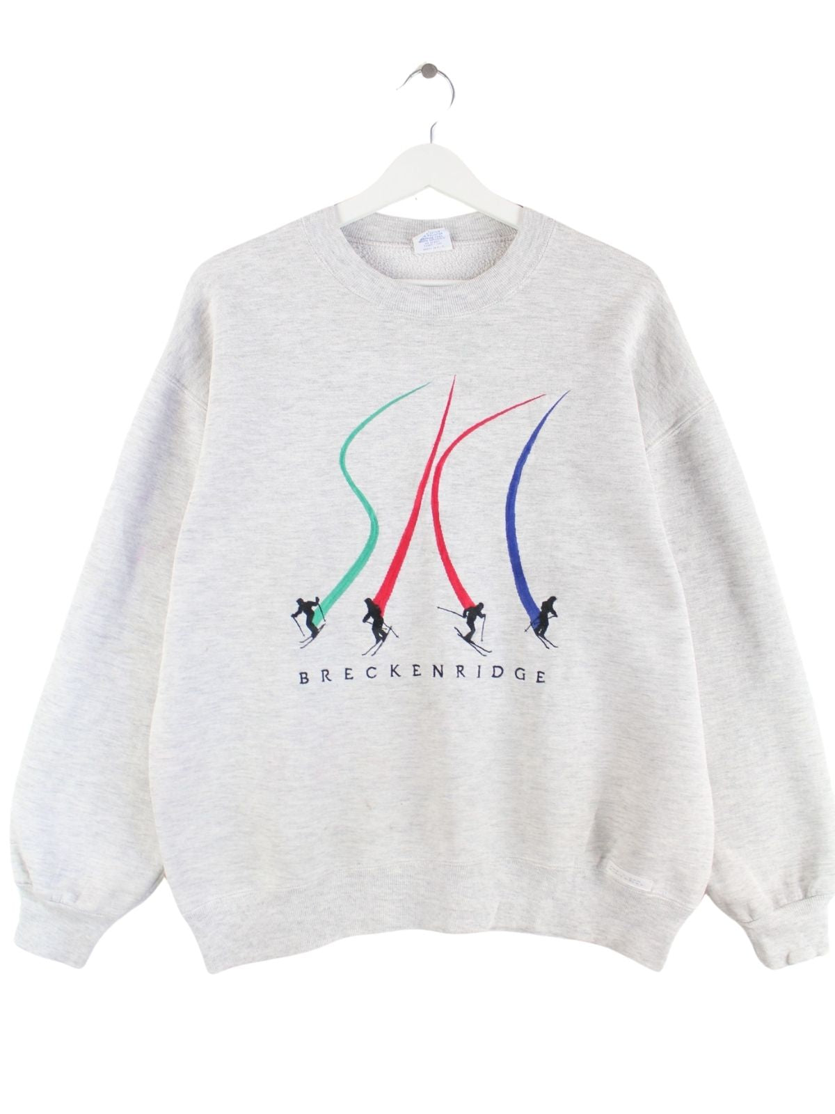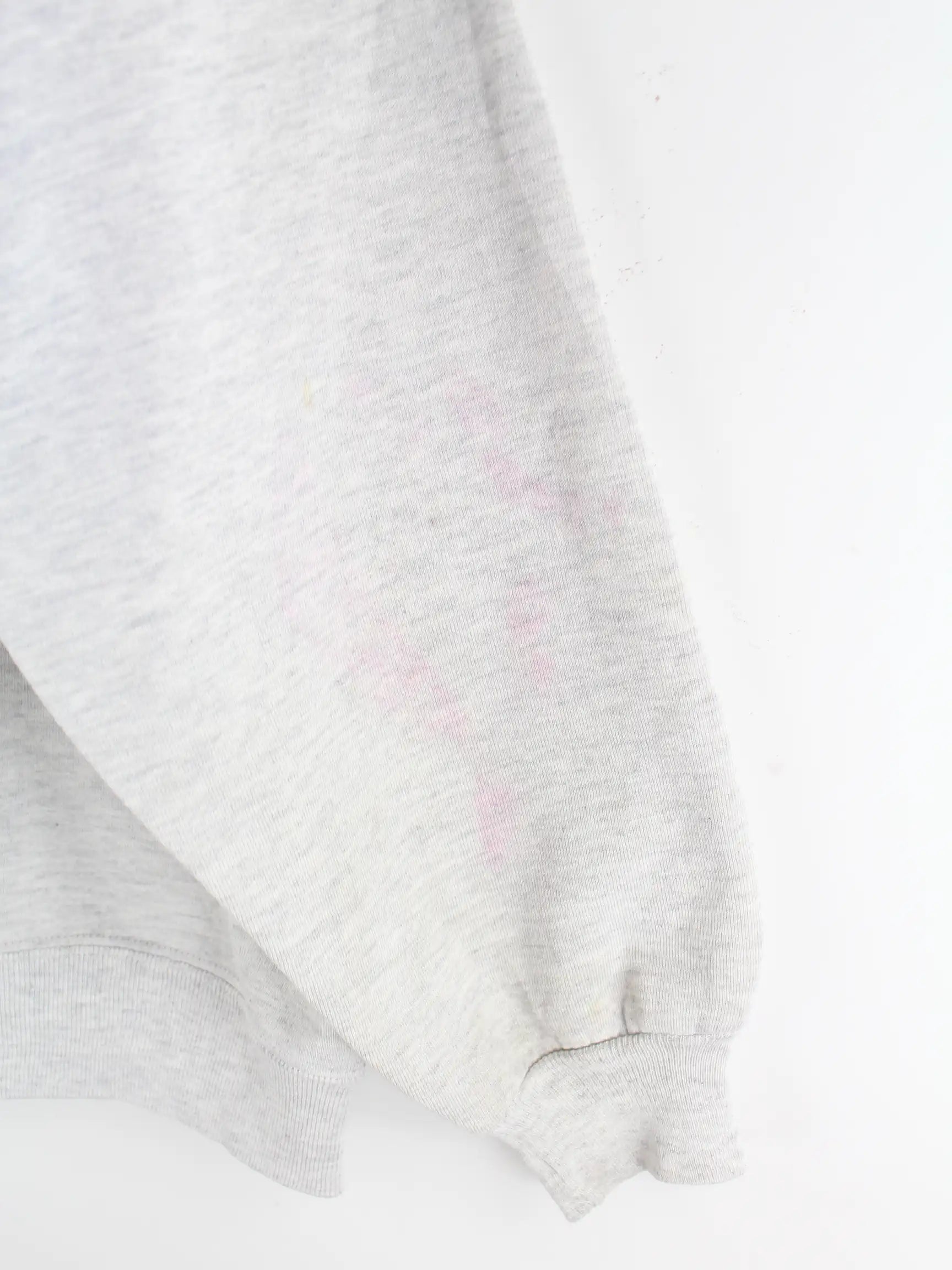 Grauer Vintage Sweater mit Stick aus den 90'ern in Größe M. Er ist aus einer Baumwollmischung gemacht. Den Zustand würden wir als 'In Ordnung' bezeichnen (vergl. Bilder).