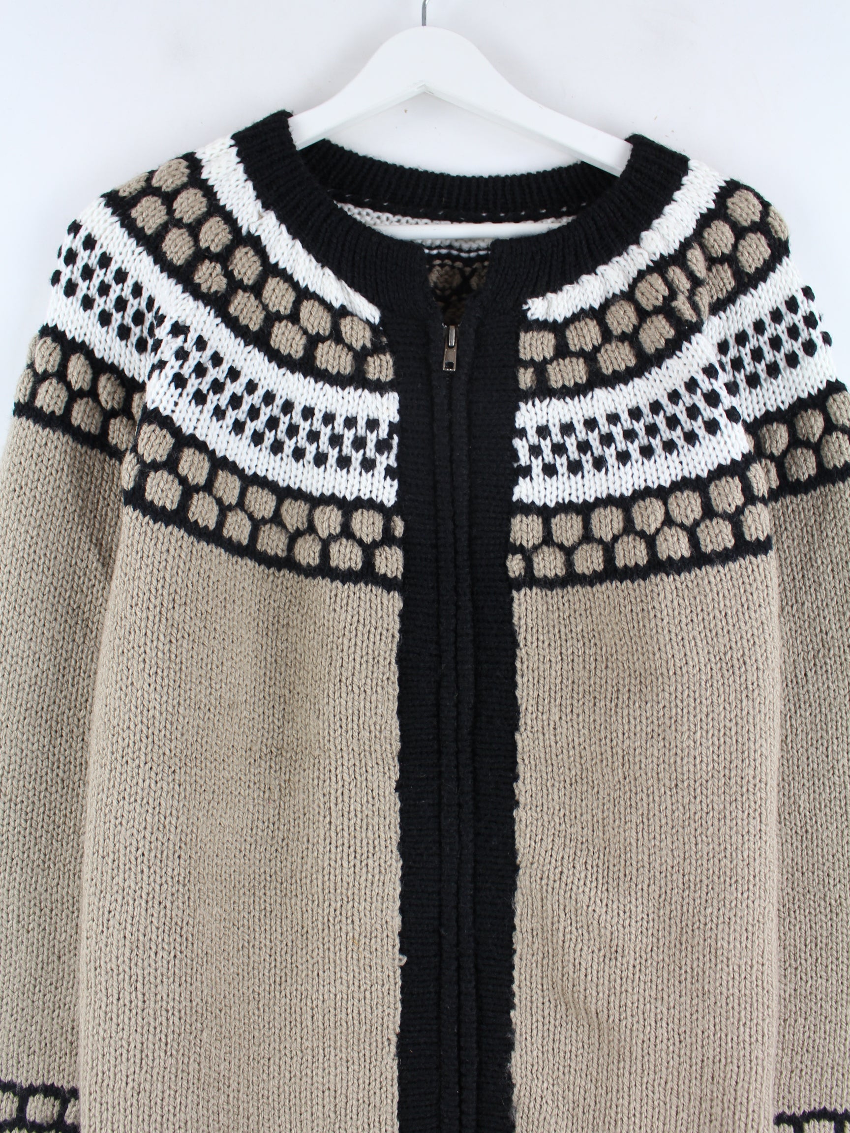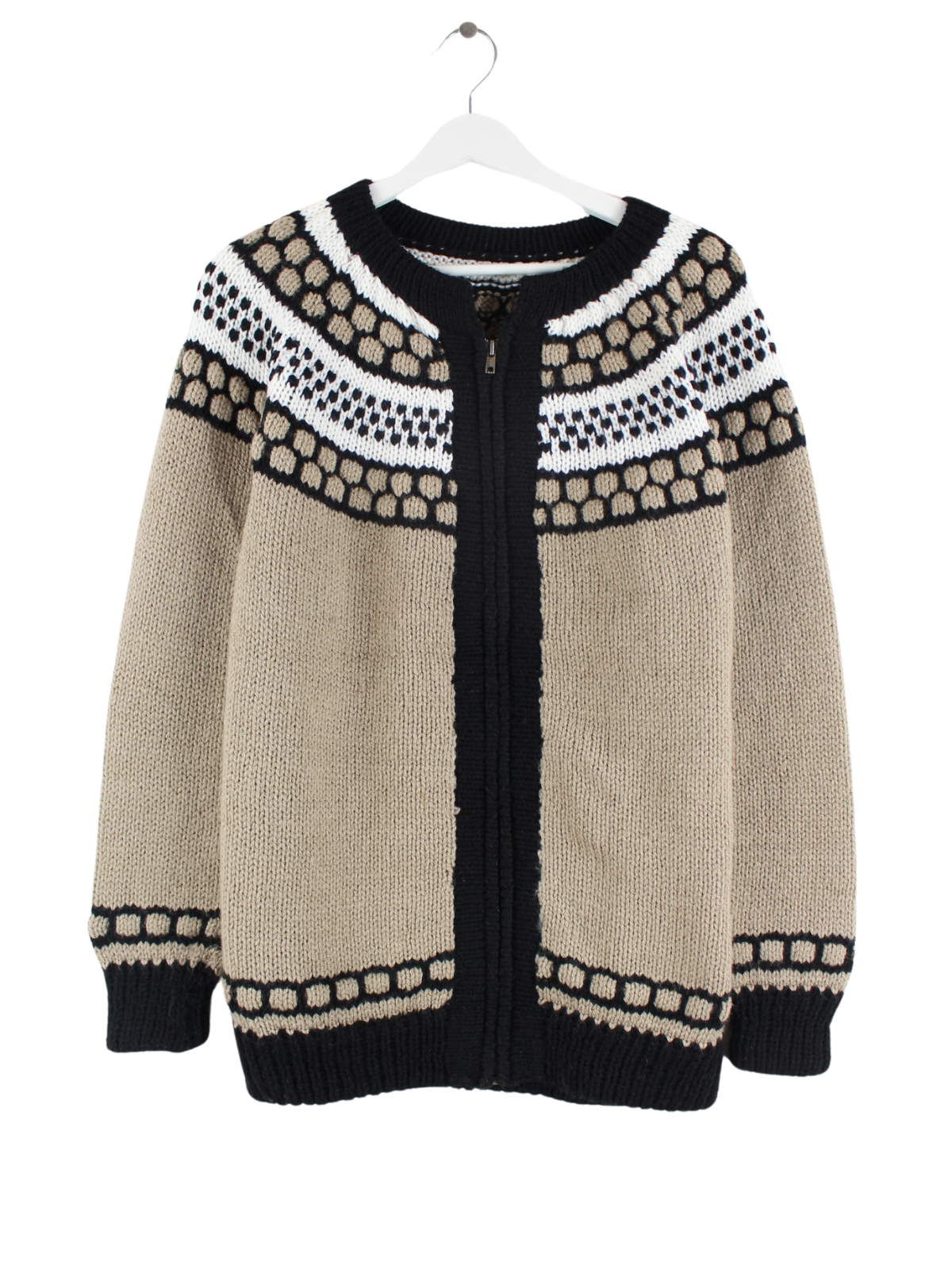 Vintage Strickjacke in Größe M aus den 90'ern. Sie ist aus Wolle angefertigt und in Braun zu haben.