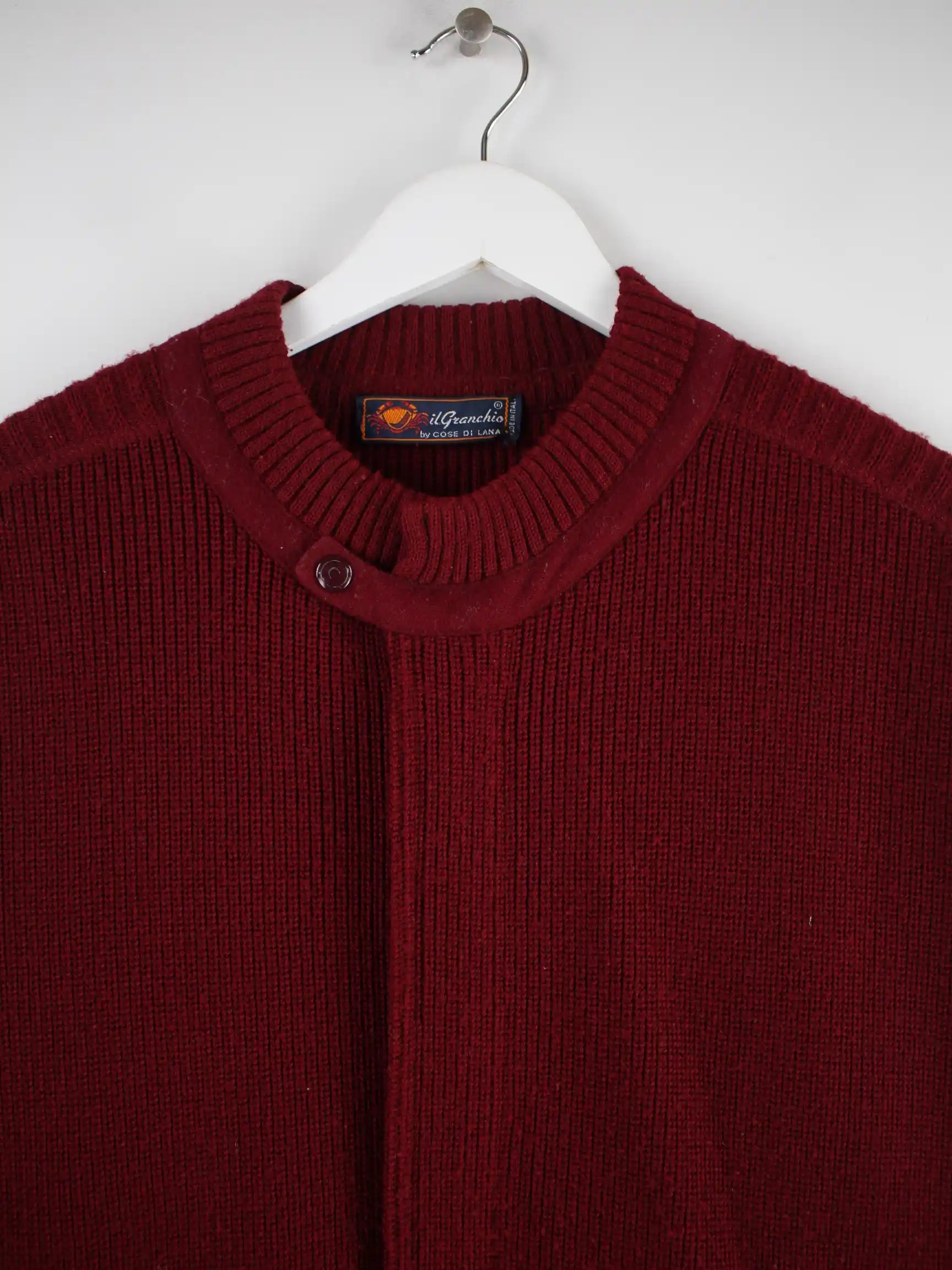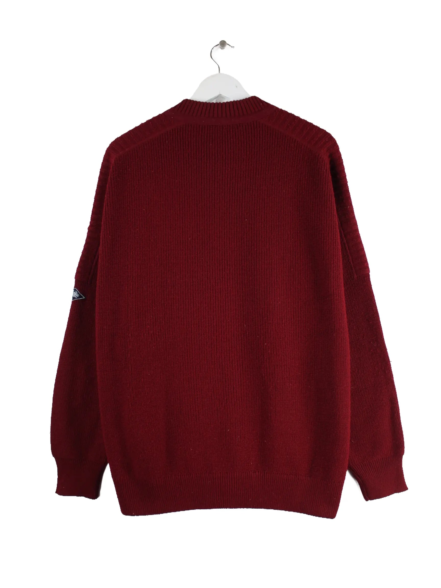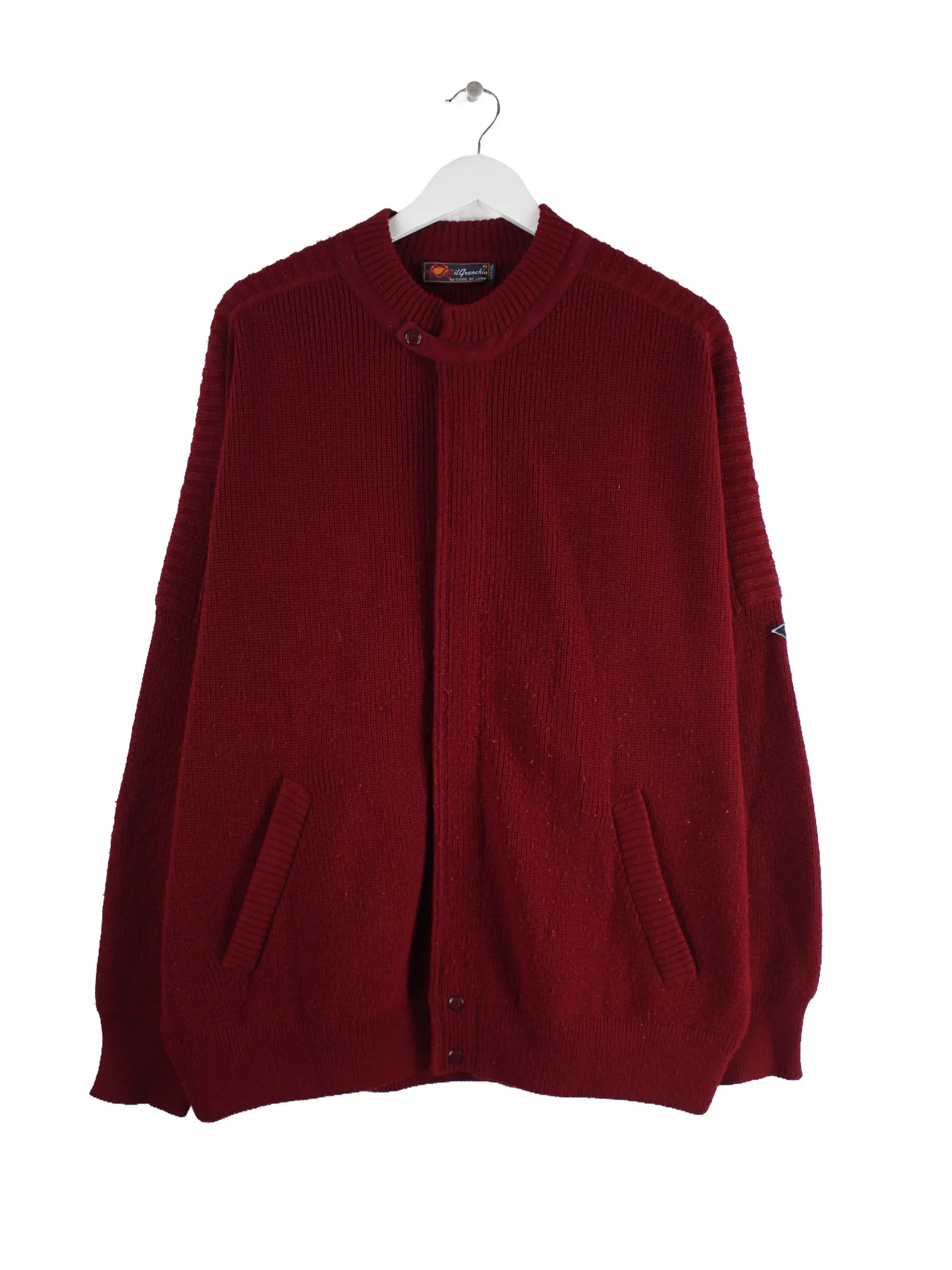 Rote Vintage Strickjacke aus den 90'ern in Größe XL. Sie ist aus Acryl produziert und in gutem Zustand zu haben.