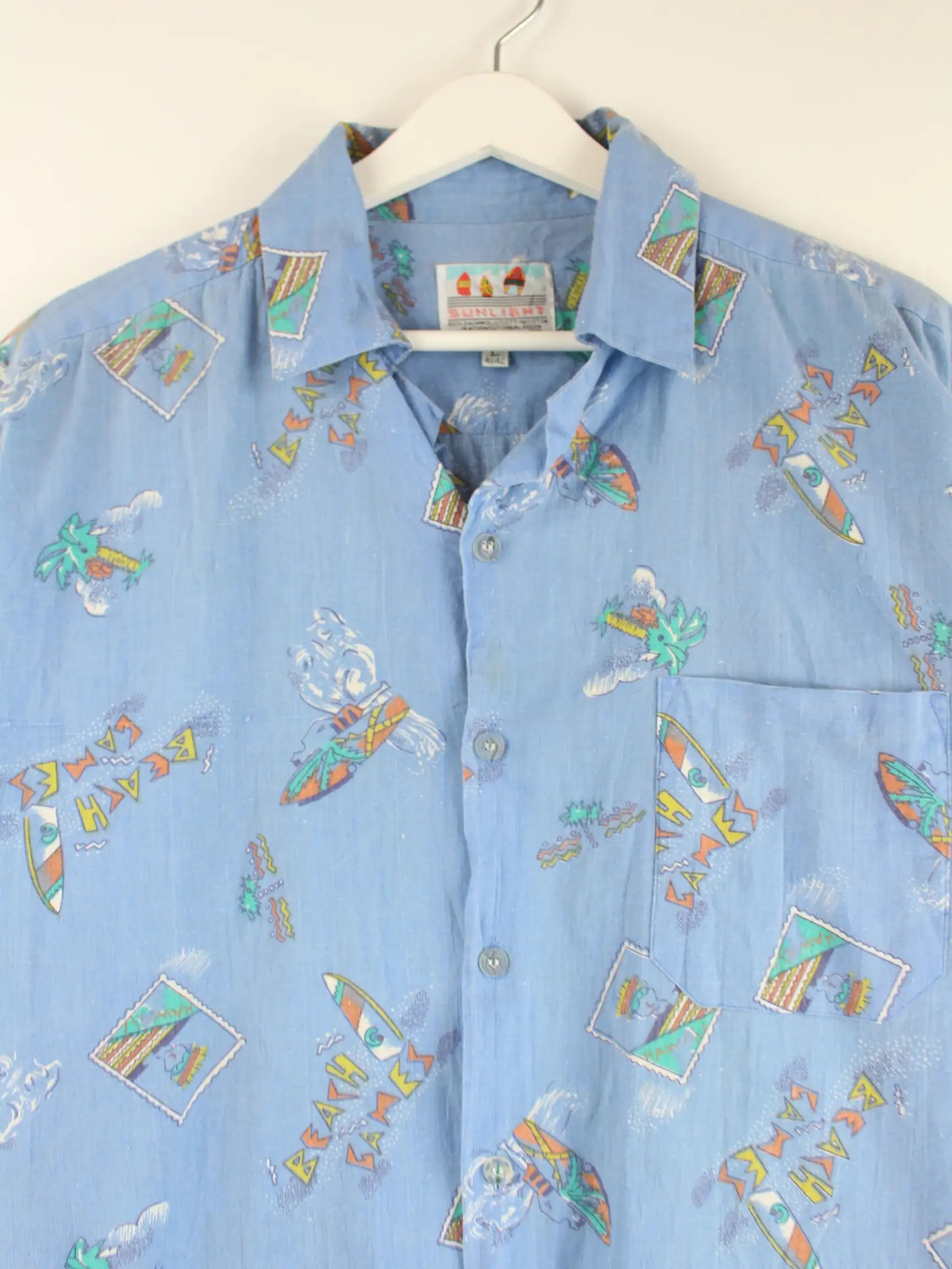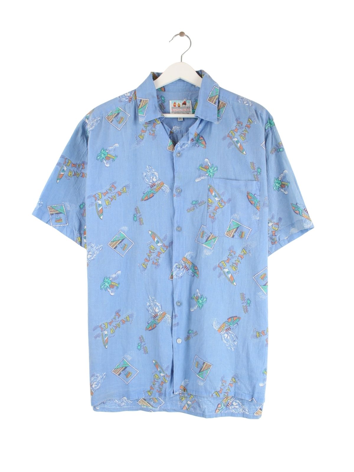 Vintage Freizeit Hemd in Größe L aus den 90'ern. Es ist aus Baumwolle hergestellt und in Blau vorrätig.