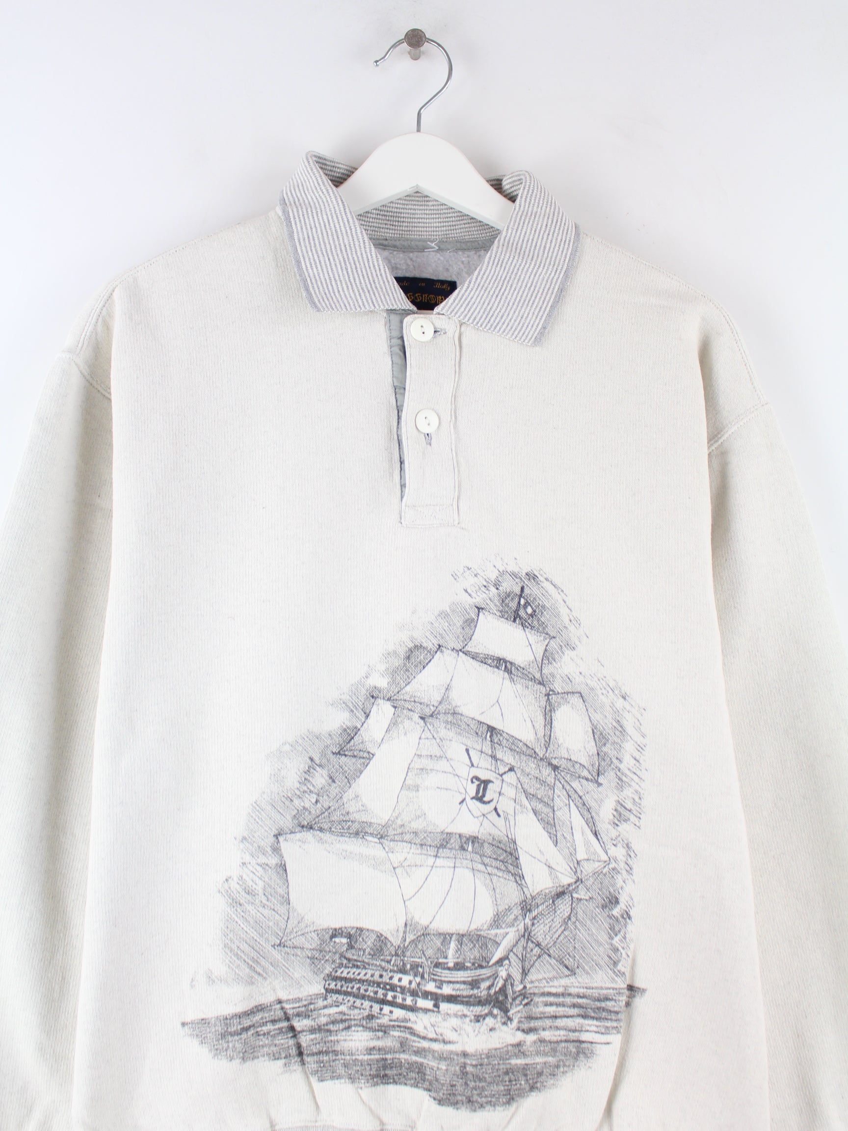 Grey vintage sweater from the 90's in size XL. It is made of a cotton blend and is in very good condition.