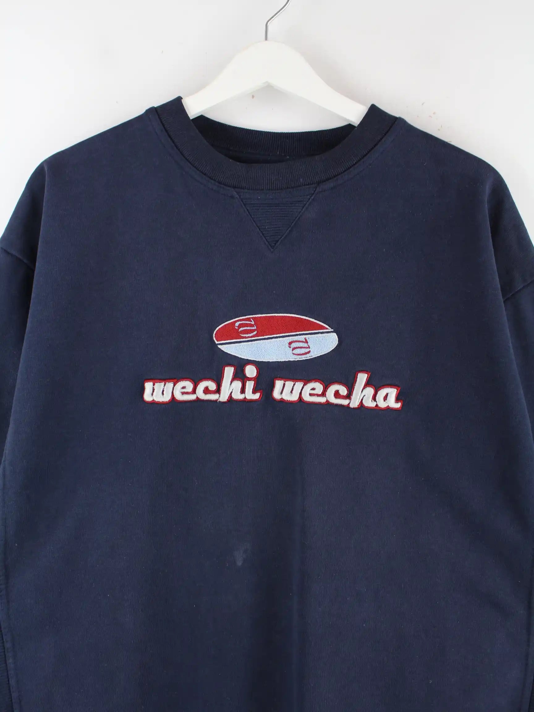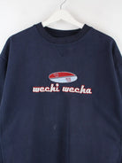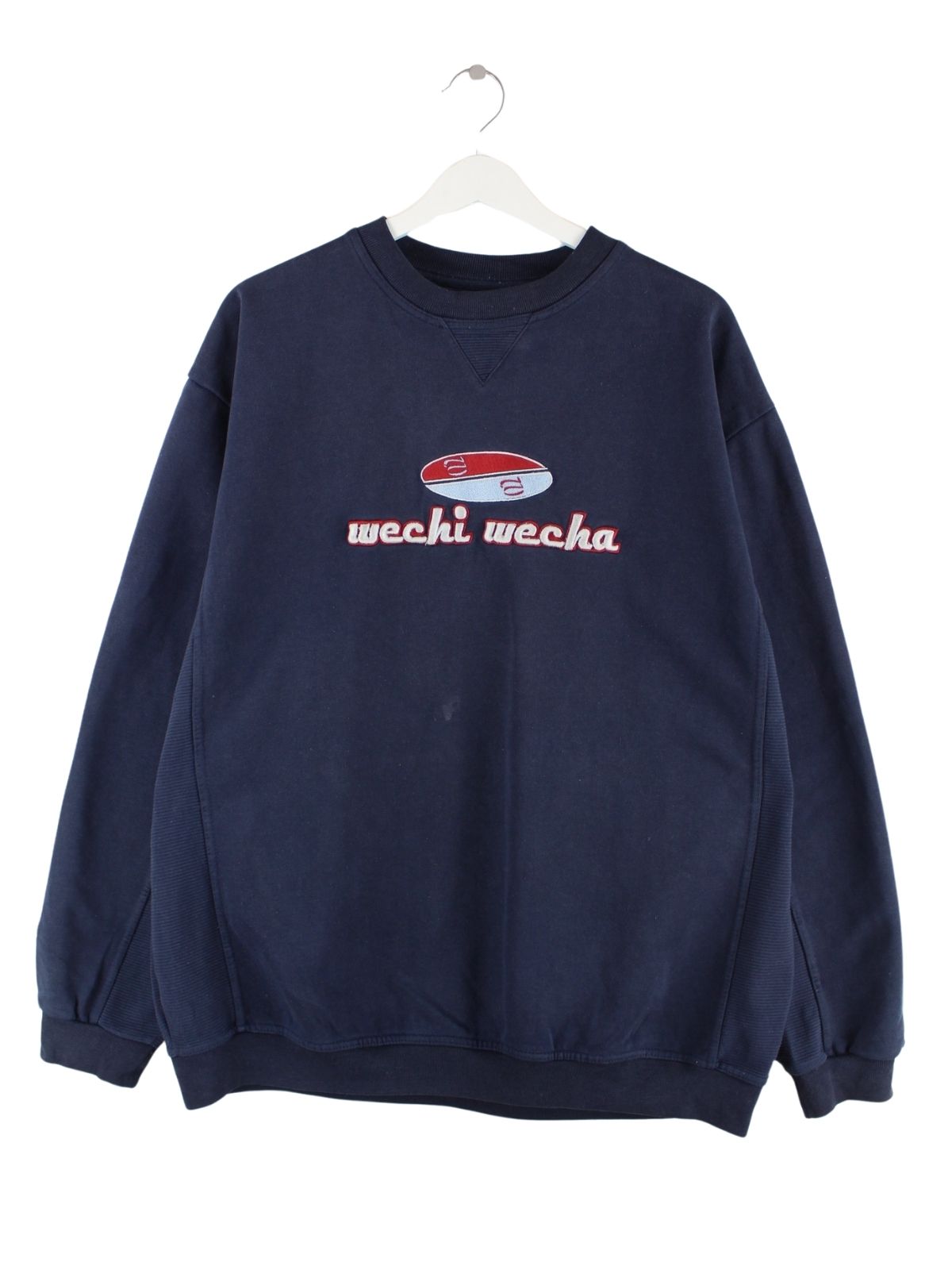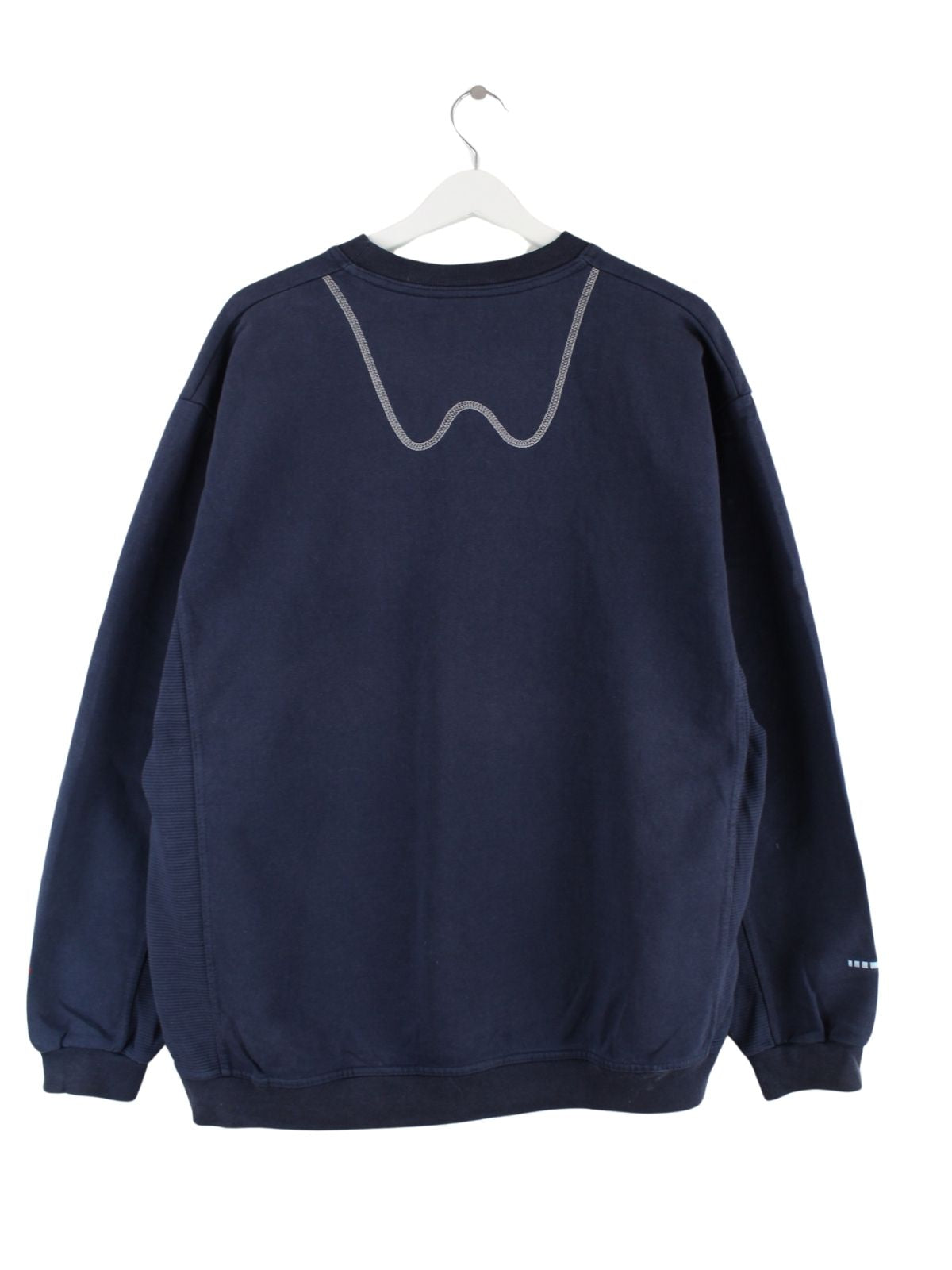 Vintage Sweater mit gesticktem Logo in Größe XXL aus den 90'ern. Er ist aus einer Baumwollmischung angefertigt und in Blau im Angebot.