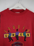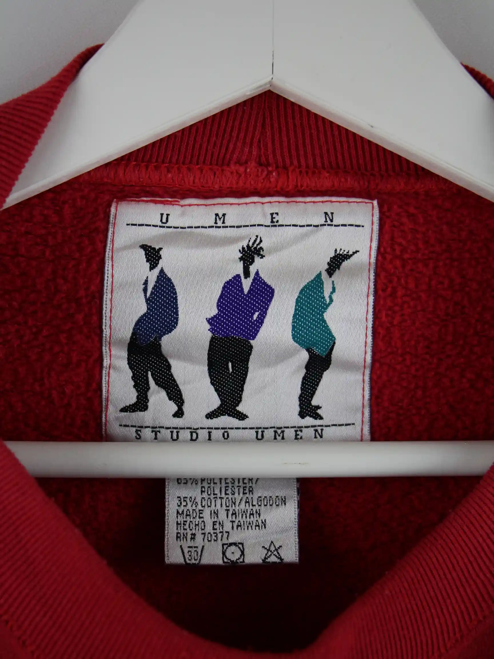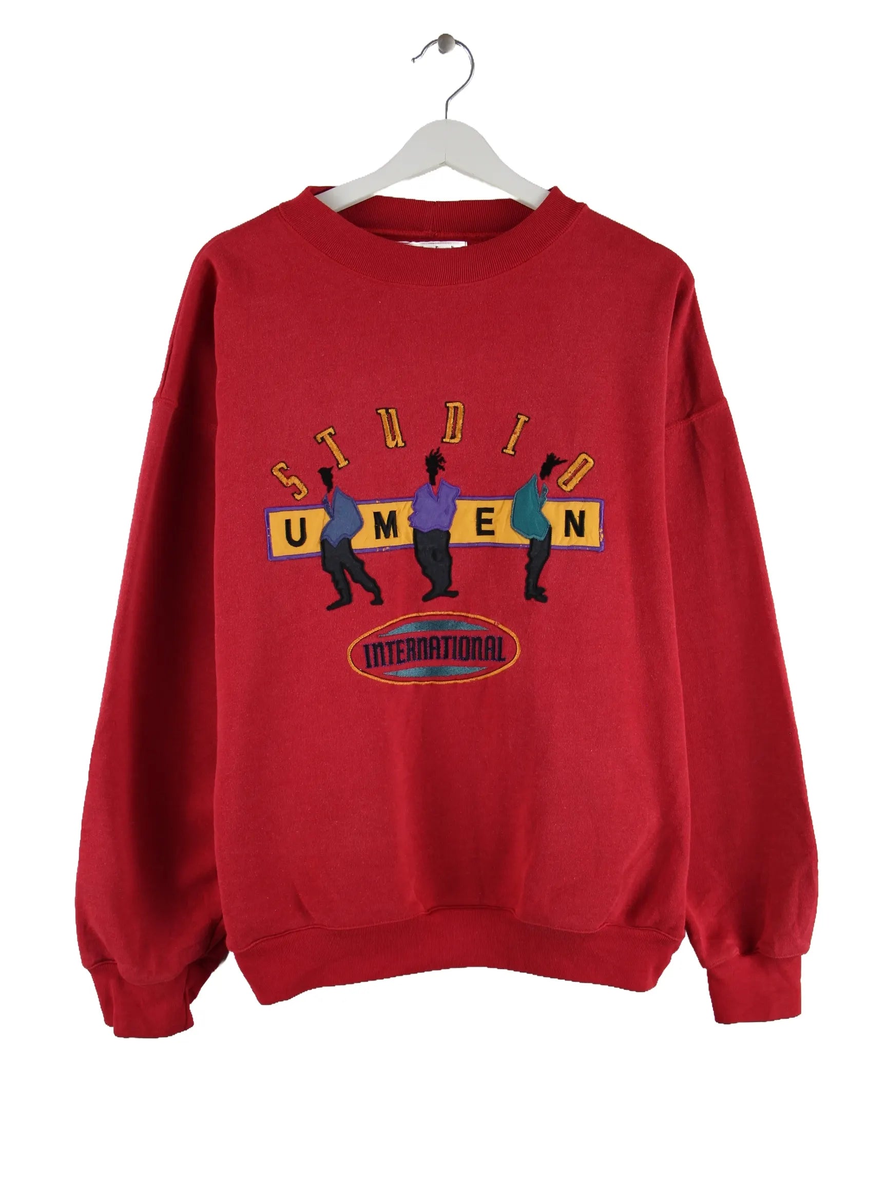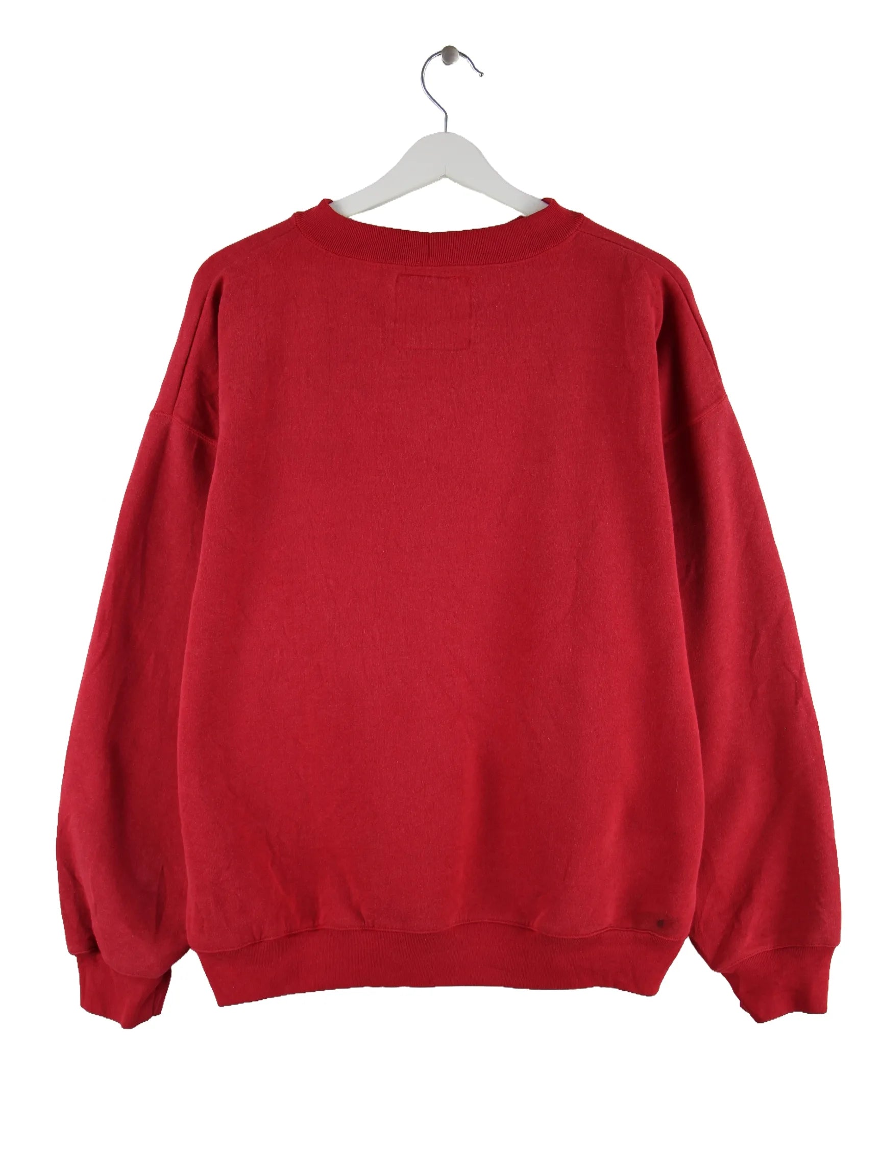 Vintage Sweater in Größe XL aus den 90'ern. Er ist aus einer Baumwollmischung hergestellt und in Rot lieferbar.