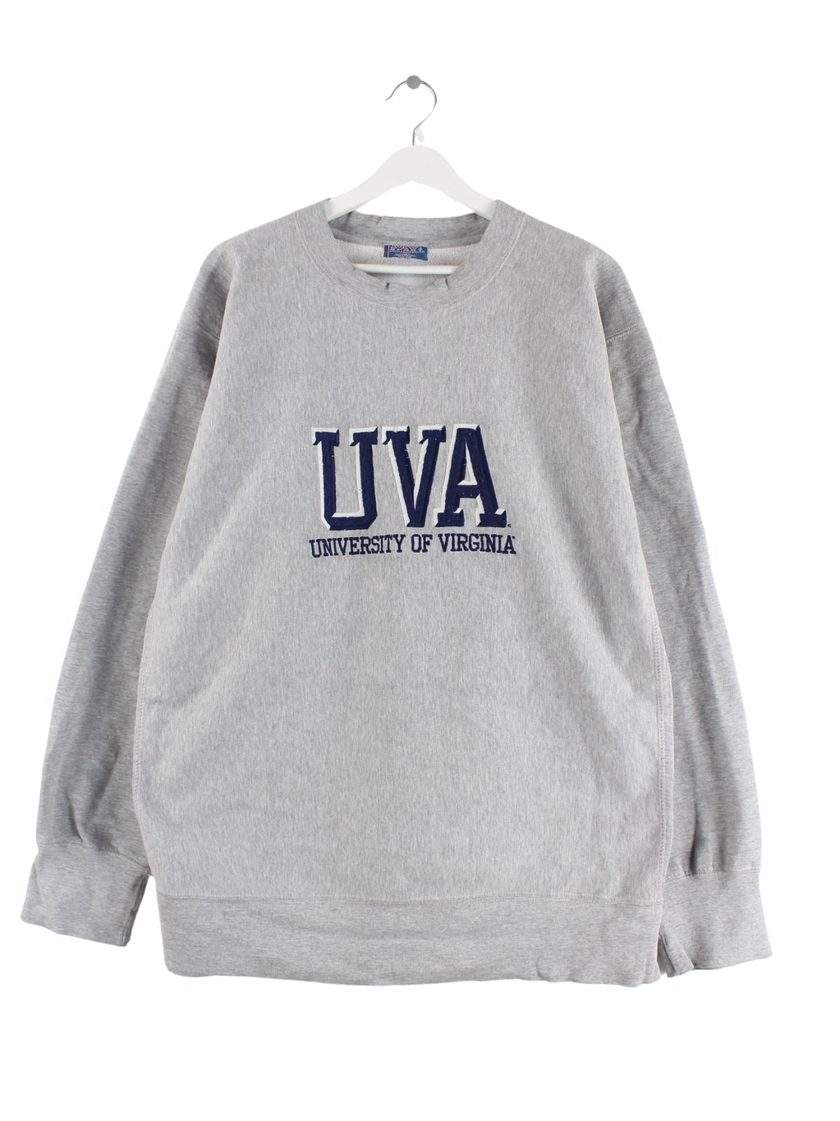 Vintage 90s University Virgina Embroidered Sweater Grau 3XL