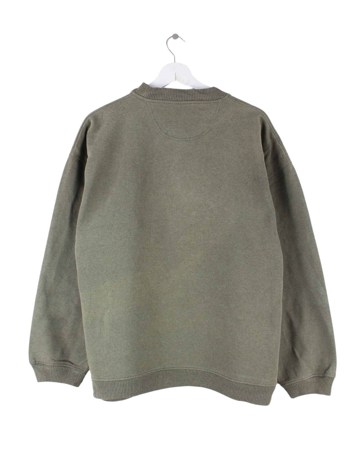 Vintage Sweater mit gestickten Motiven in Größe M aus den 90'ern. Er ist aus einer Baumwollmischung angefertigt und in Grün im Bestand.