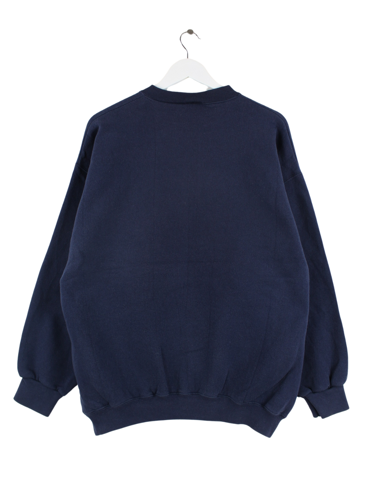 Blauer Vintage Sweater mit gesticktem Logo aus den 90'ern in Größe L. Er ist aus einer Baumwollmischung hergestellt und in sehr gutem Zustand zu bekommen.