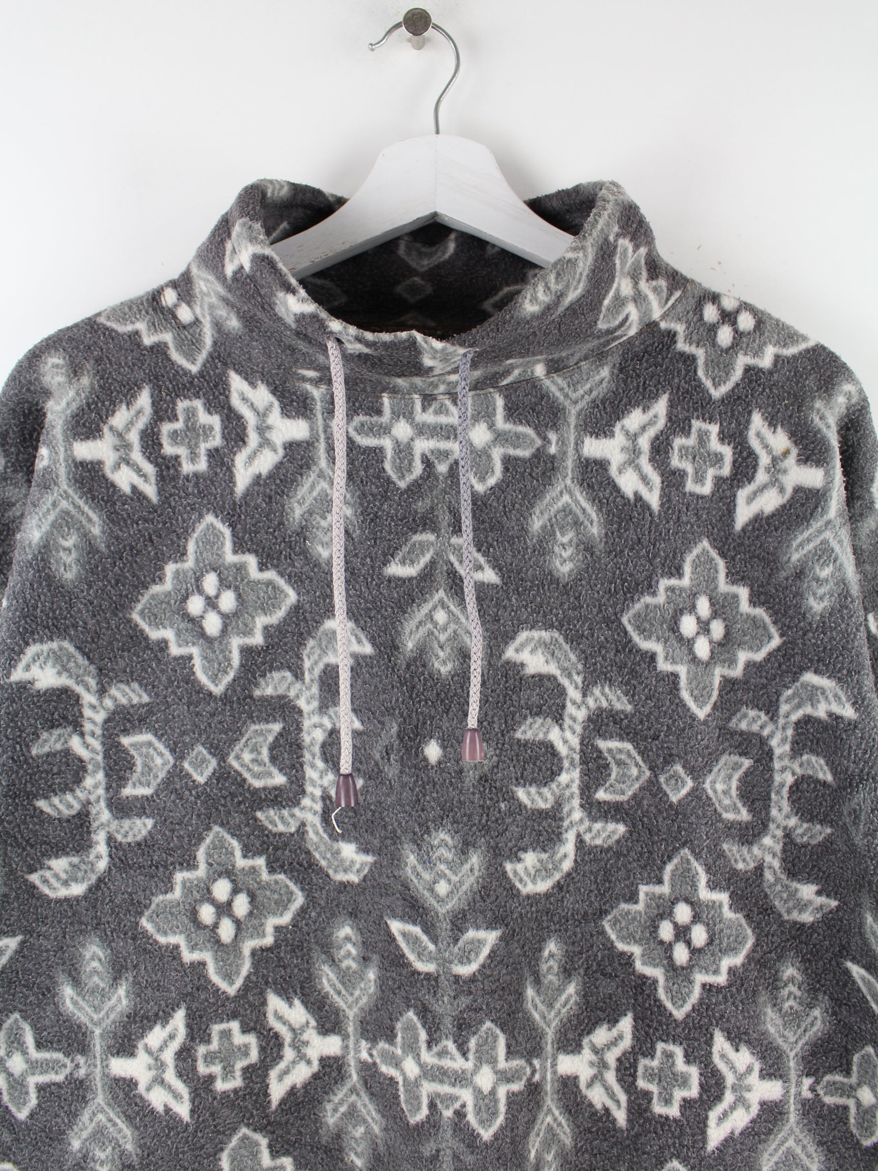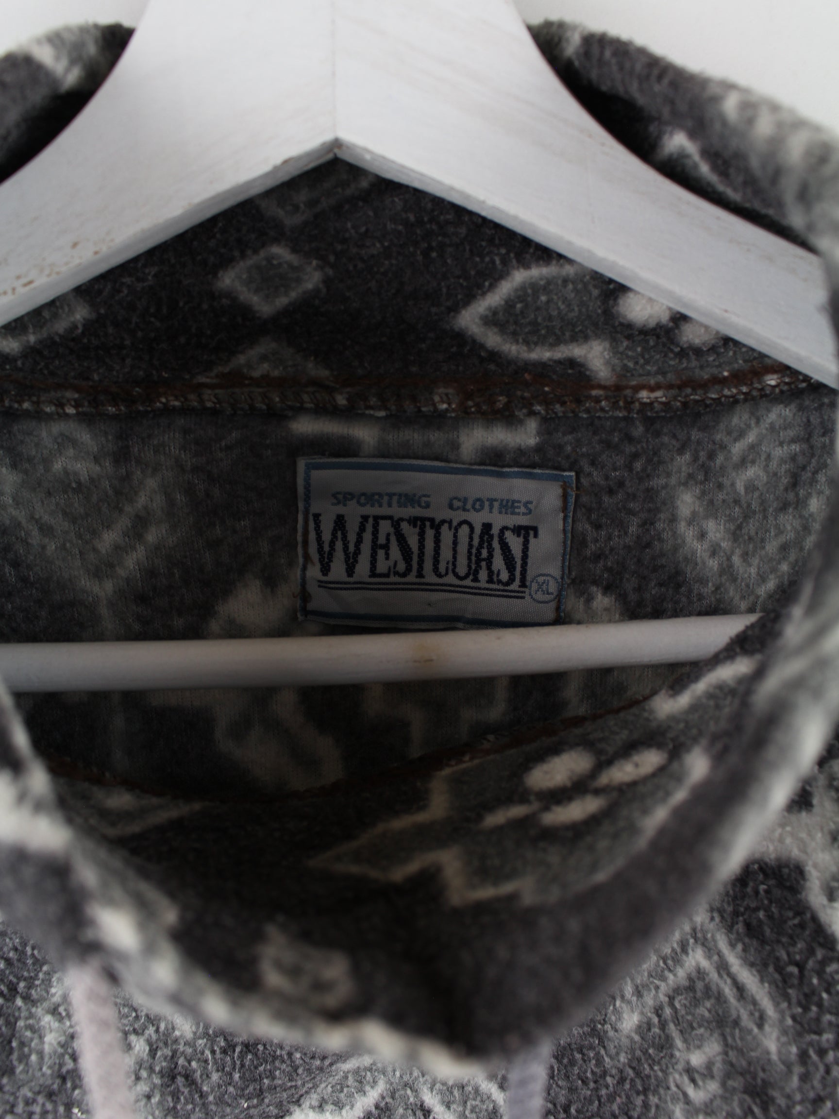 Vintage 90s Westcoast Crazy Pattern Fleece Sweater Grau XL