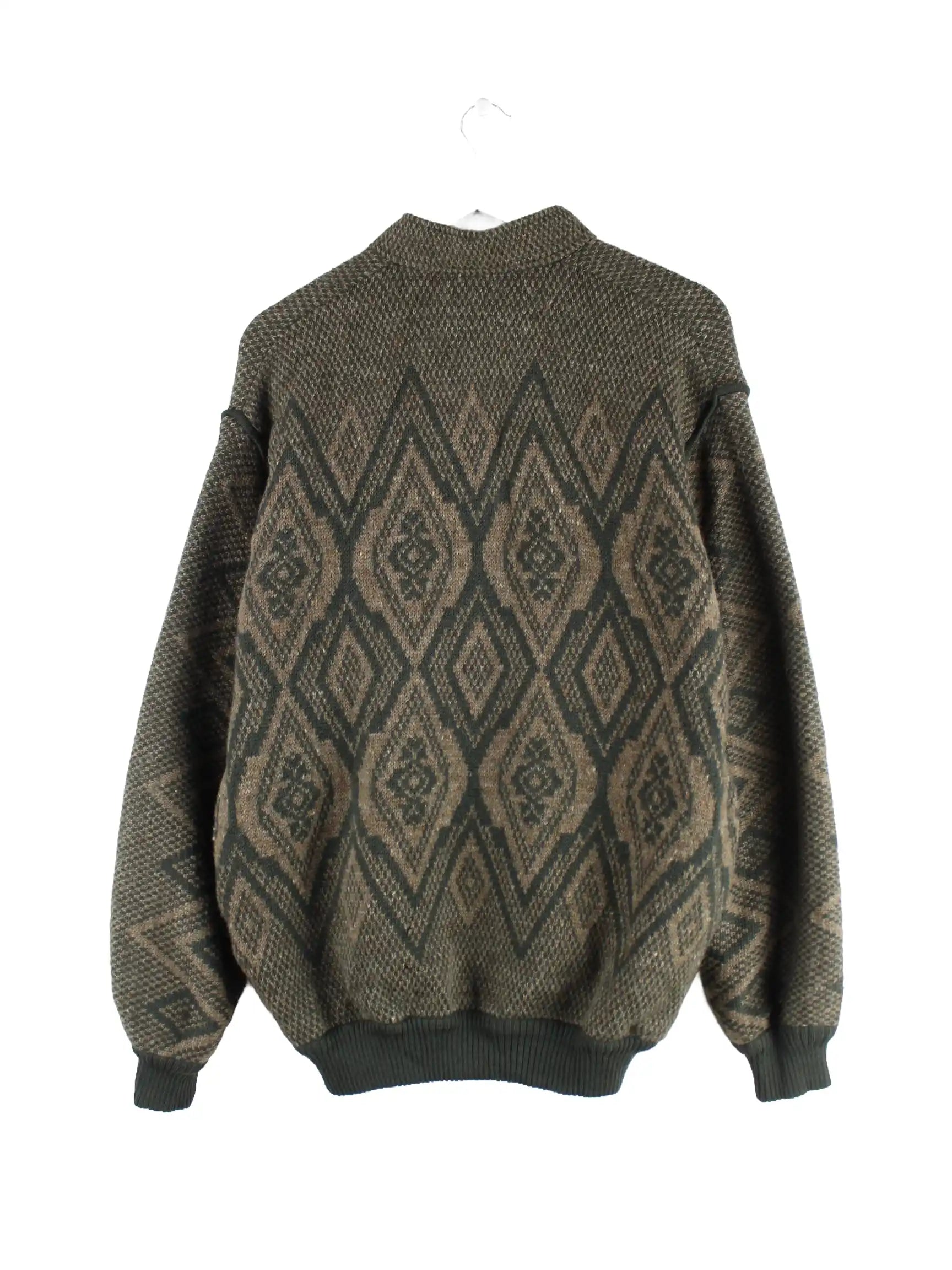 Grüne Vintage Strickjacke aus den 90'ern in Größe L. Sie ist aus Wolle hergestellt und in gutem Zustand auf Lager.