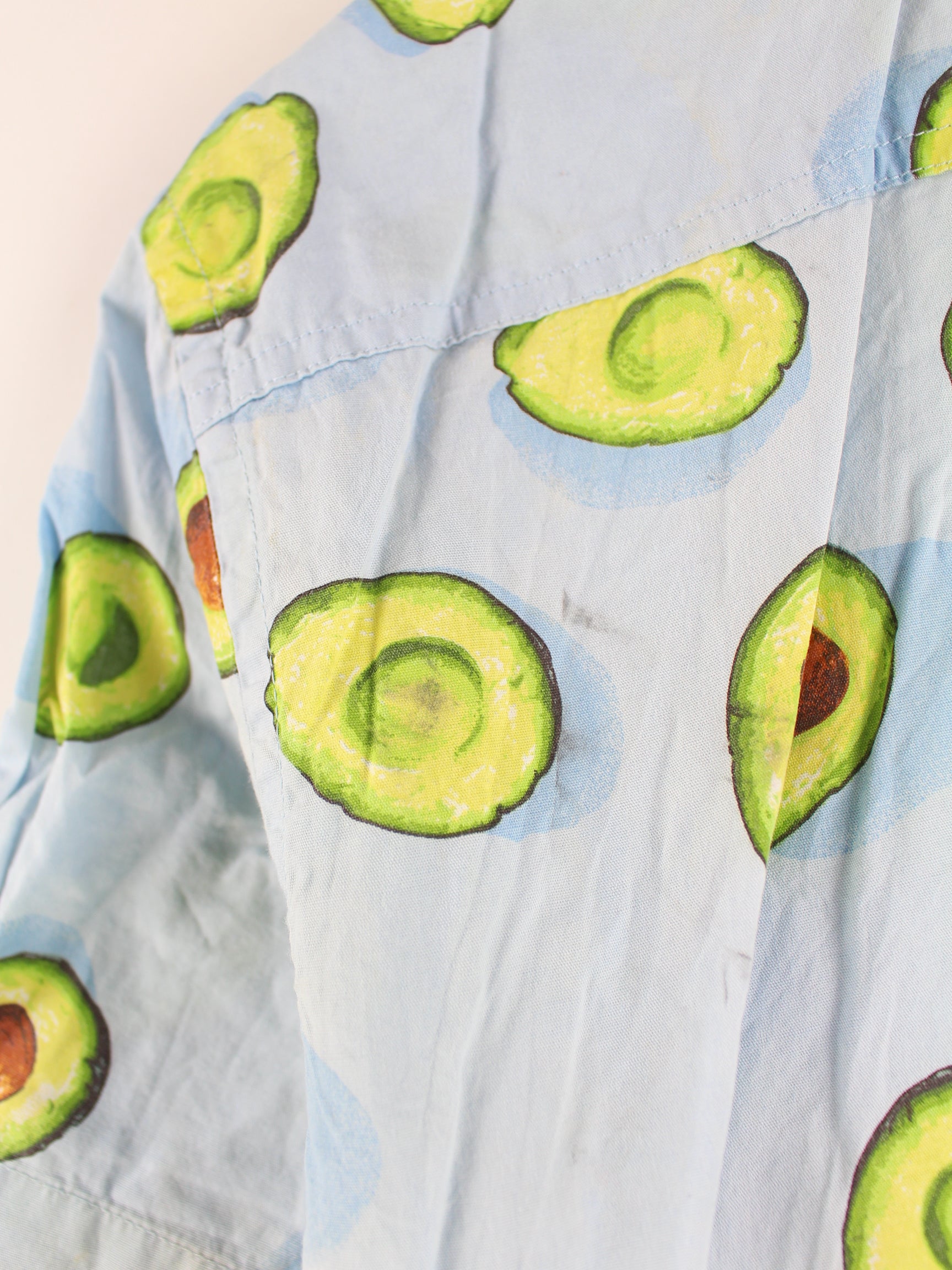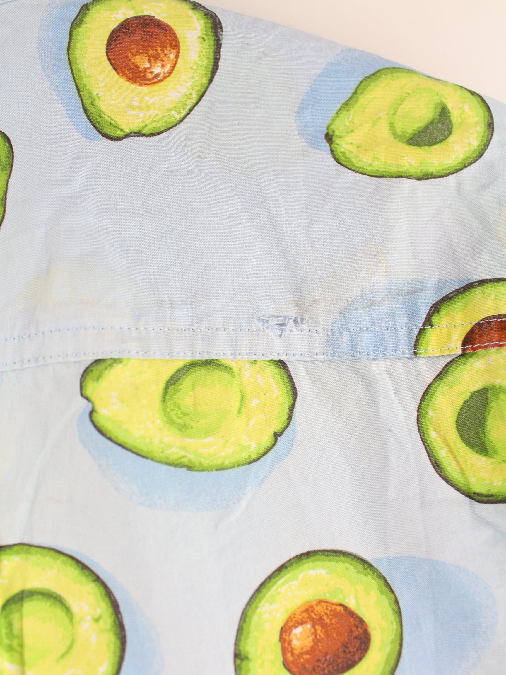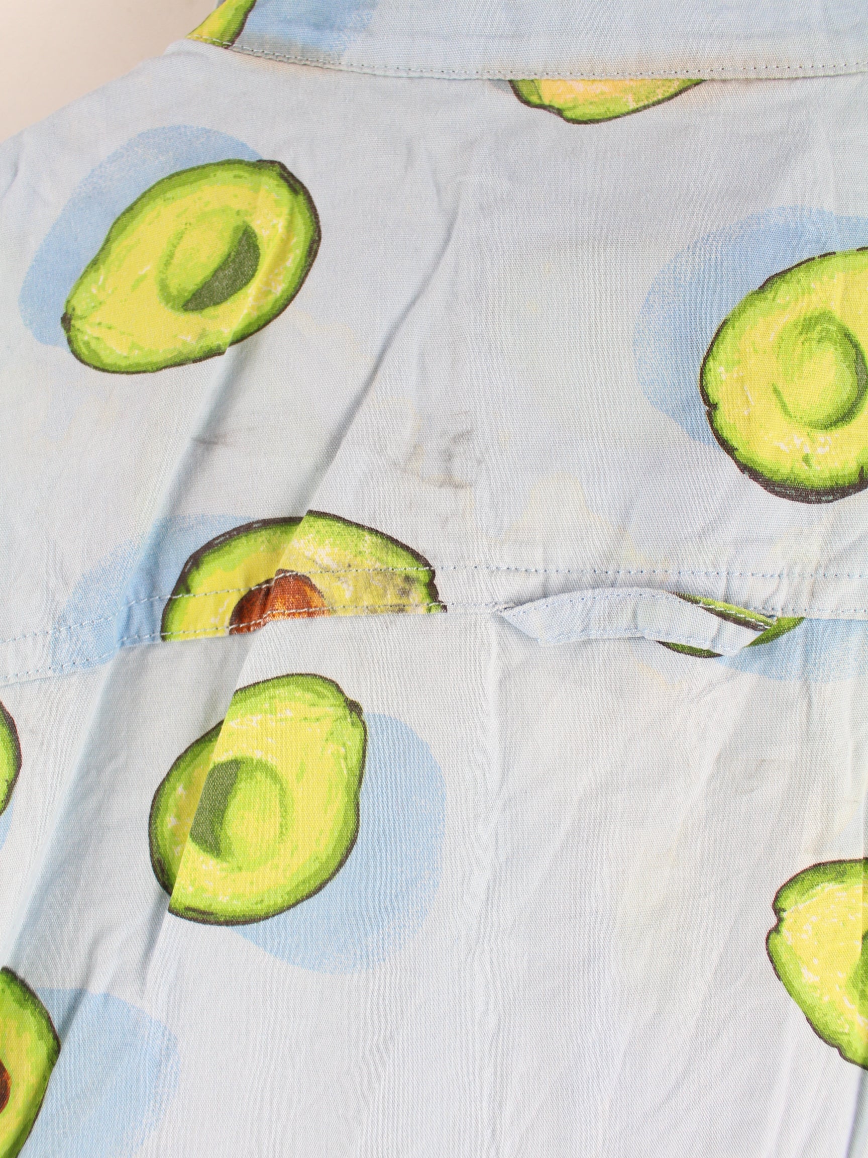 Vintage Avocado Pattern Hawaii Shirt Blue M