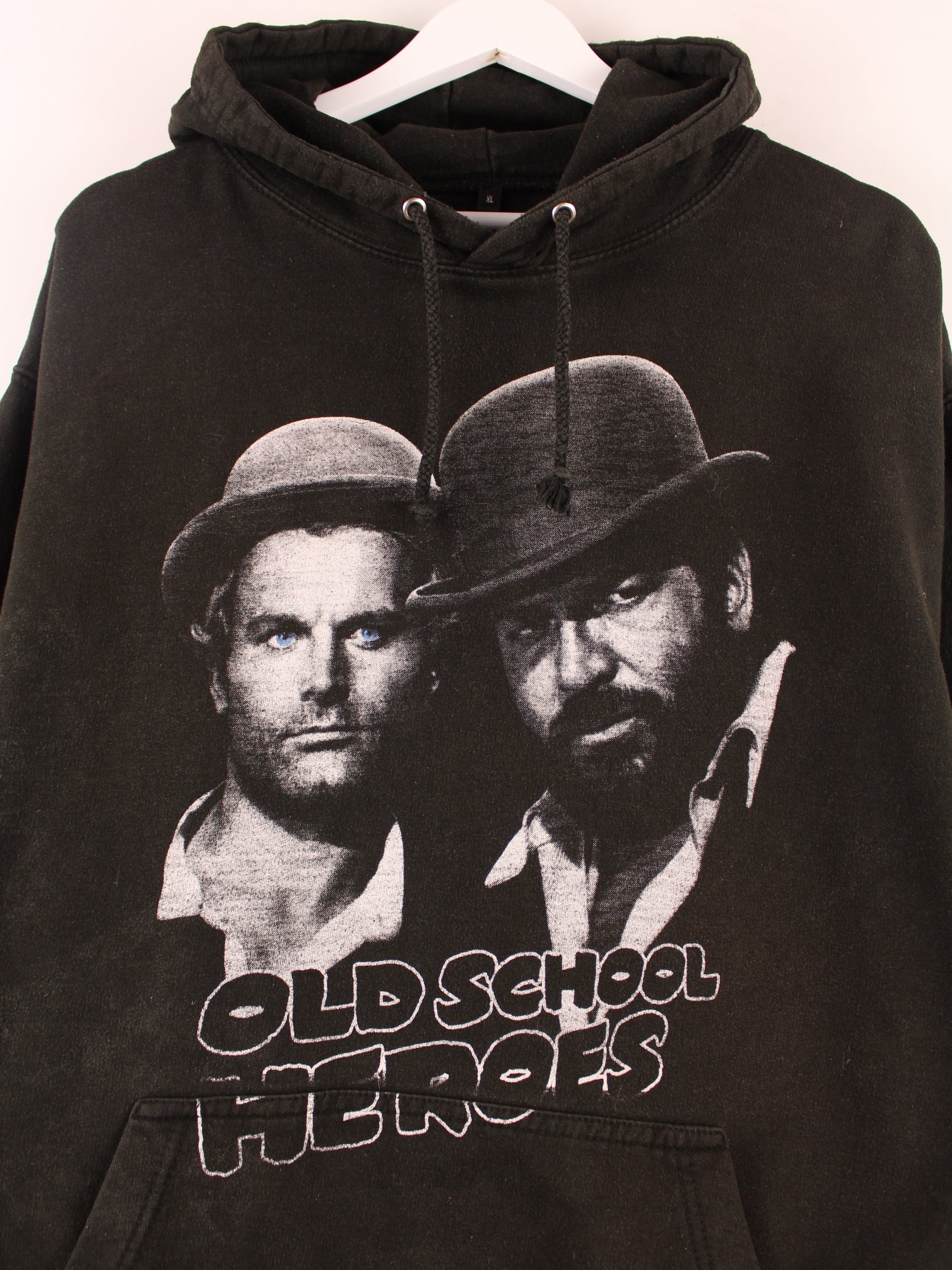 Vintage hoodie in size XL. It is made from a cotton blend and is available from us in black. With a chic Spencer print.