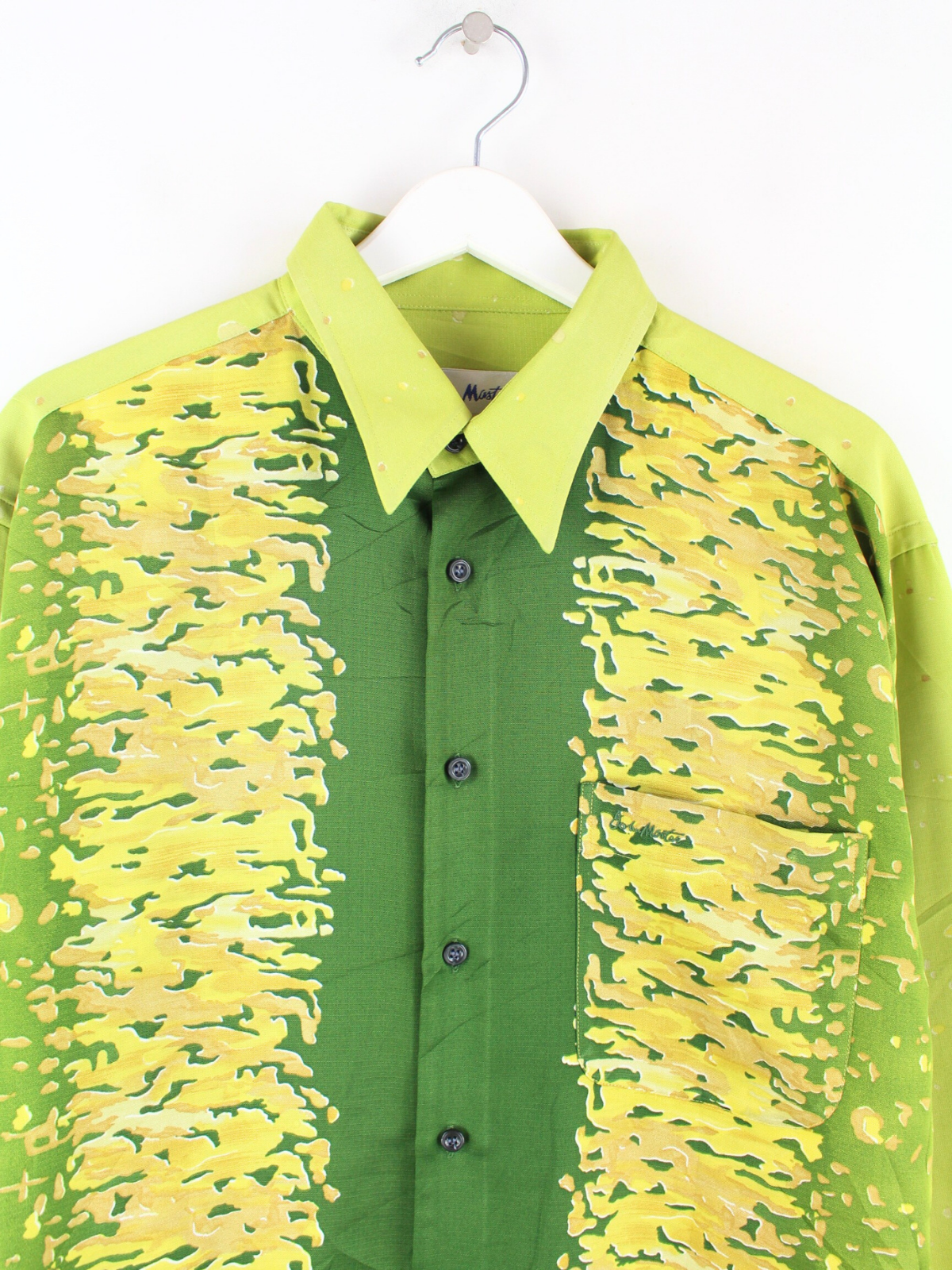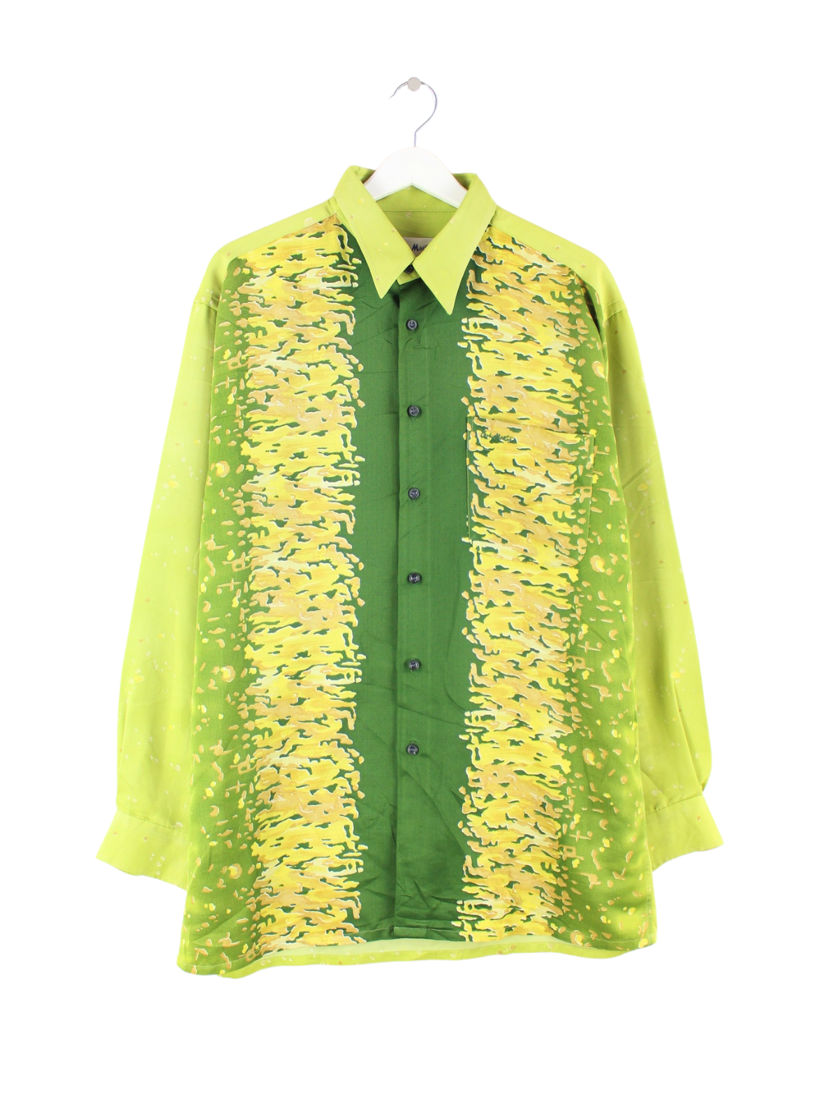 Green vintage casual shirt in size L. It is made of synthetic and in good condition in stock.