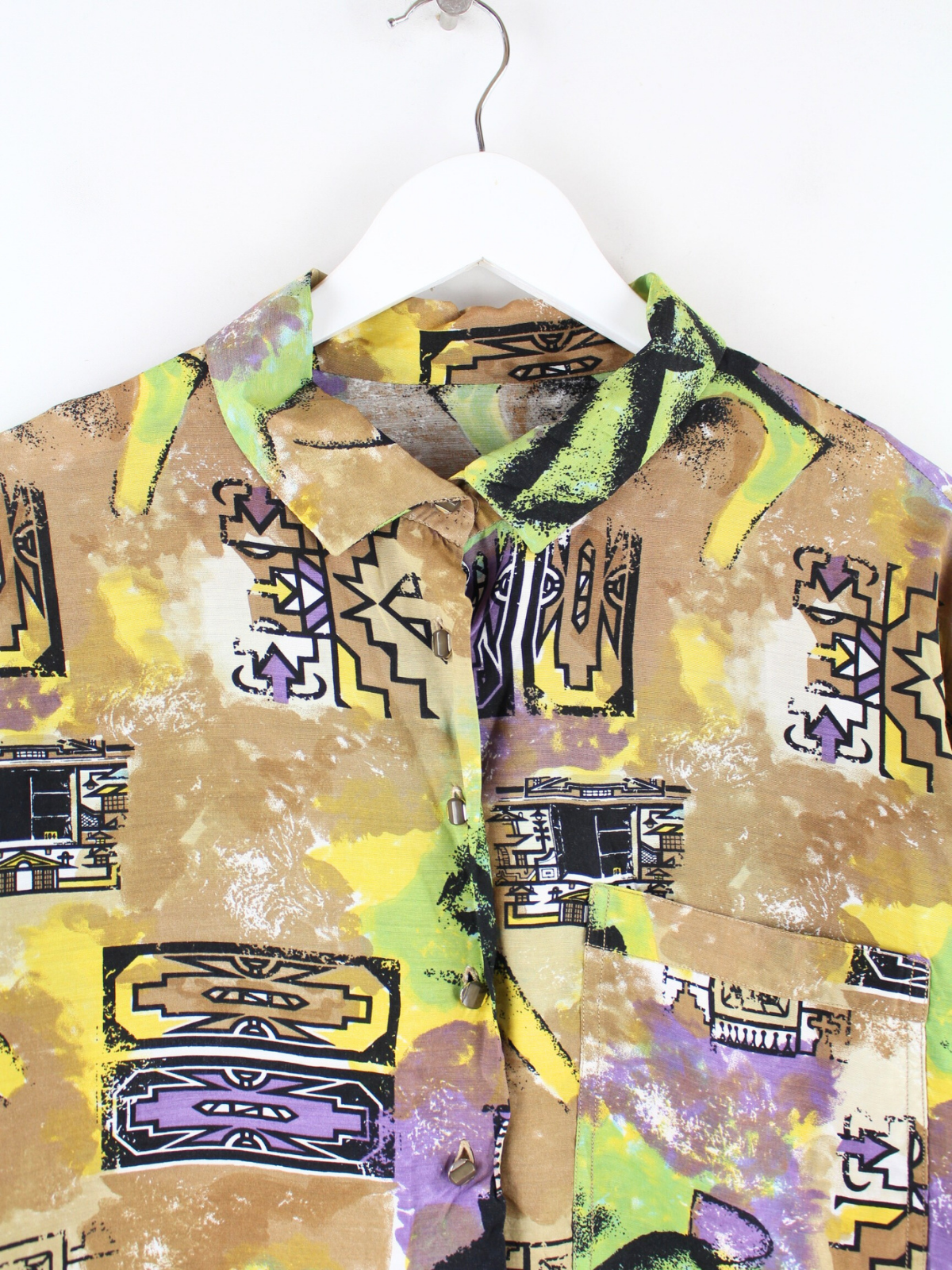 Multi-colored vintage casual shirt in size L. It is made of cotton and in good condition.