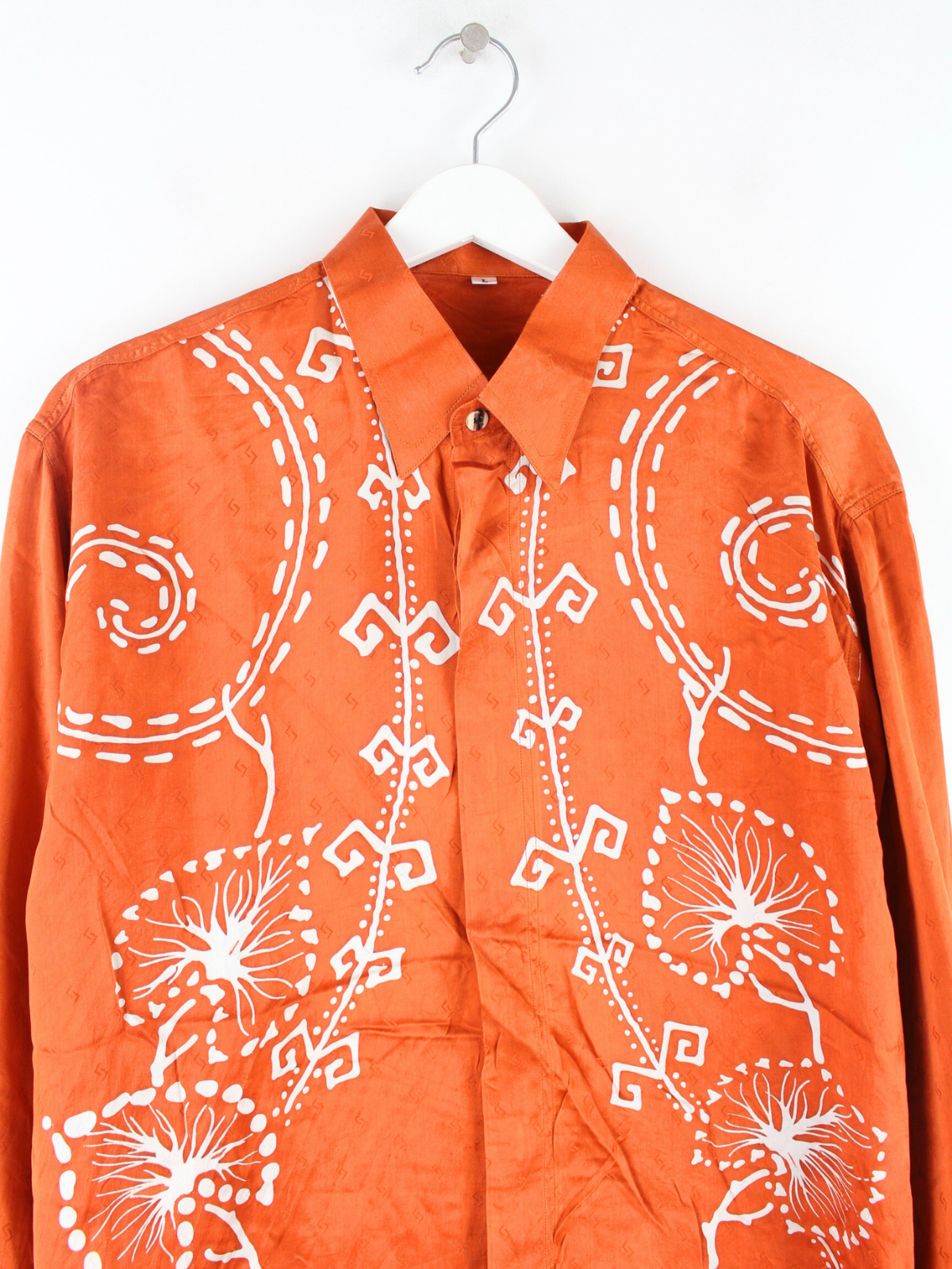 Vintage casual shirt in size L. It is made of cotton and available in orange.