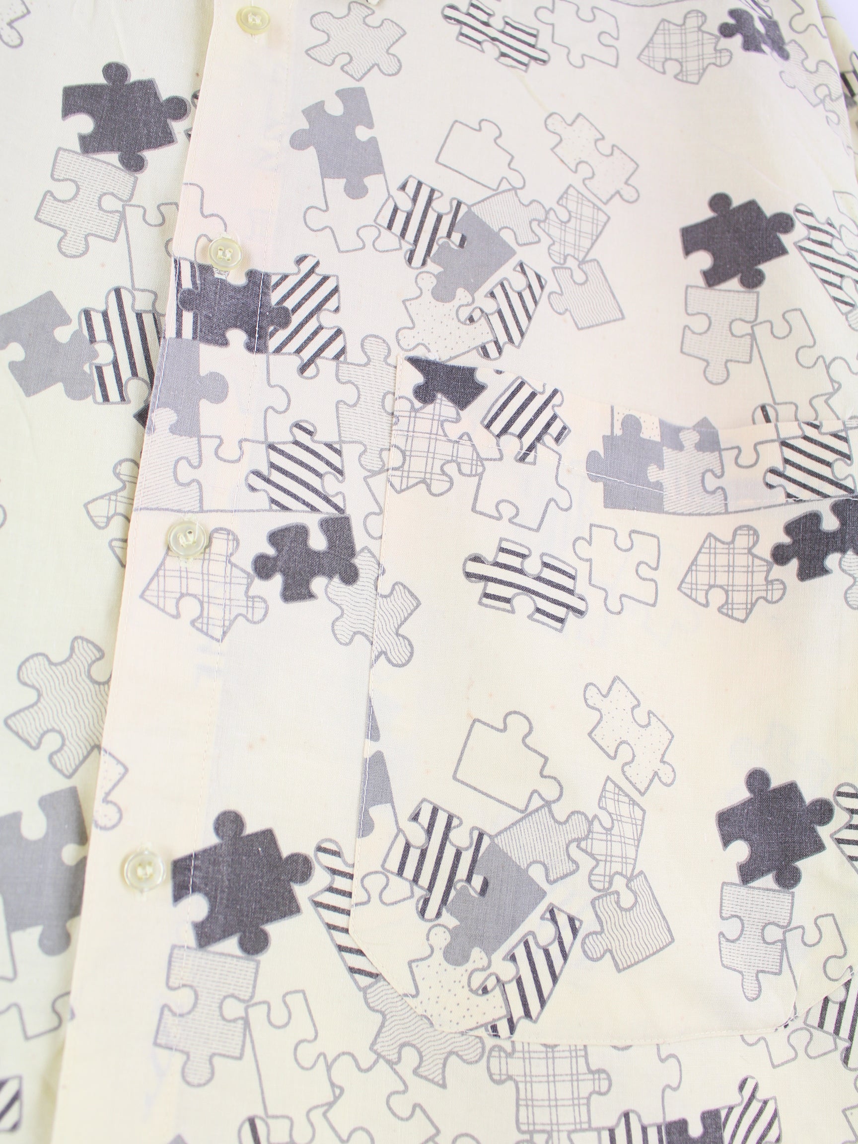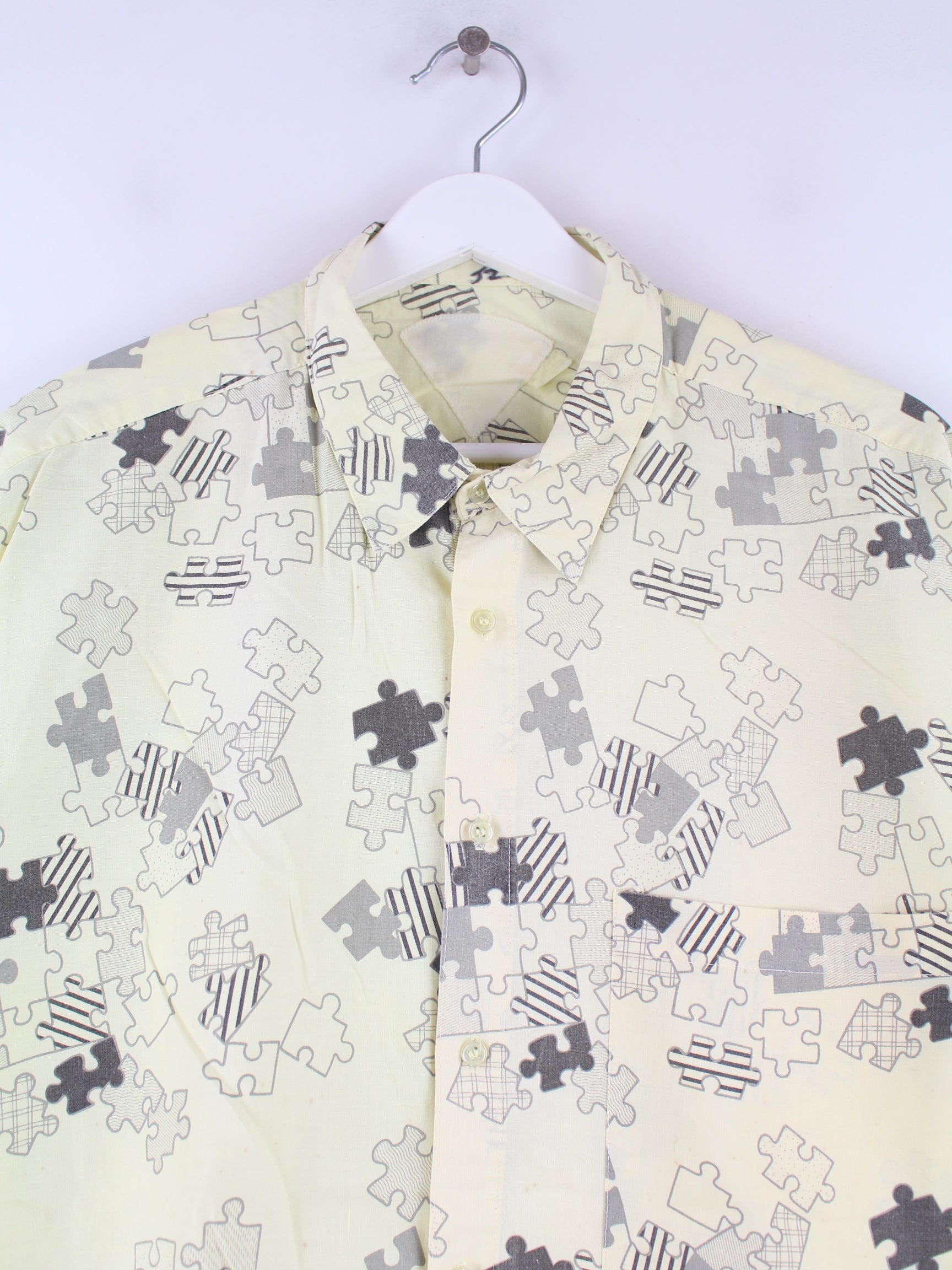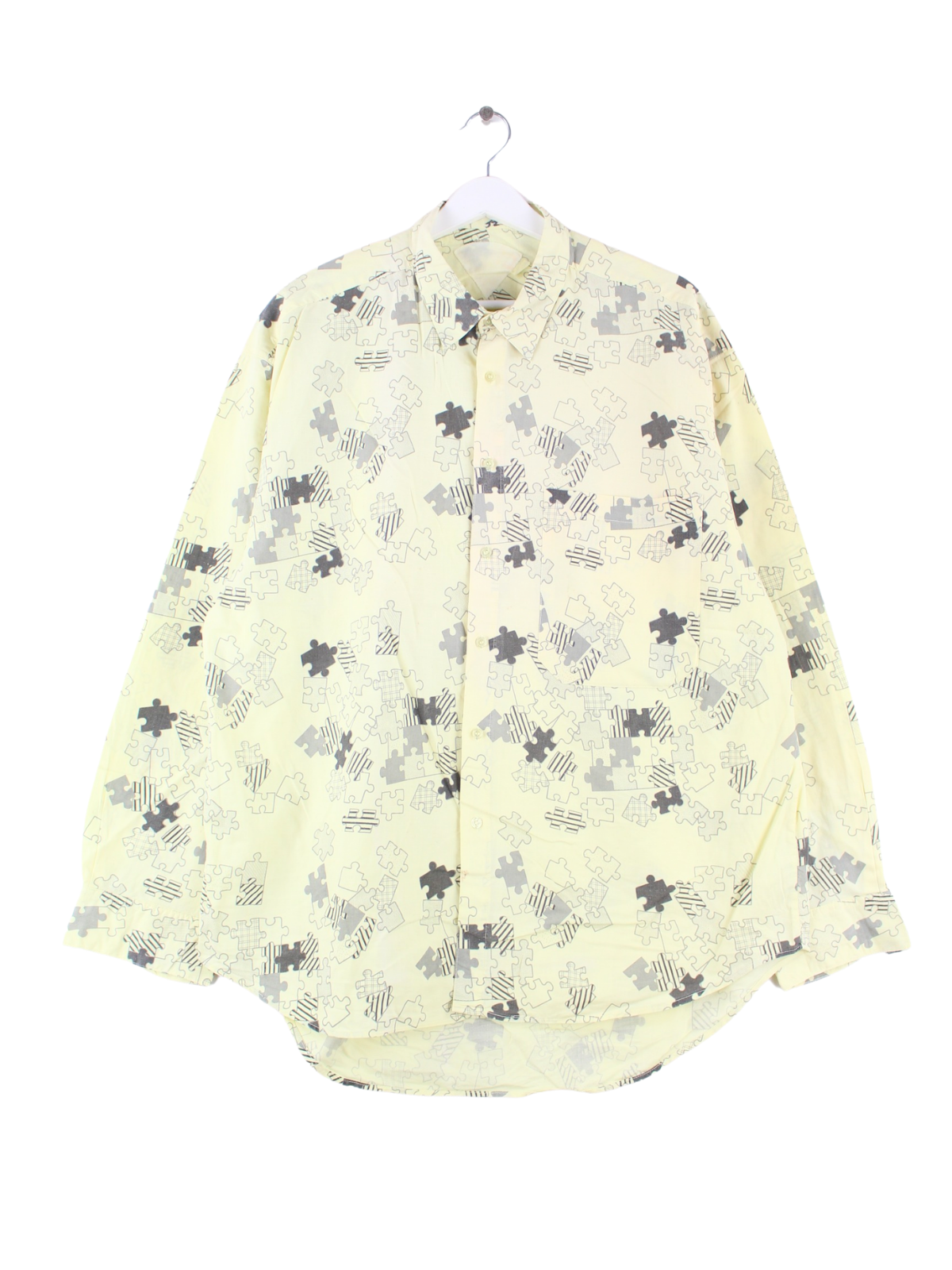 Vintage Crazy Puzzle Pattern Shirt Yellow XXL