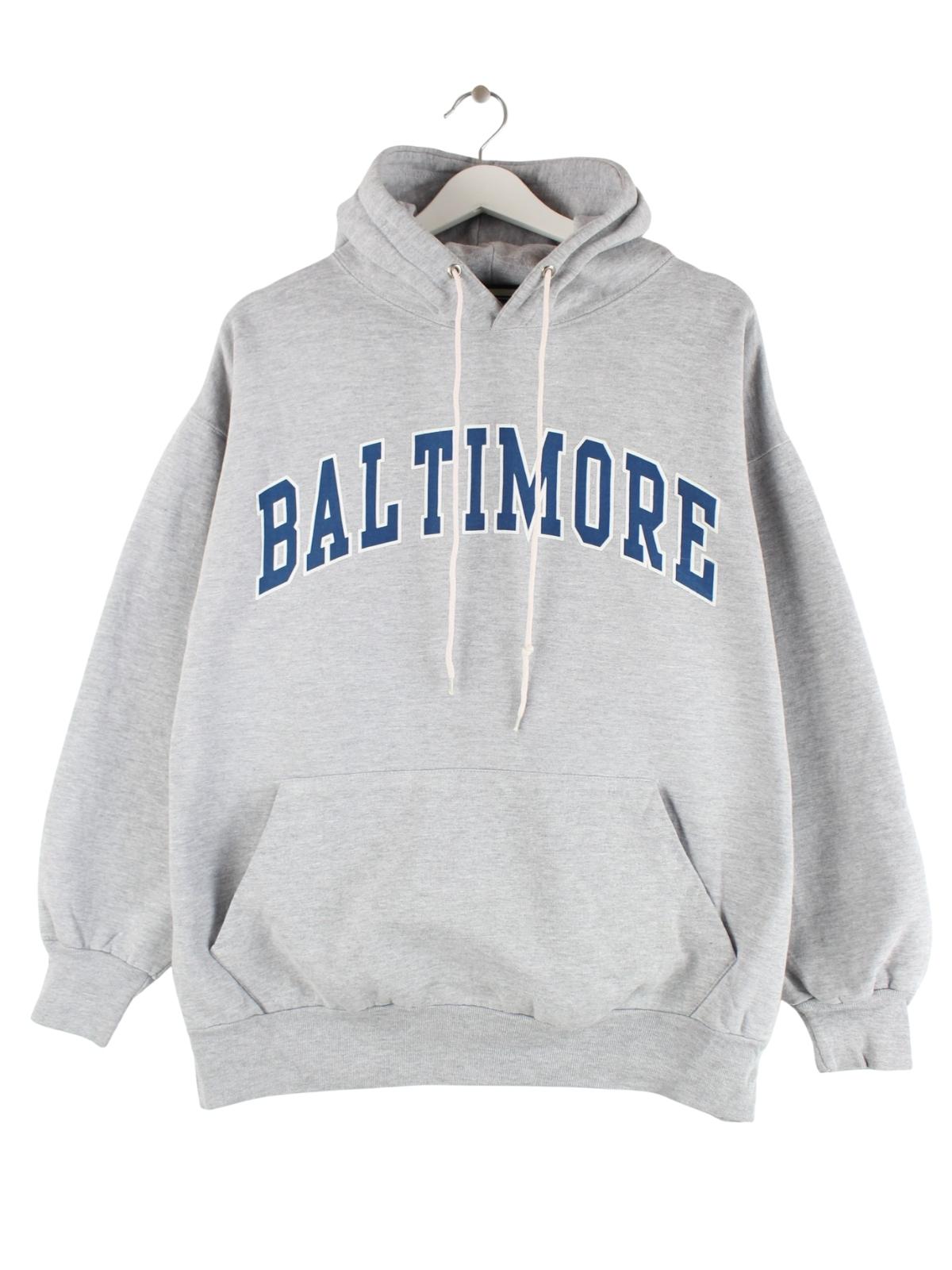 Vintage Hoodie in Größe XL. Er ist aus einer Baumwollmischung und in Grau auf Lager. Mit seltenem Baltimore Print.