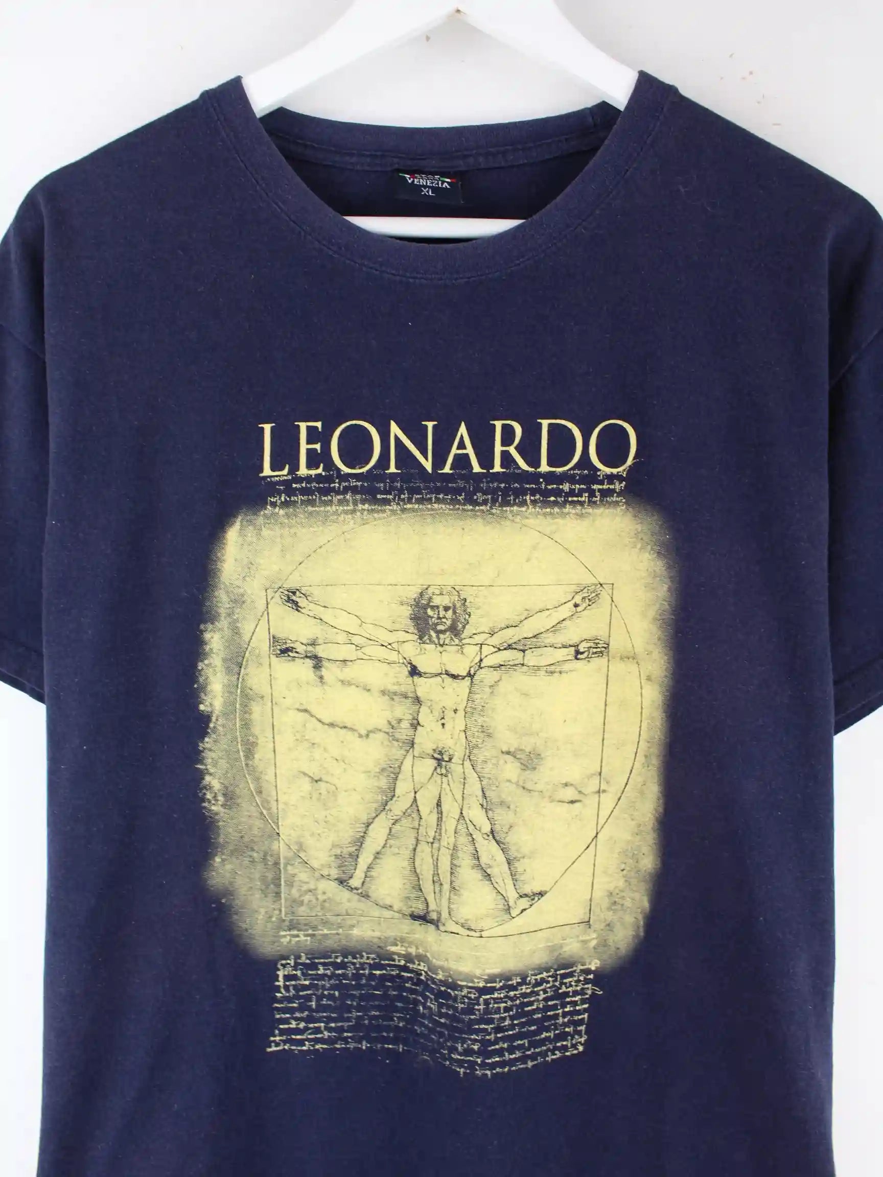 Vintage T-Shirt in Größe XL. Es ist aus einer Baumwollmischung hergestellt und in Blau auf Lager. Mit seltenem Davinci Print.