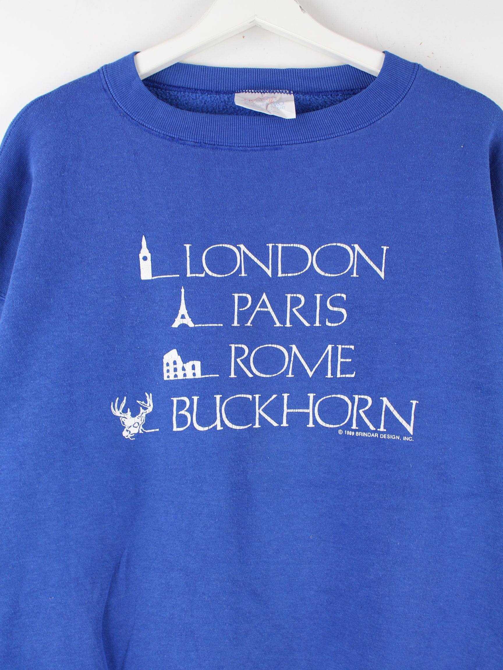 Vintage Damen 1989 Capitals Print Sweater Blau XL