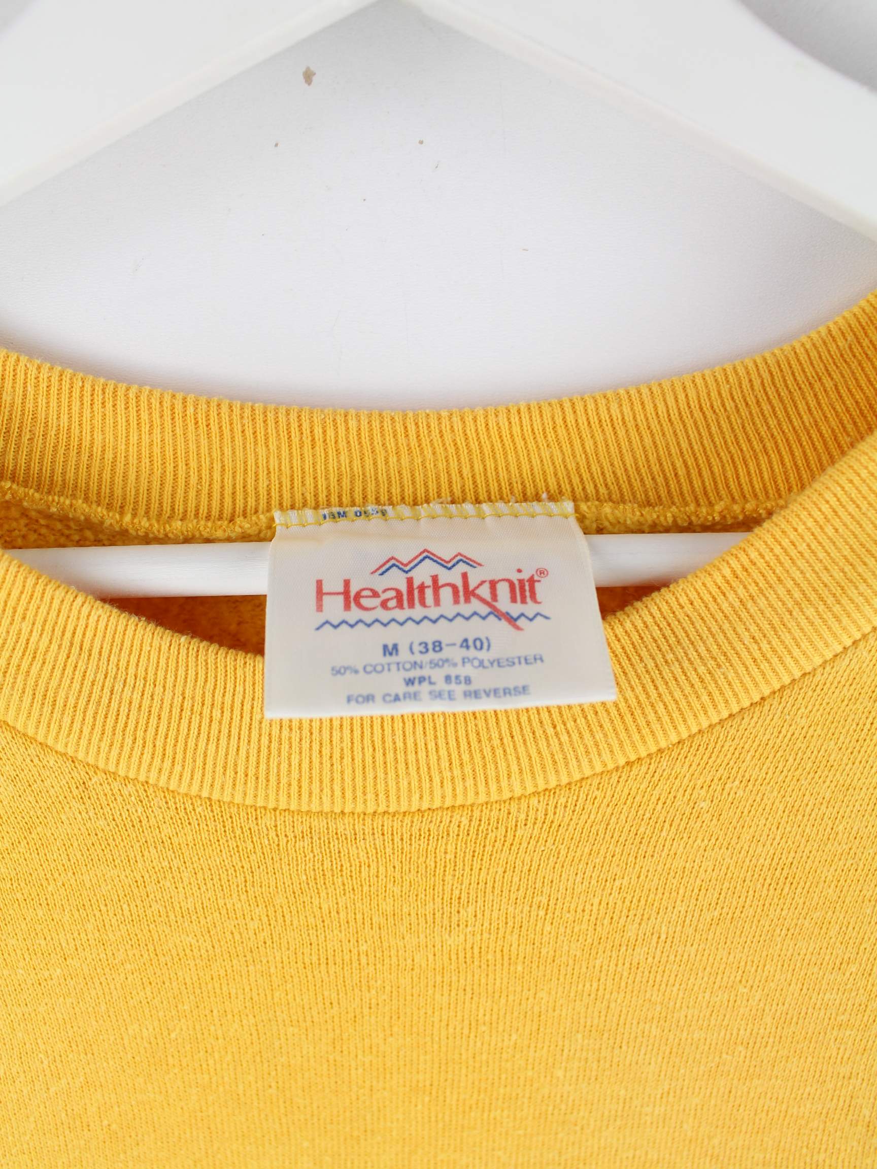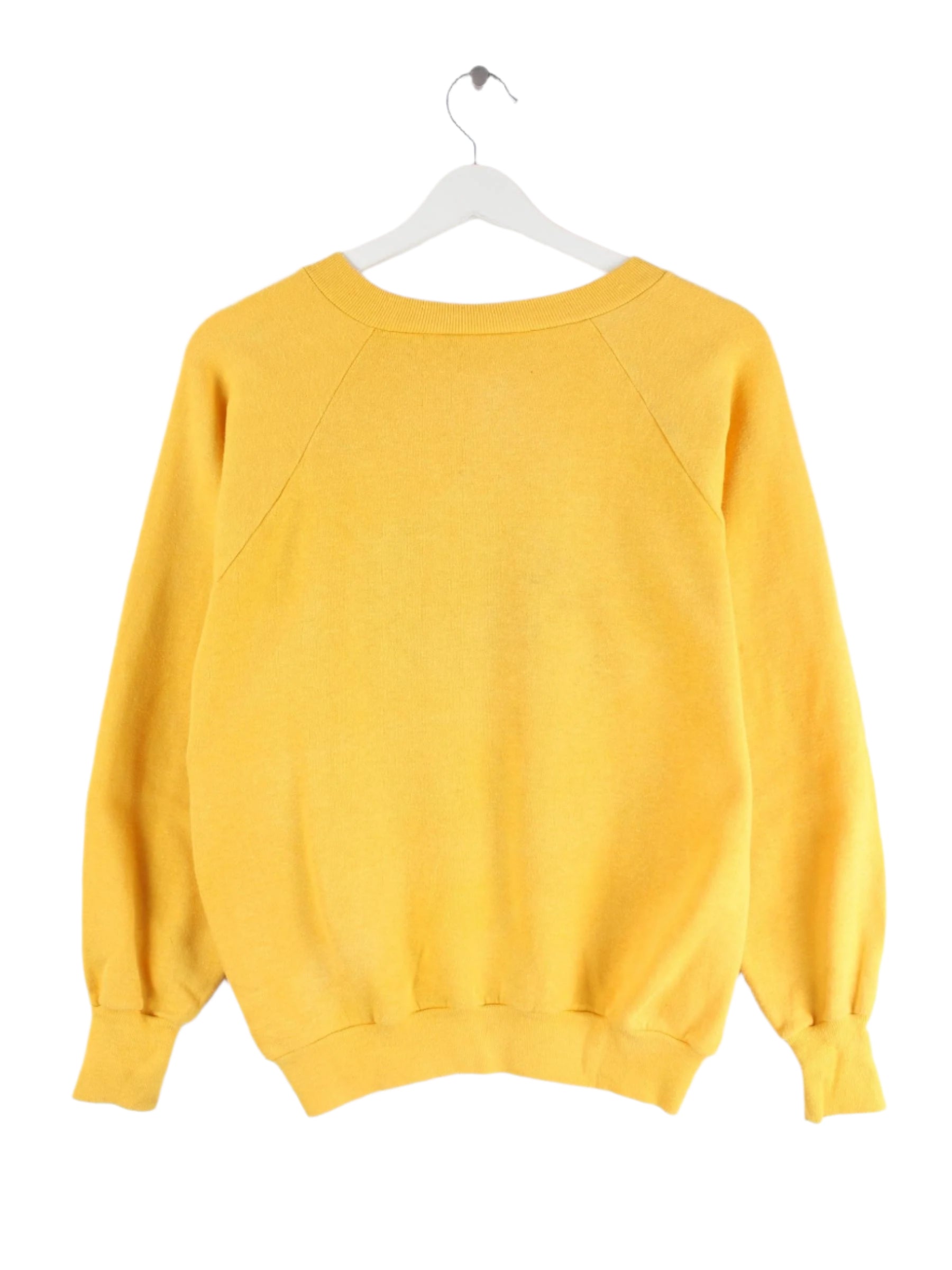 Gelber Vintage Sweater aus den 90'ern in Größe M. Er ist aus einer Baumwollmischung produziert. Den Zustand würden wir als 'In Ordnung' bezeichnen (vergl. Bilder).Mit schönem Wildcats Print.