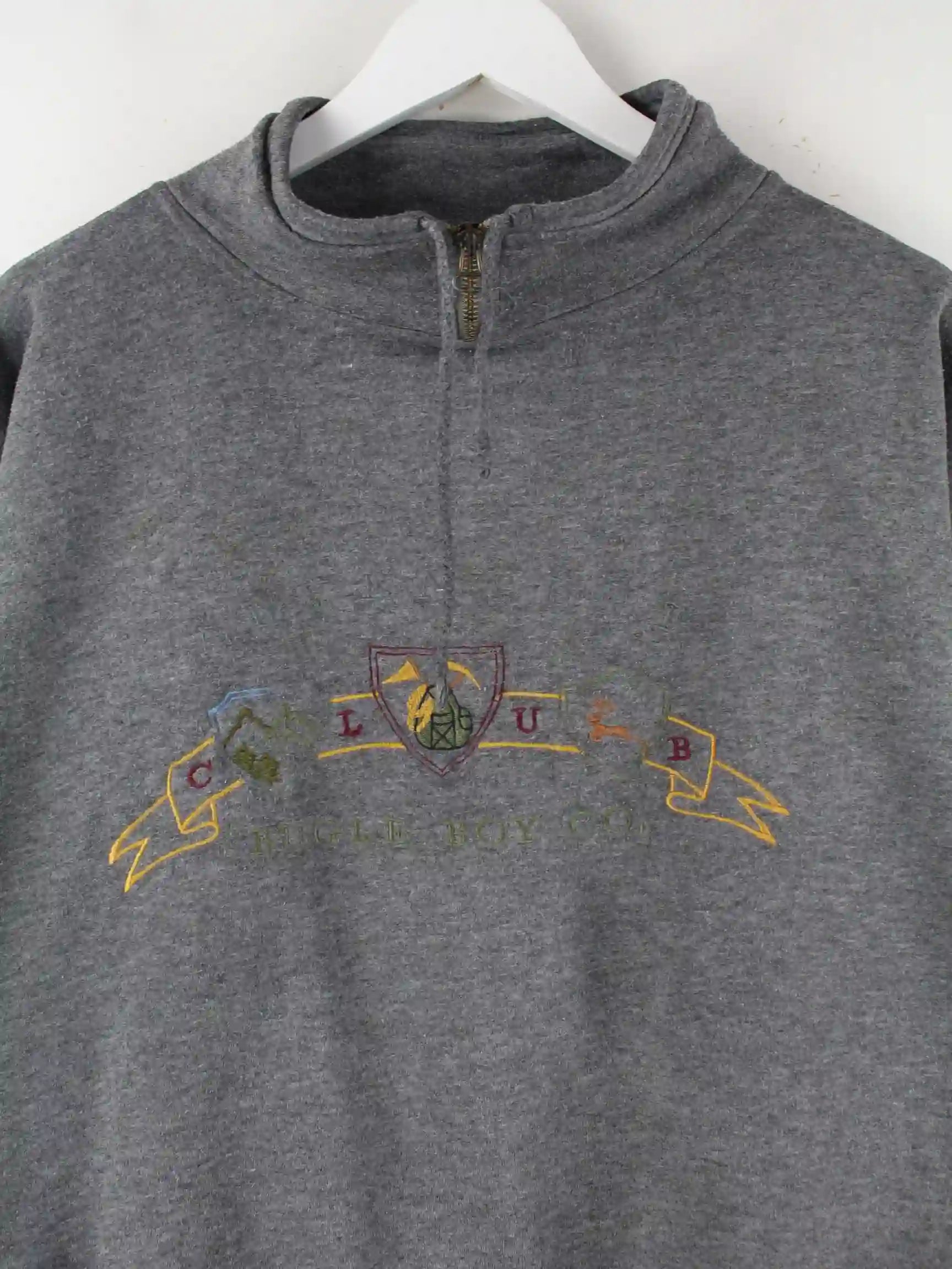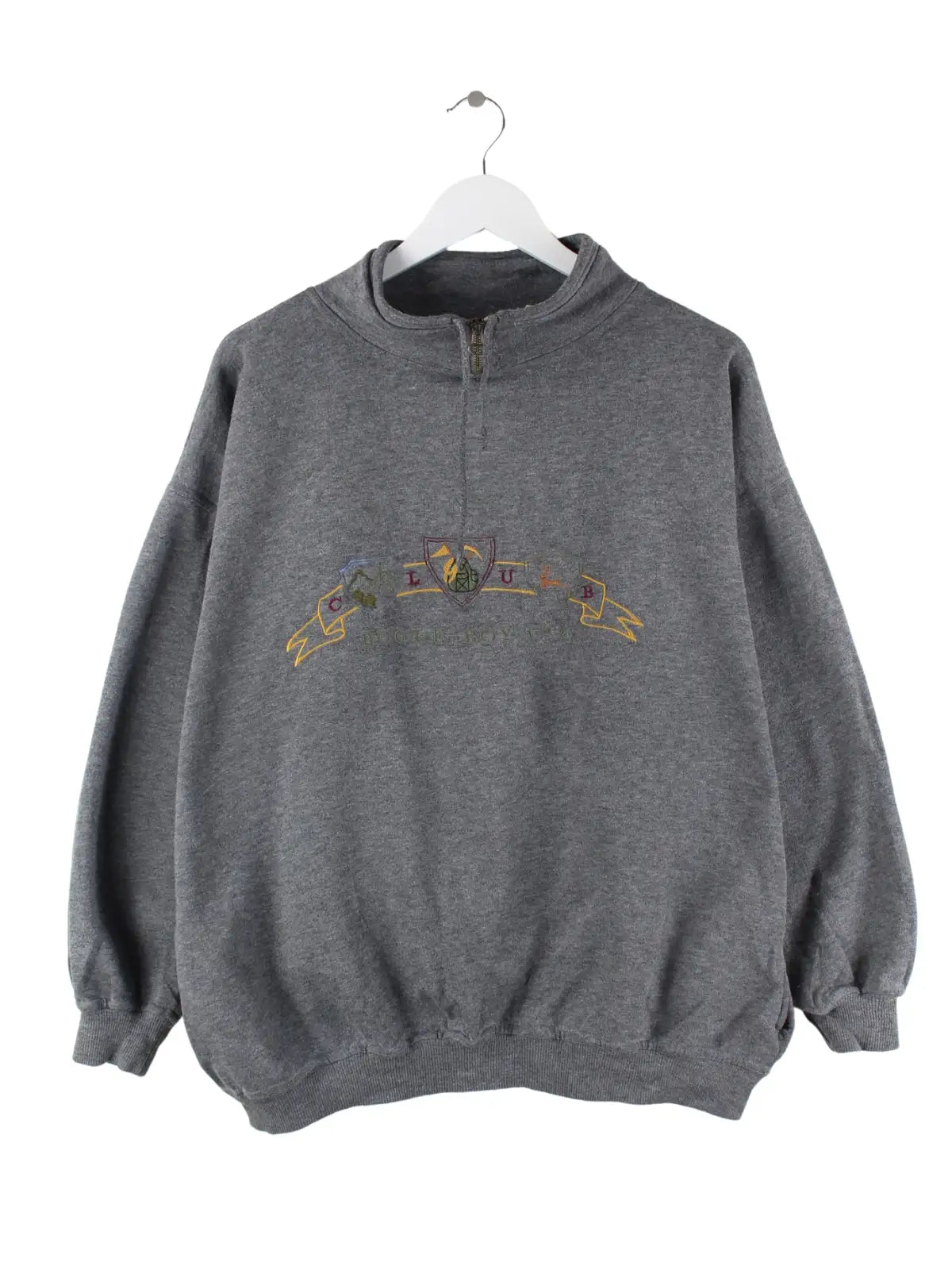 Vintage Damen 90s Embroidered Half Zip Sweater Grau L