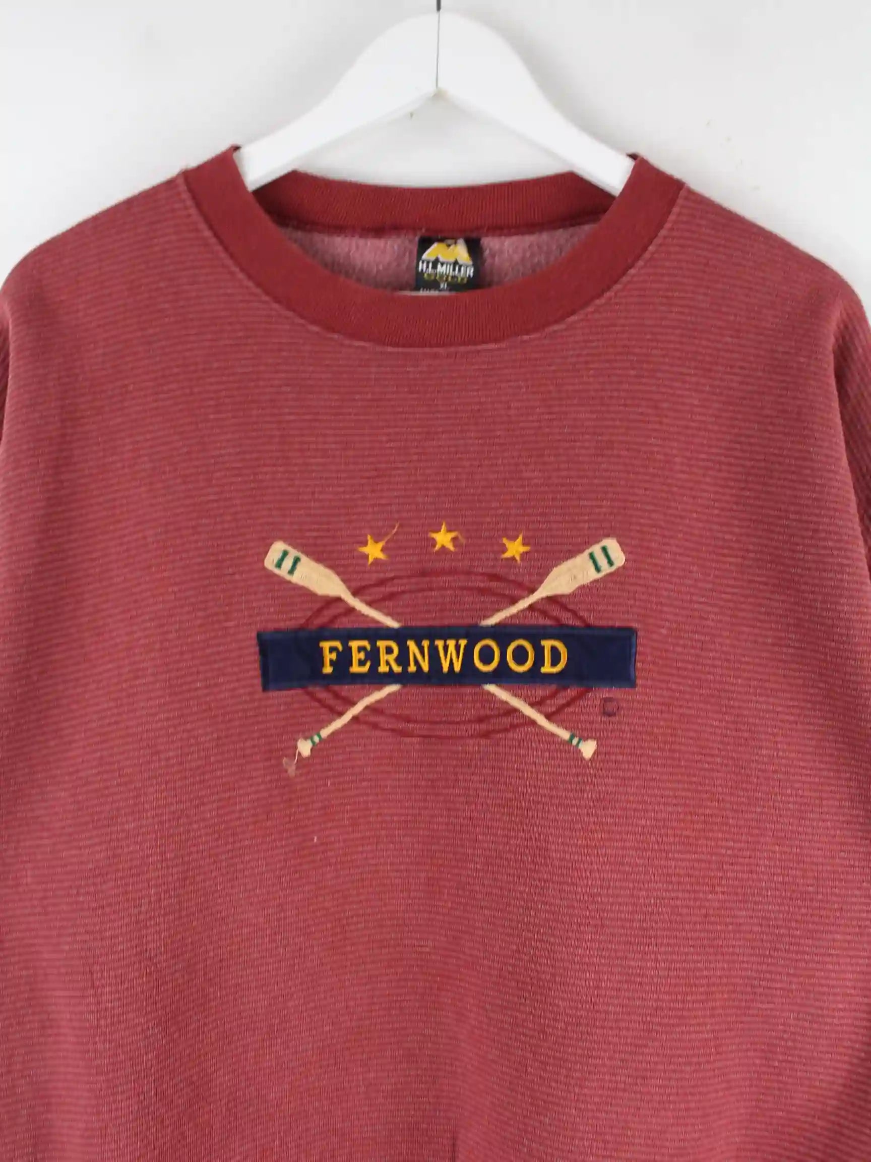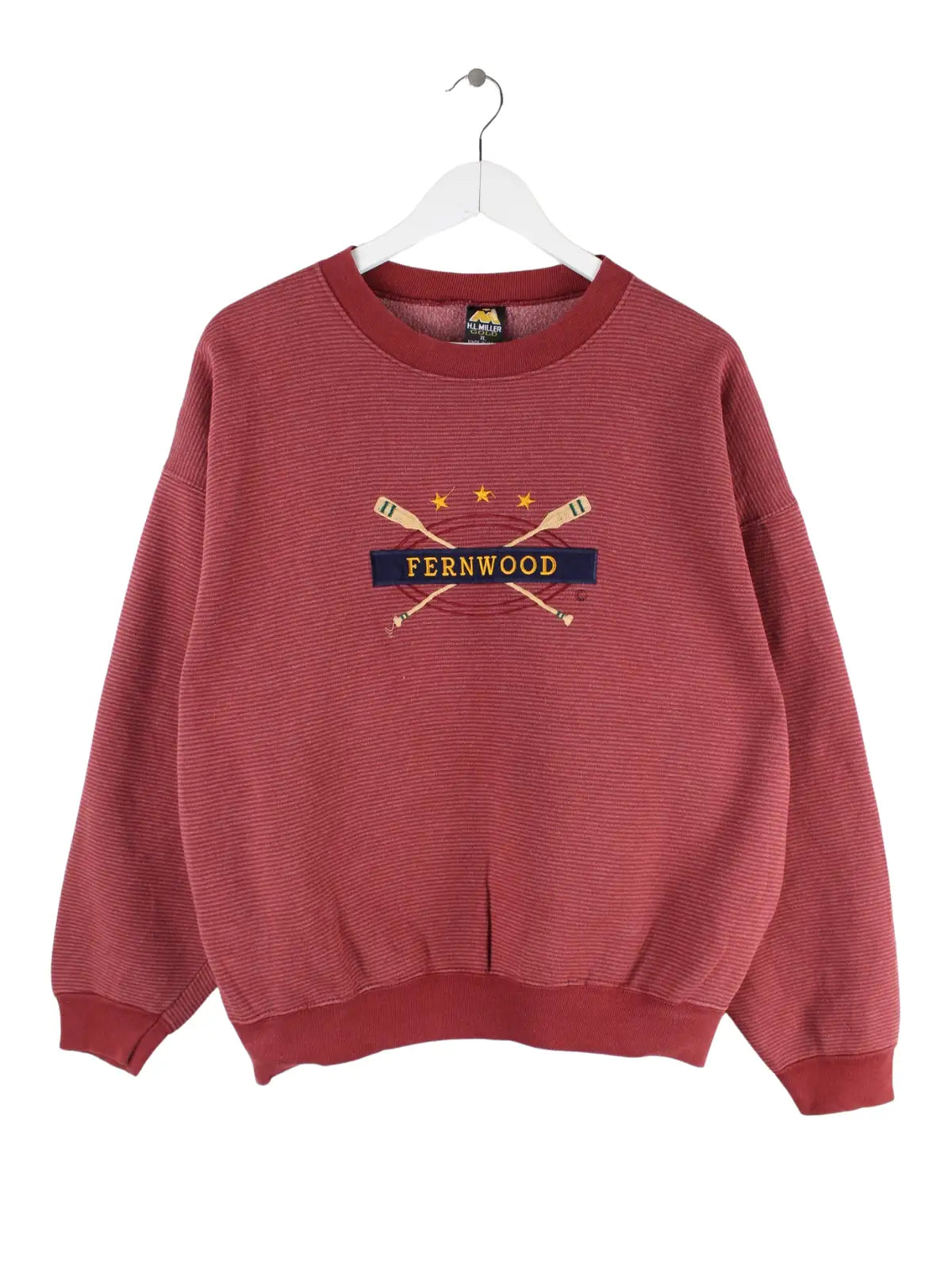 Vintage Damen 90s Fernwood Paddle Embroidered Heavy Sweater Rot XL